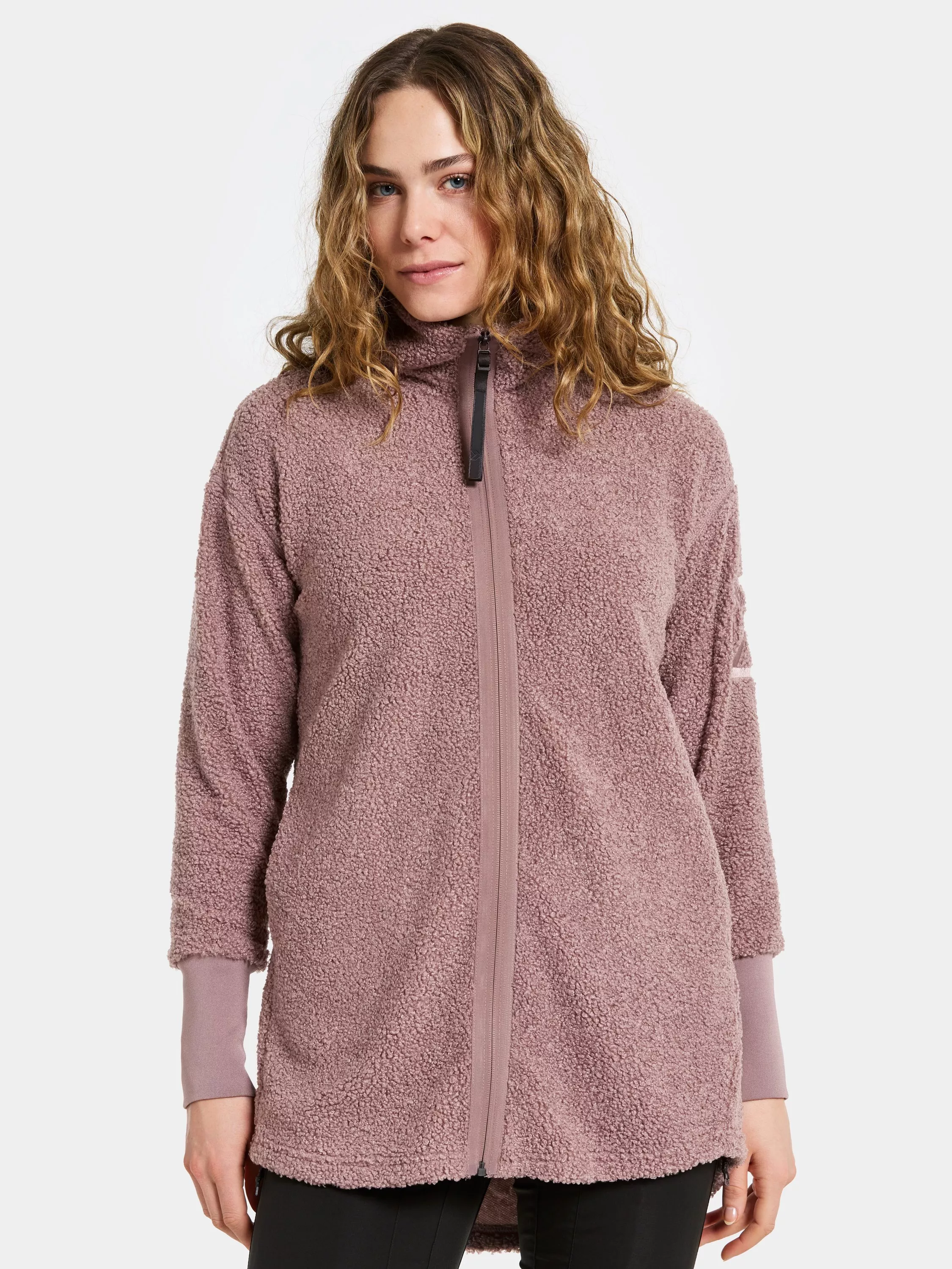 Sally is a soft and comfortable fleece jacket in pile fabric, perfect for outdoor activities. It has a stand-up collar and elastic sleeve cuffs for extra comfort. The jacket is designed with 4-way stretch and flat seams for optimal freedom of movement. With a front zip closure and practical side pockets, it is both functional and stylish.