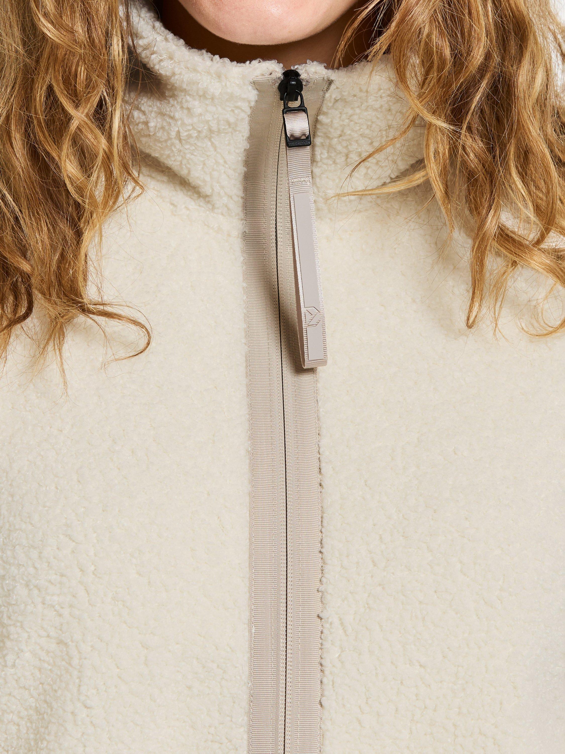 A warm pile jacket with cuffs and a warm soft collar. A simple design with minimal details for everyday use. With 2 handy pockets, it features logo embroidery on the left sleeve as well as a longer rib cuff for better comfort.