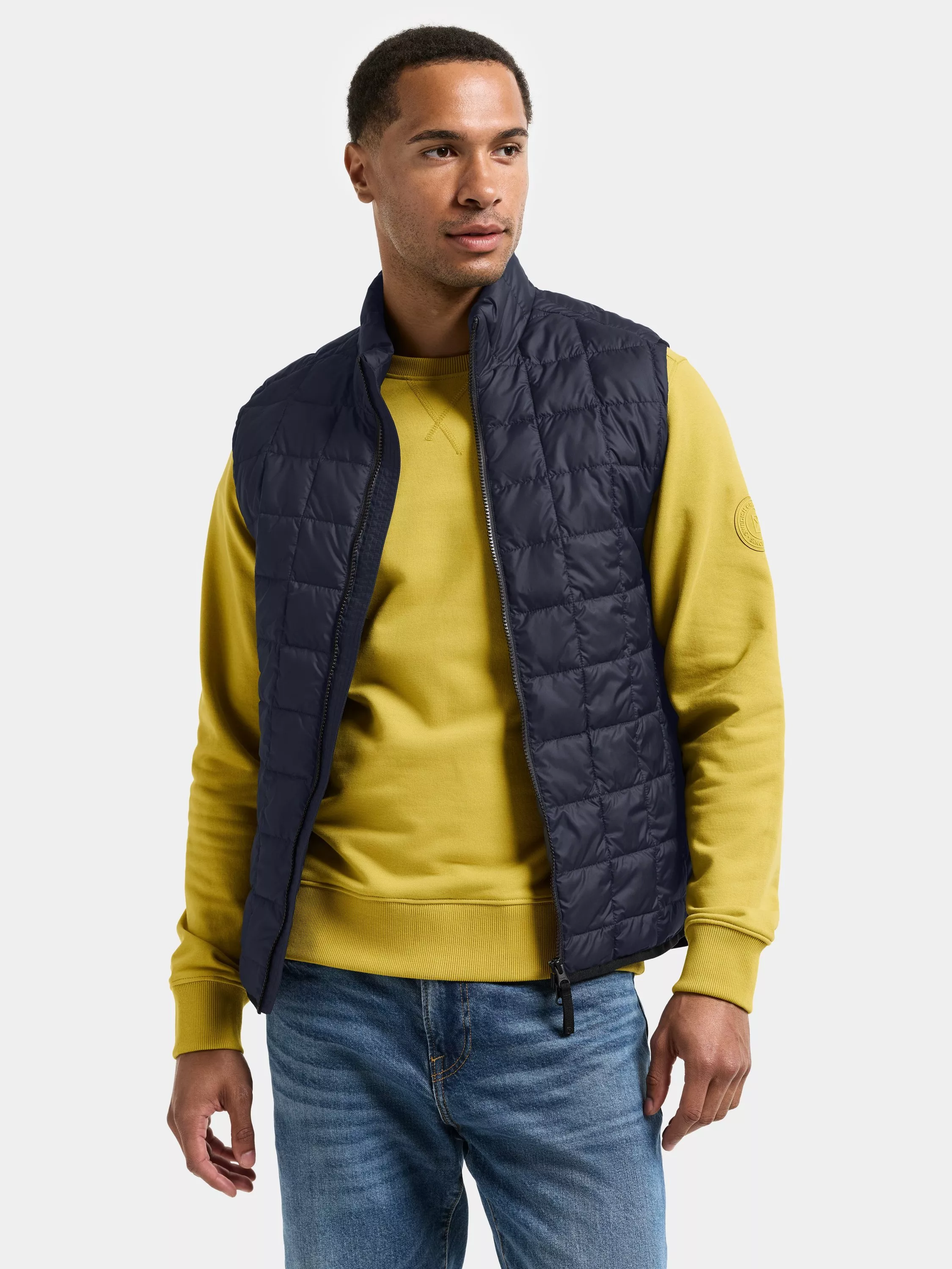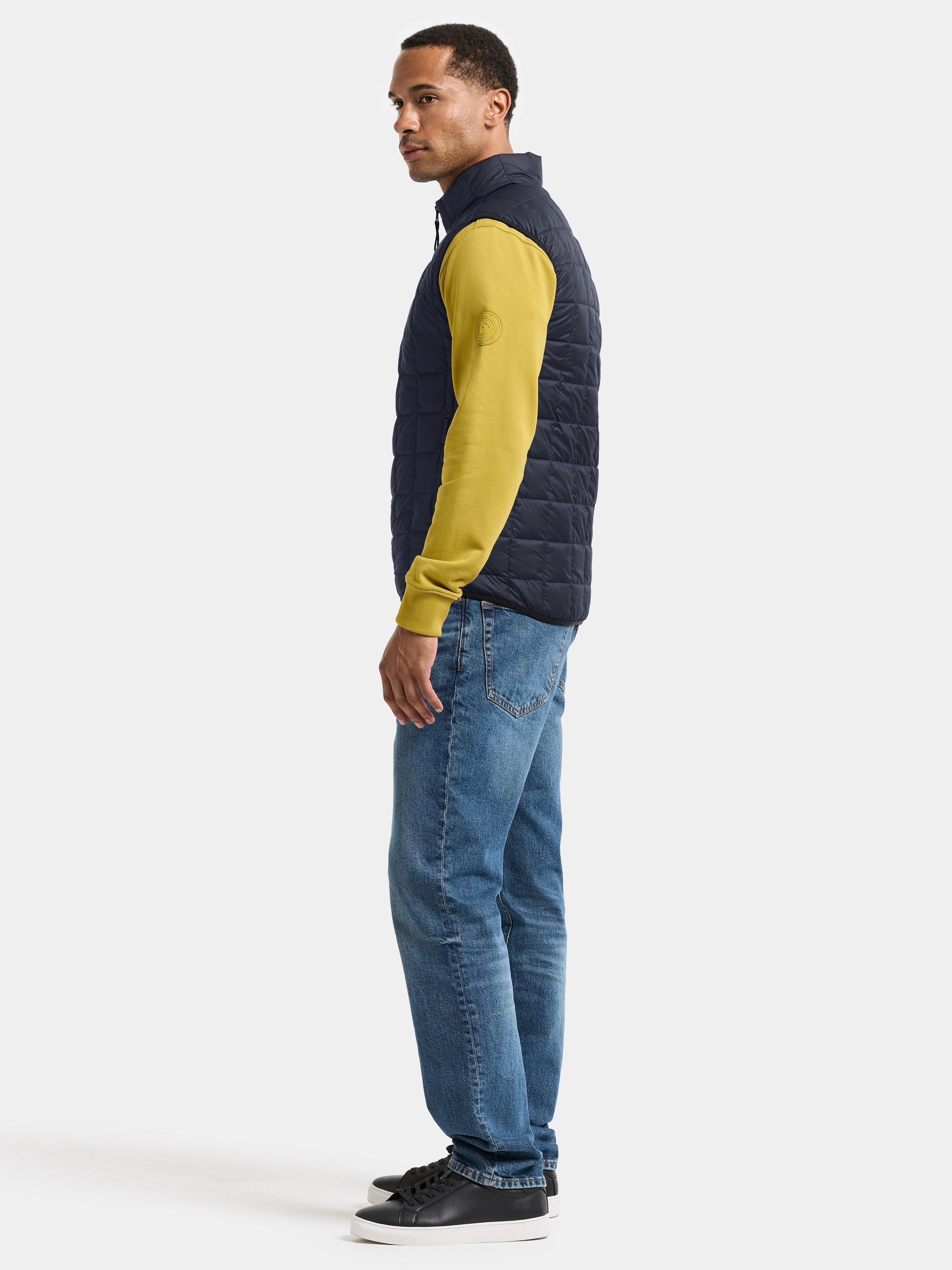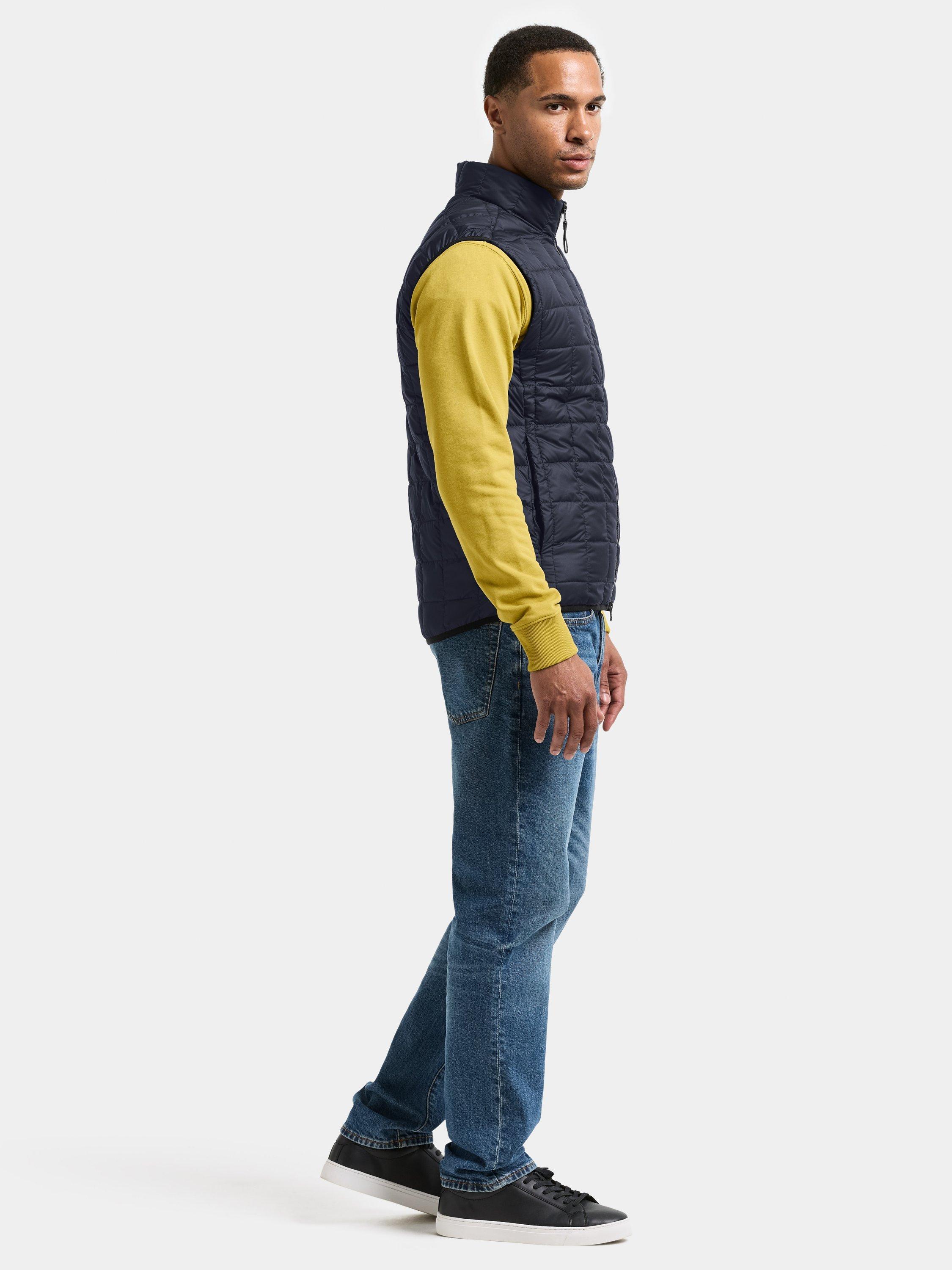Samuel is a lightly padded gilet with a tailored silhouette, perfect for everyday use. The vest features a stand-up collar and elastic edging around the armholes and hem for a comfortable fit. It is equipped with a two-way zip at the front and side pockets with buttons for practical storage.