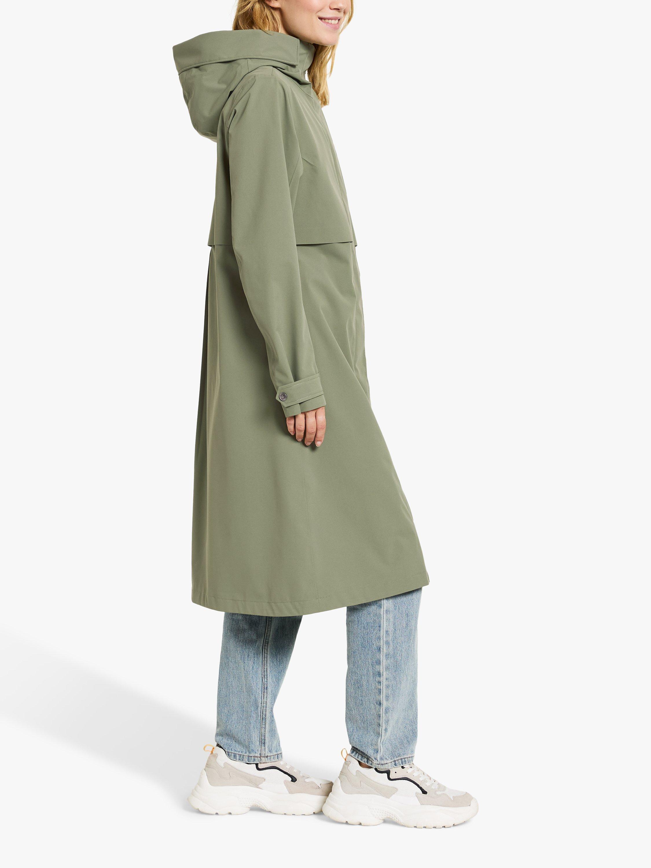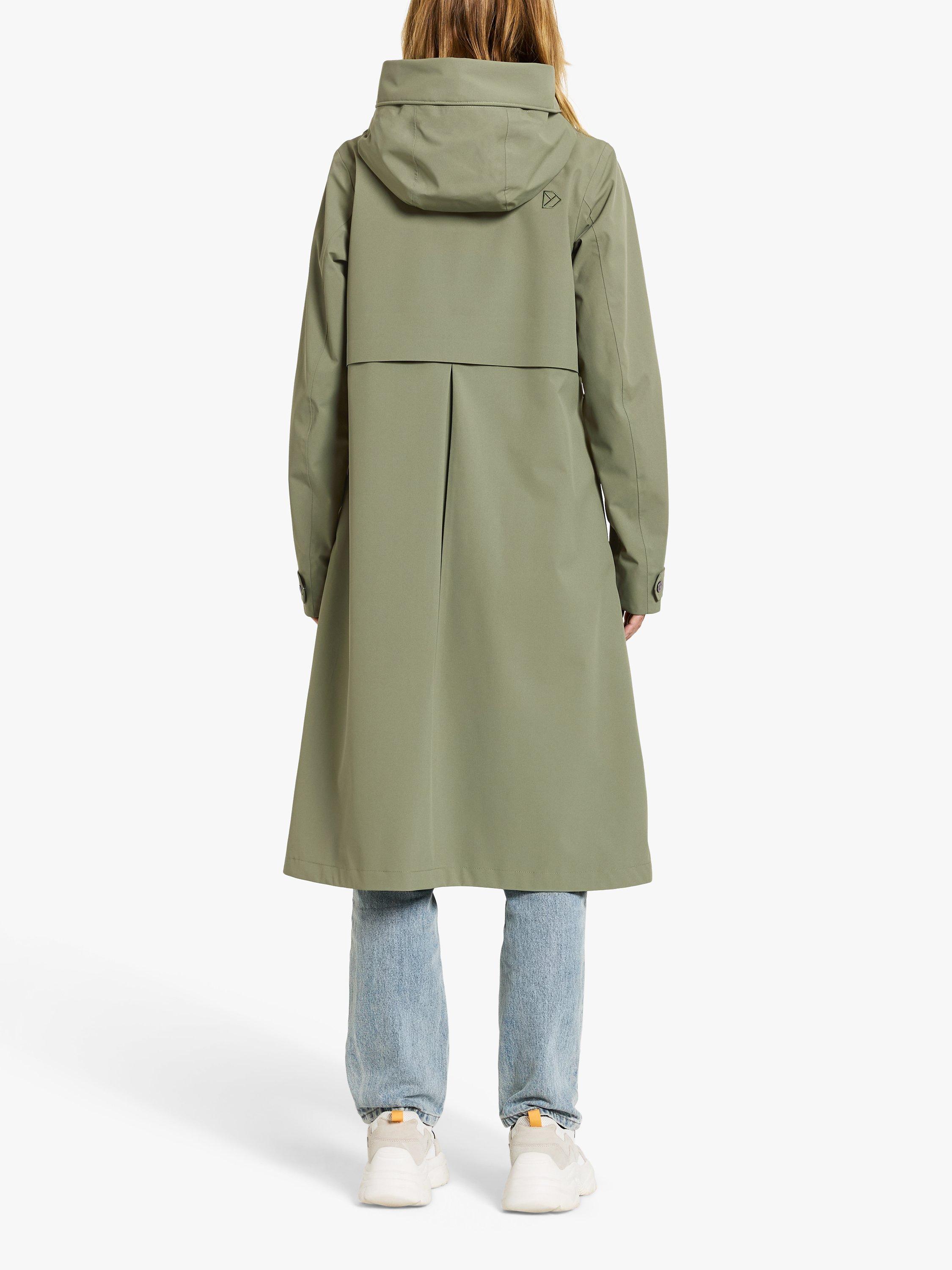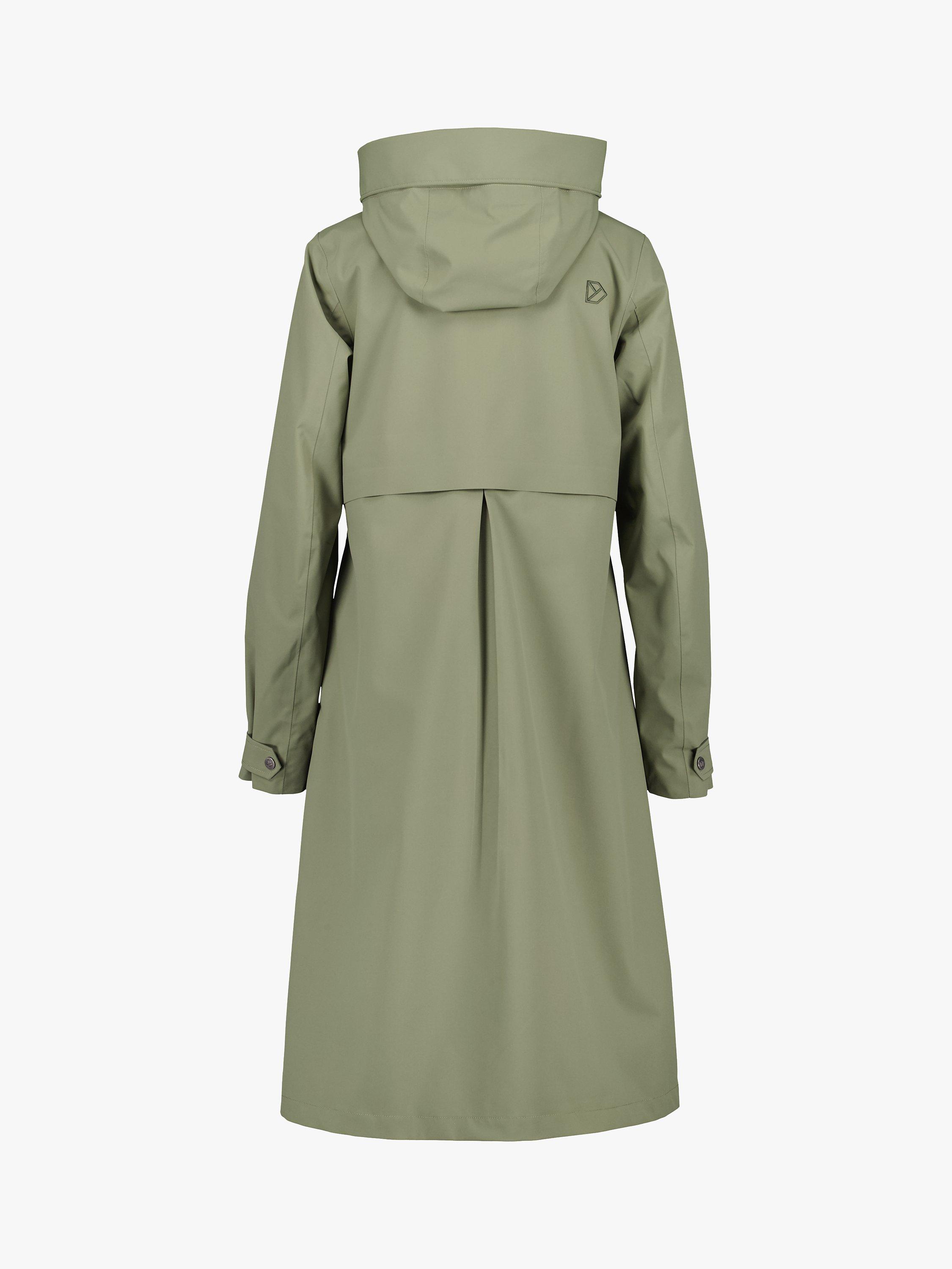A long, classic feminine parka. Perfect in the city when it's windy or rainy, this waterproof layer features a raised waistline, box pleat at centre back, and an extra protection hood.