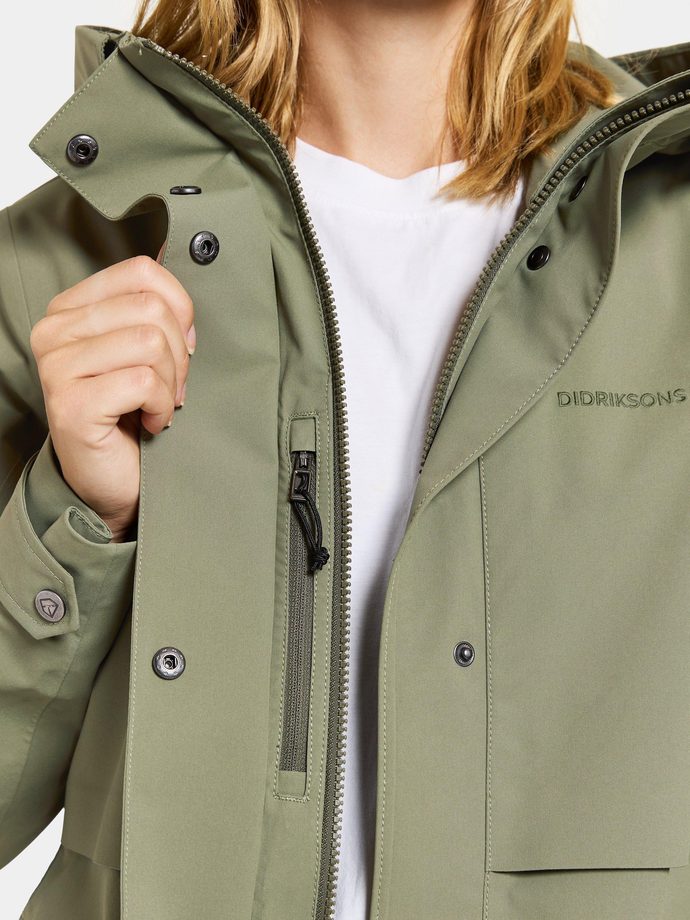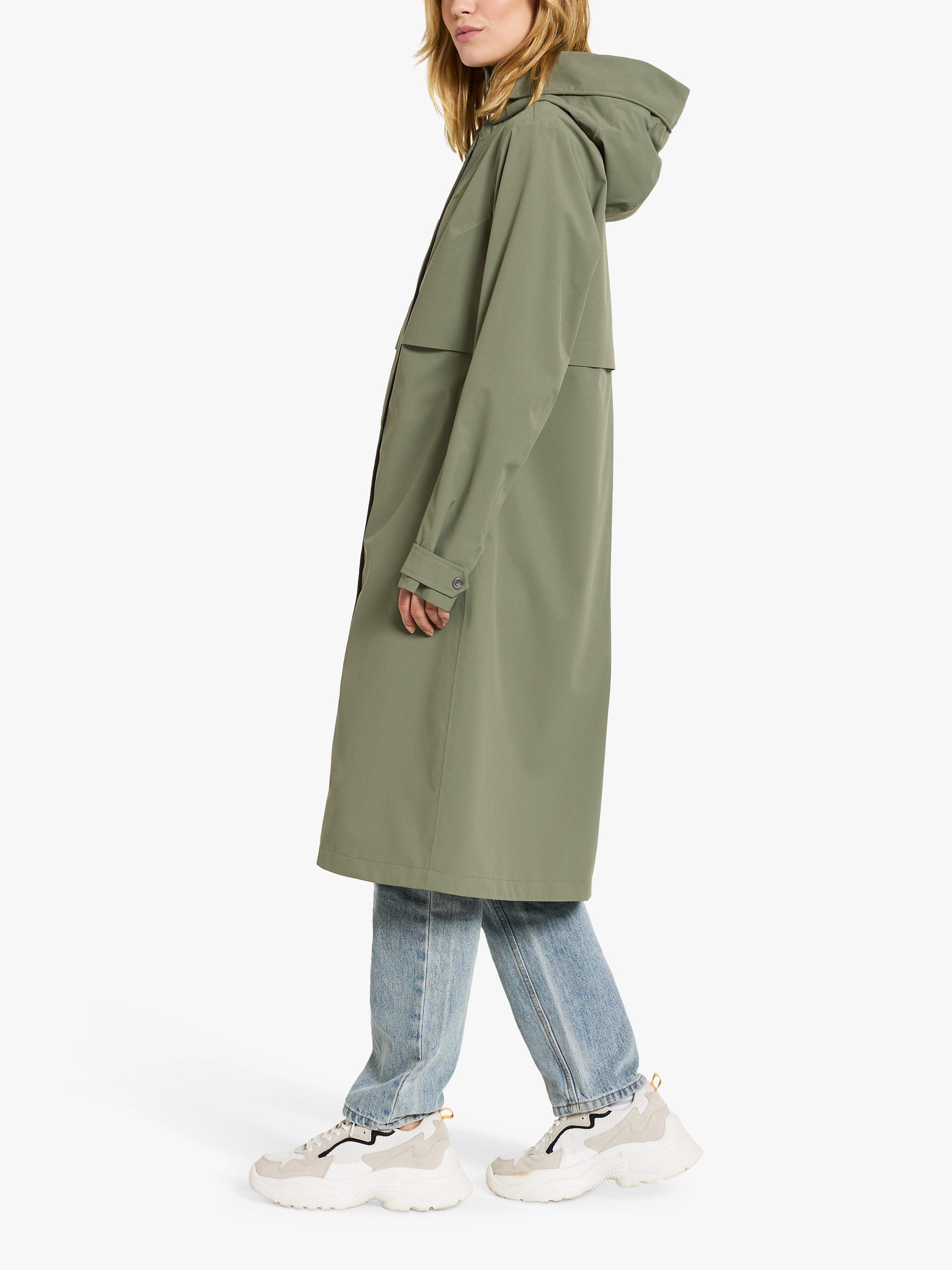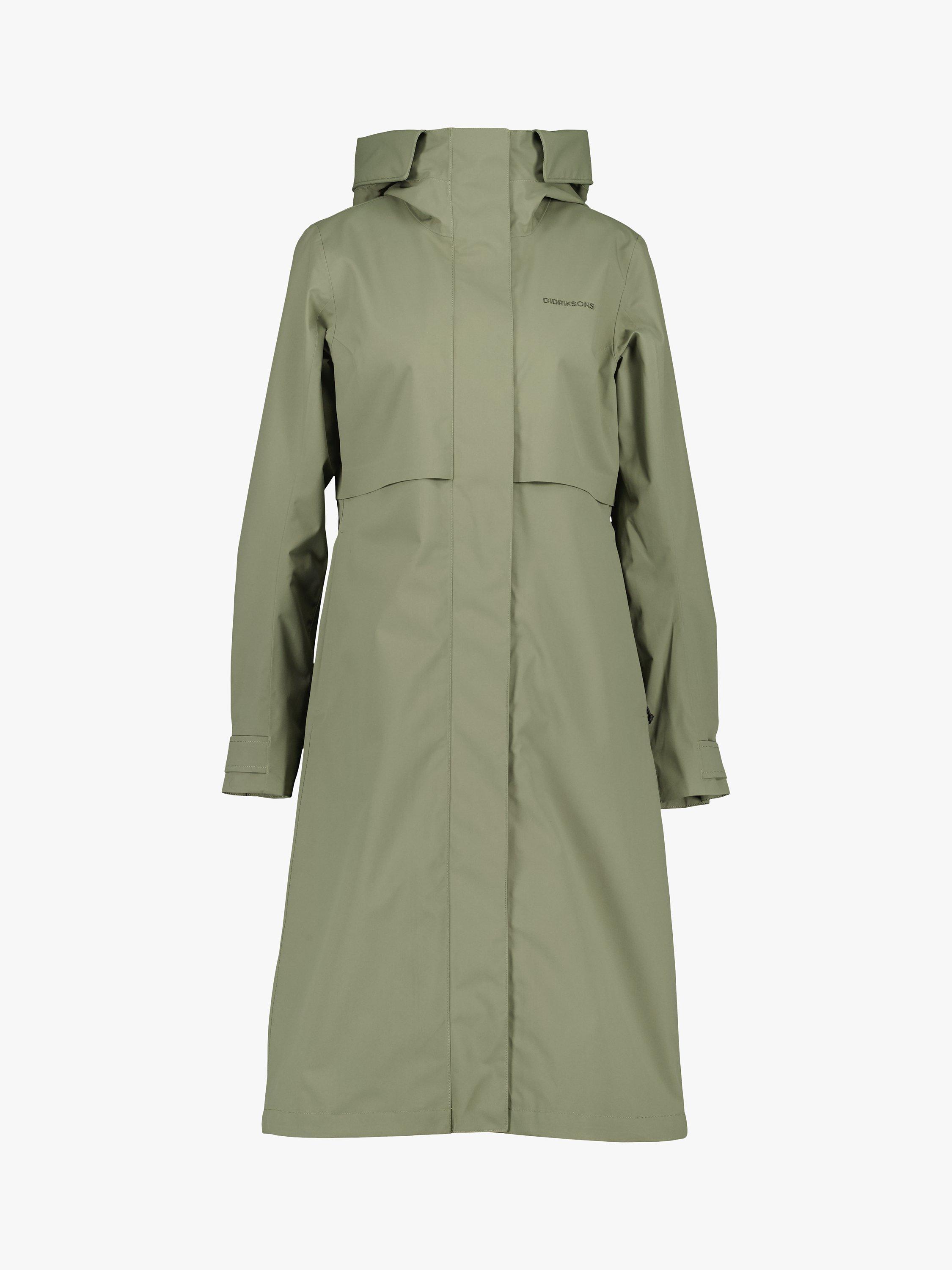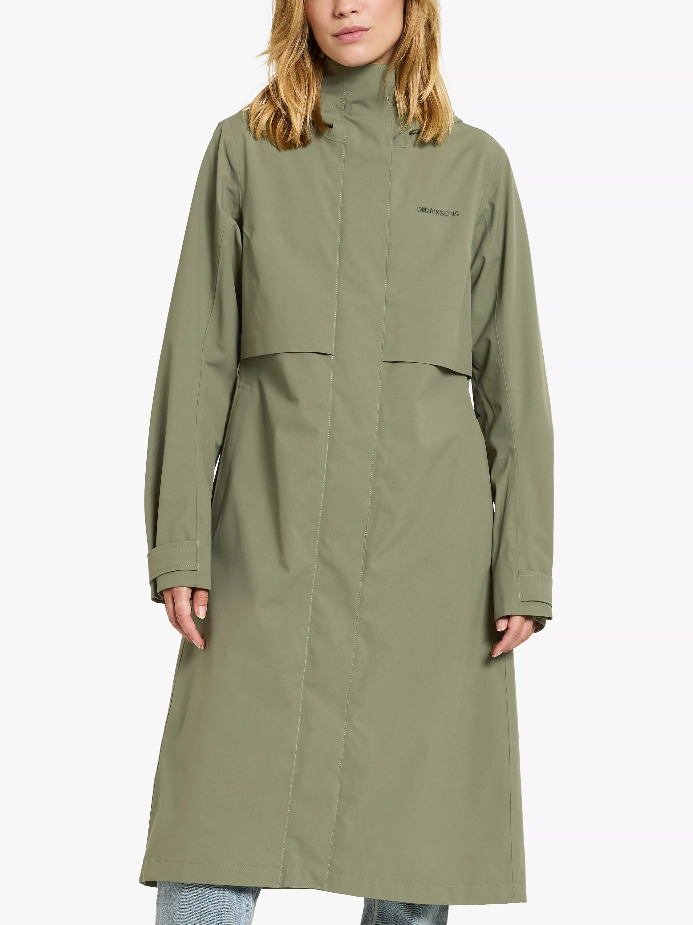 A long, classic feminine parka. Perfect in the city when it's windy or rainy, this waterproof layer features a raised waistline, box pleat at centre back, and an extra protection hood.