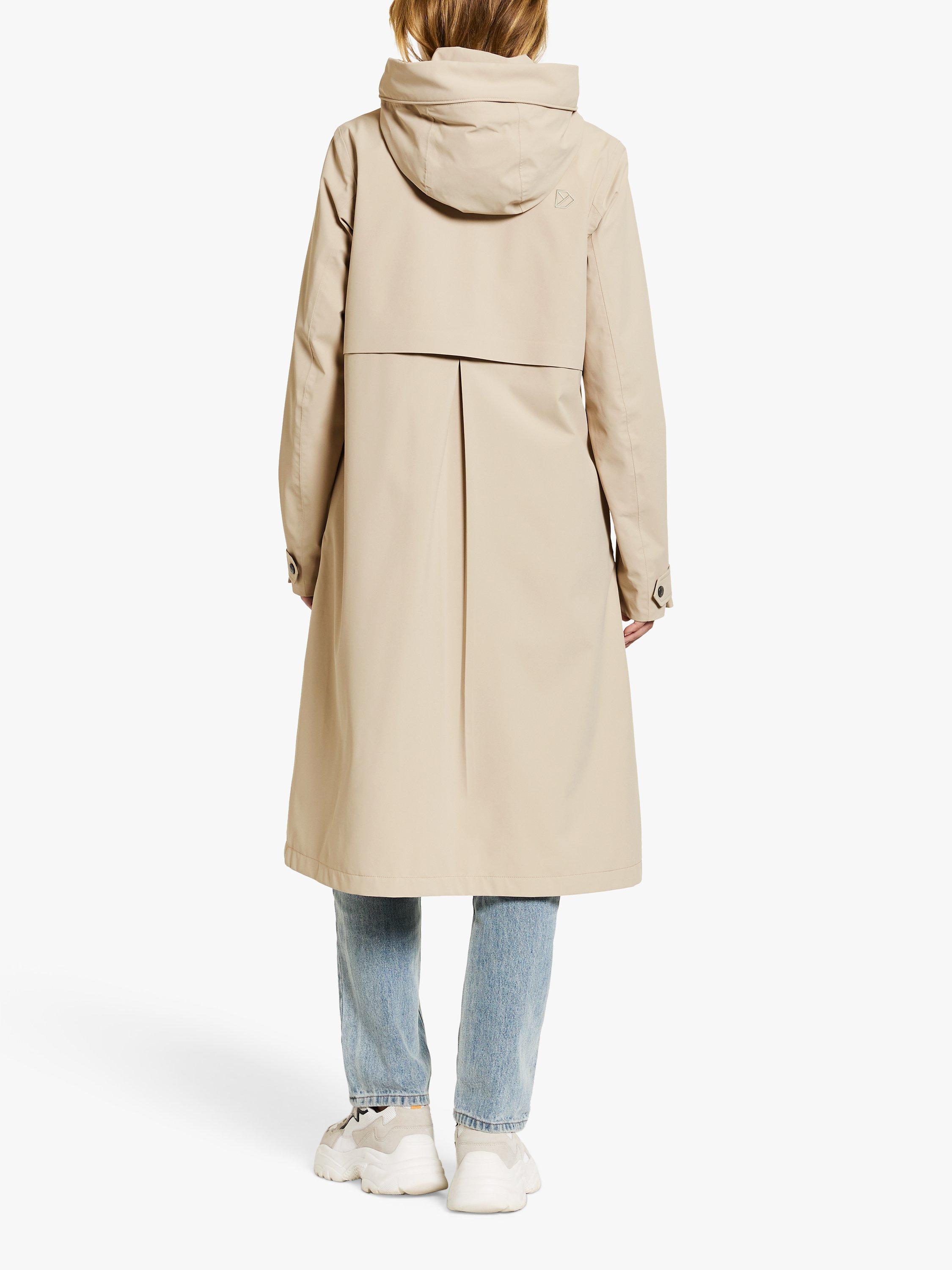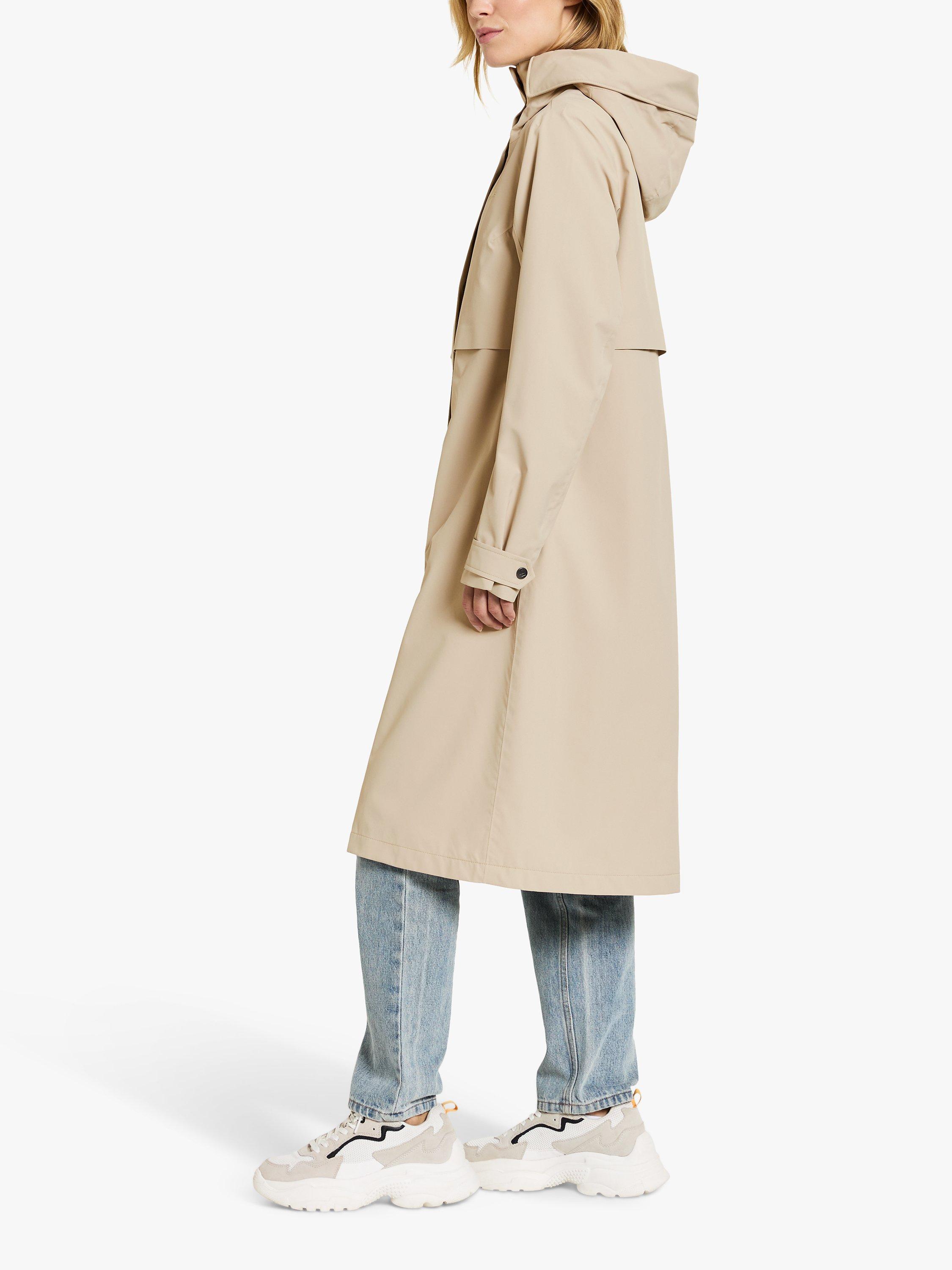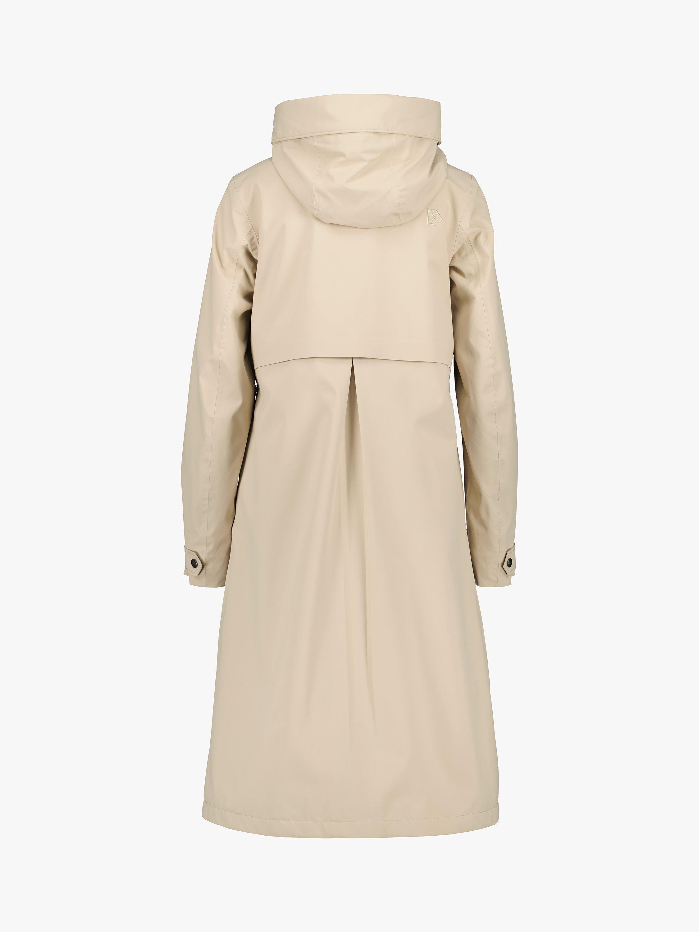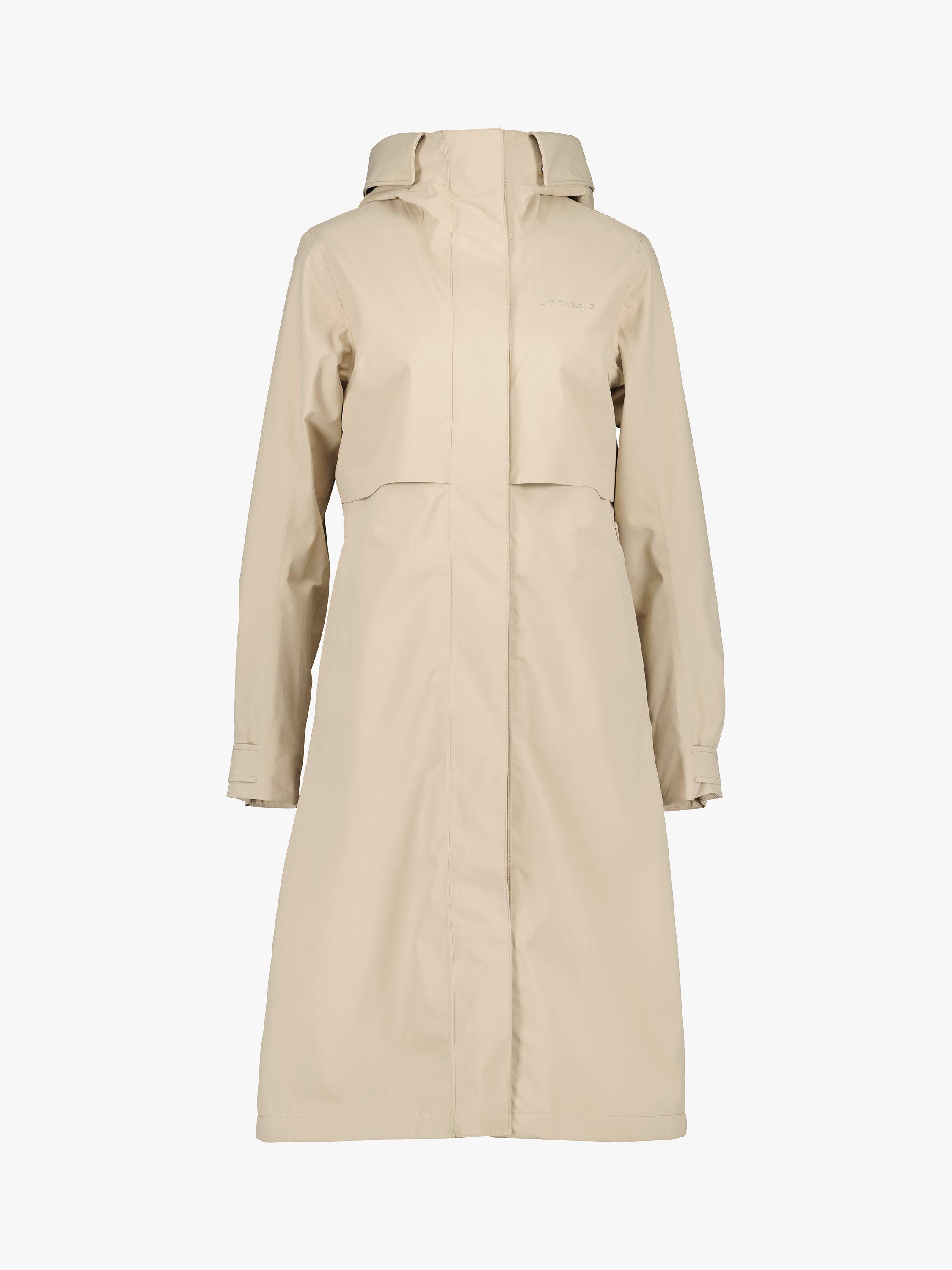 A long, classic feminine parka. Perfect in the city when it's windy or rainy, this waterproof layer features a raised waistline, box pleat at centre back, and an extra protection hood.