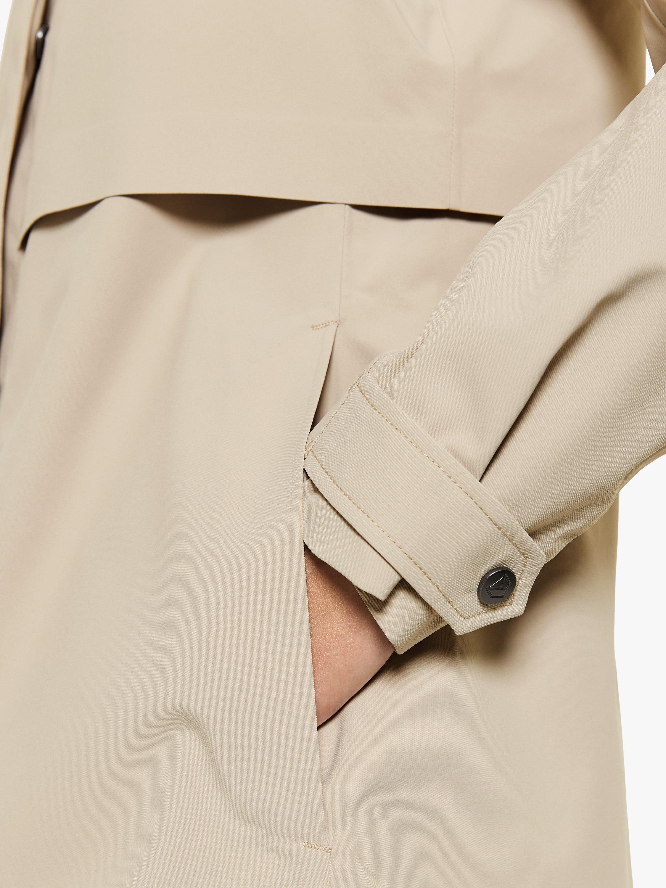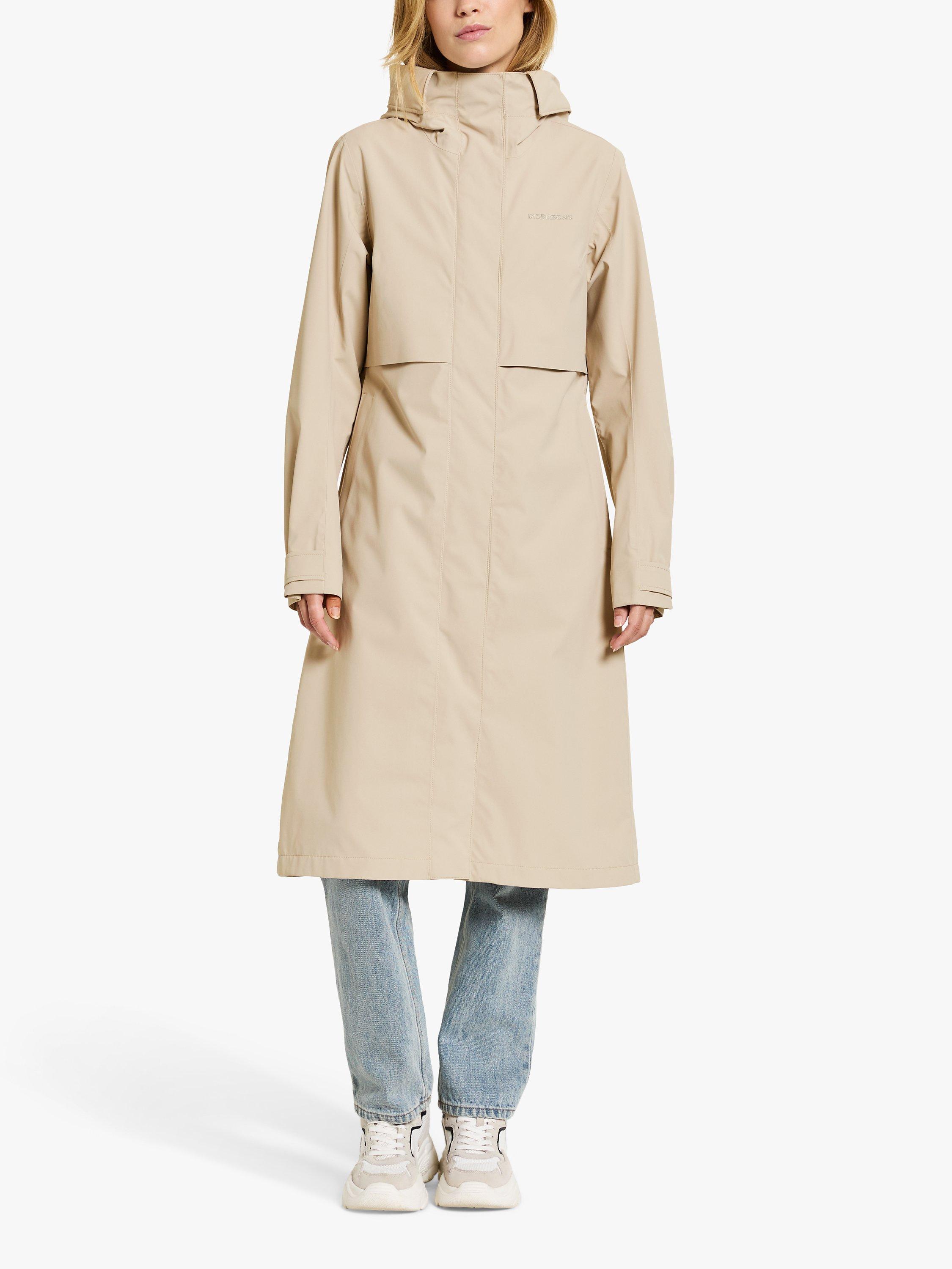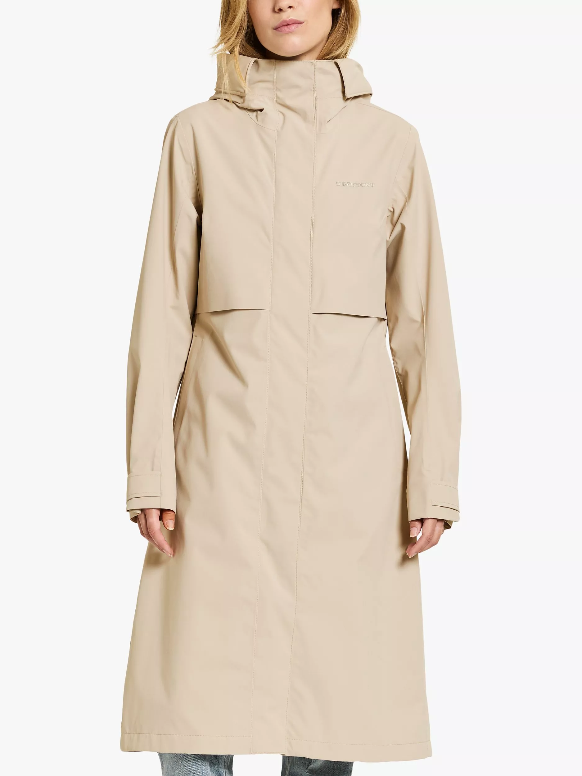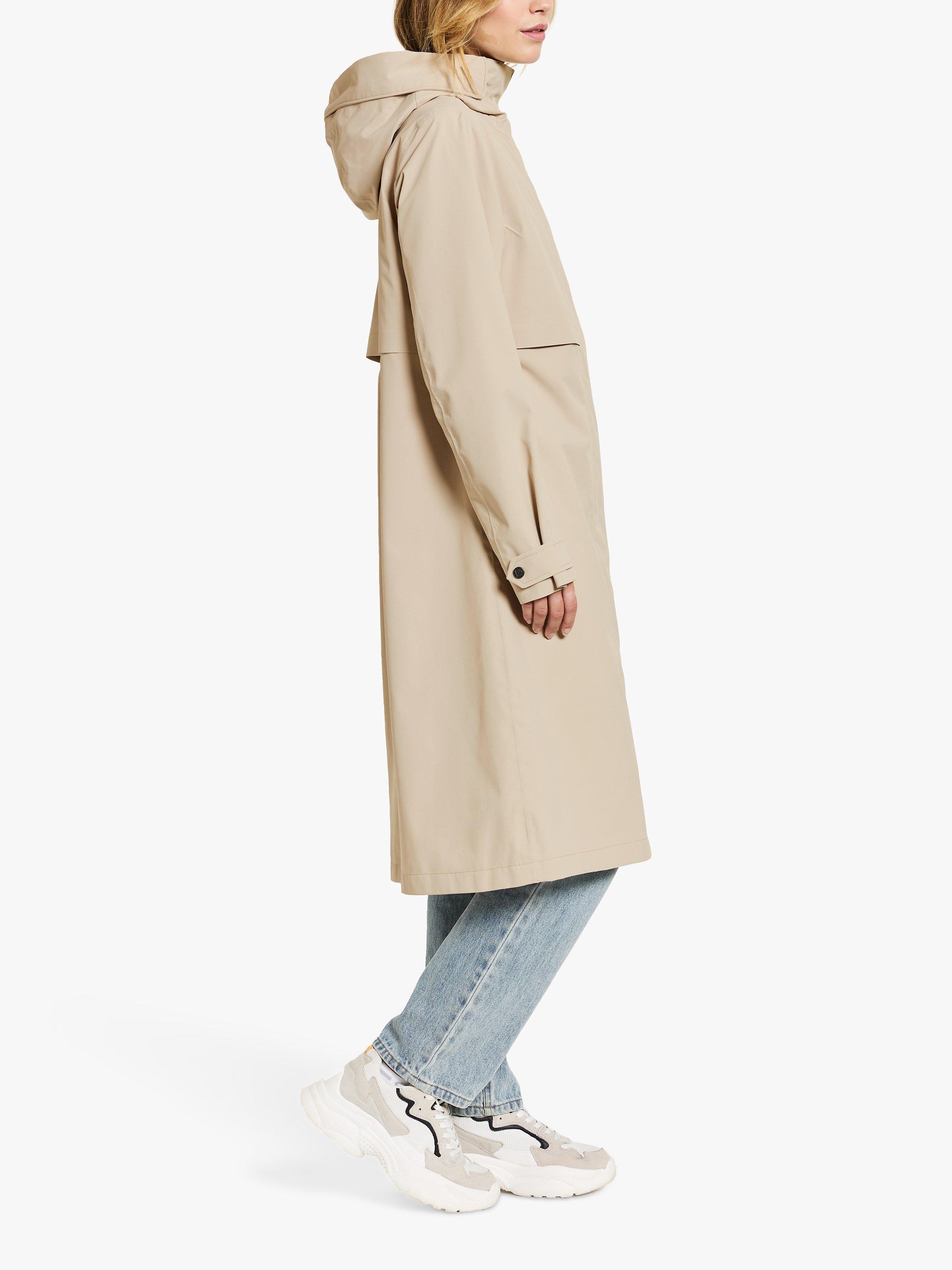 A long, classic feminine parka. Perfect in the city when it's windy or rainy, this waterproof layer features a raised waistline, box pleat at centre back, and an extra protection hood.