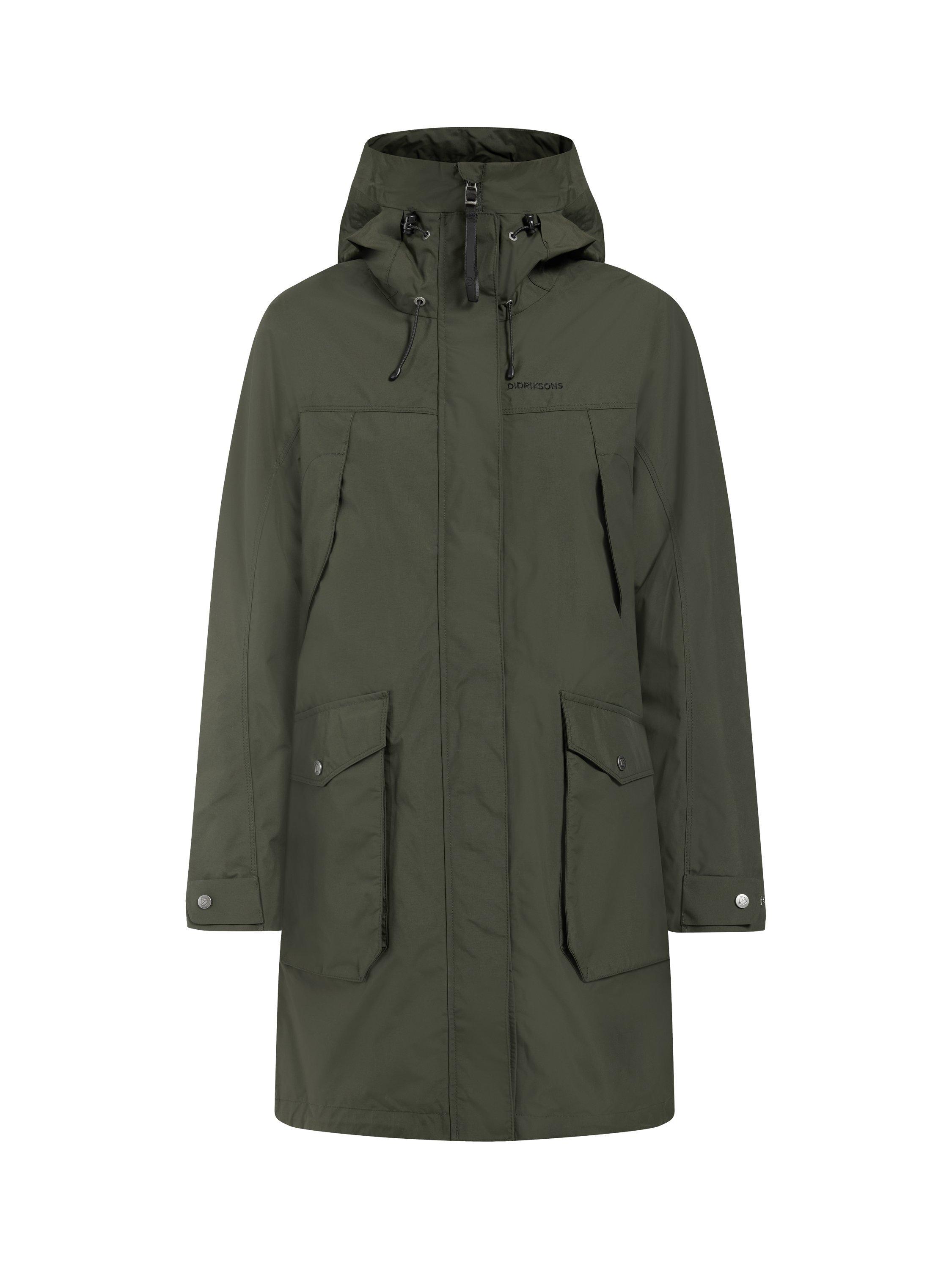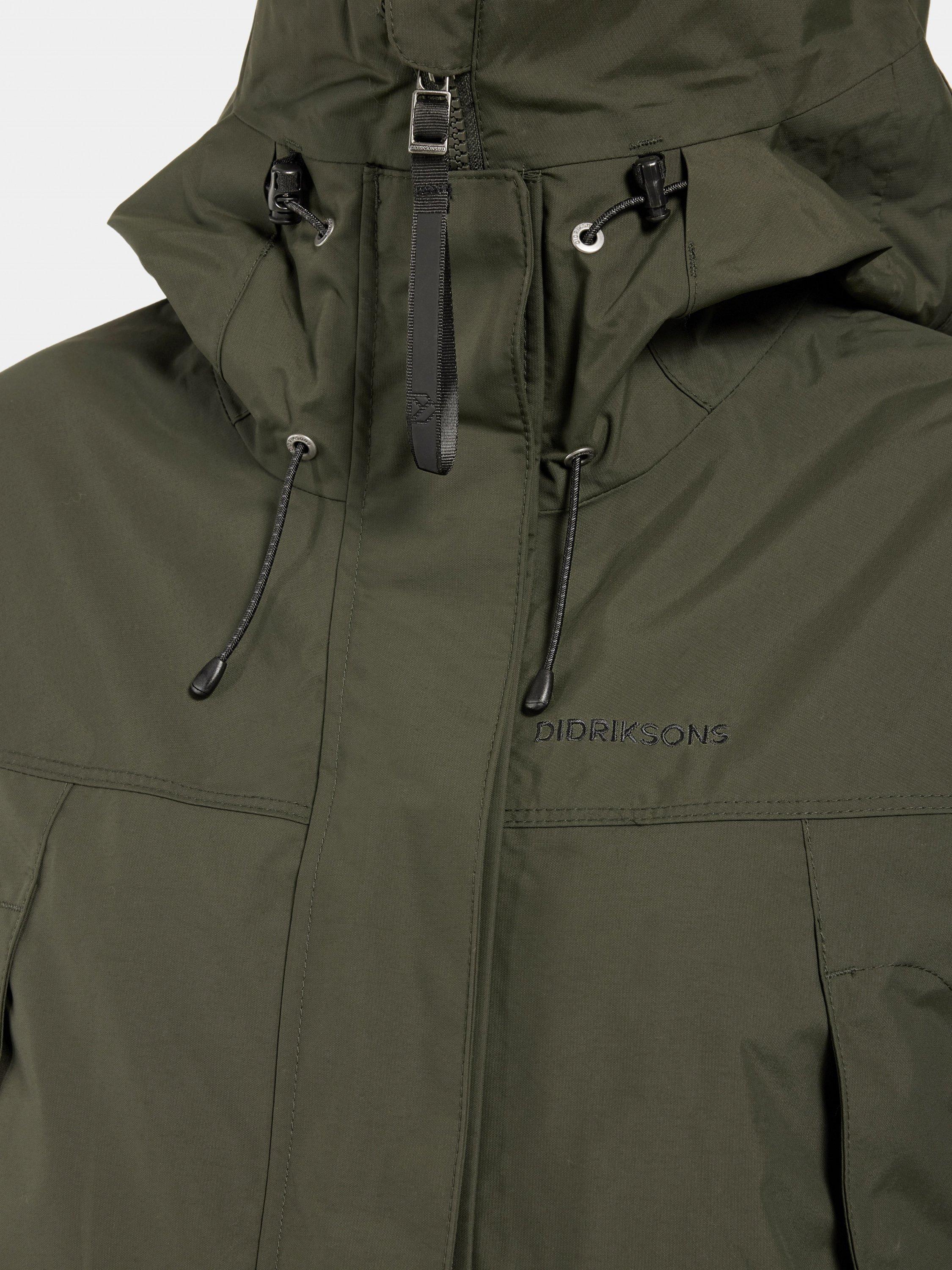 With an adjustable waist and hem, you can easily customise the fit to suit your needs. The parka has several practical pockets, including a chest pocket with a button and inner pockets with zips and mesh. The front zip is protected by a placket with buttons for extra protection against the weather. The cuffs can be adjusted with riptape to keep the cold out, and the zip never lies directly against the chin thanks to the collar's design.