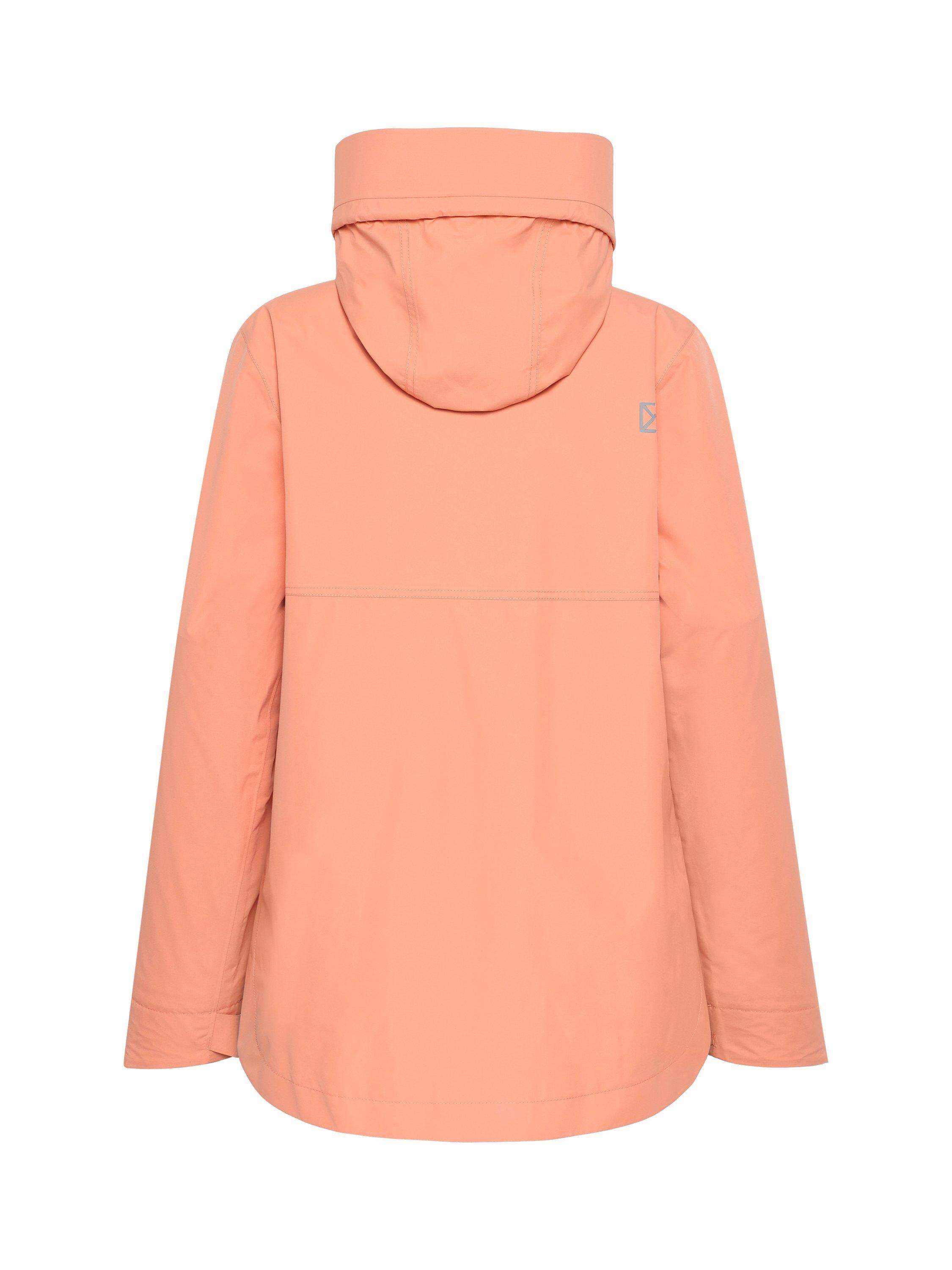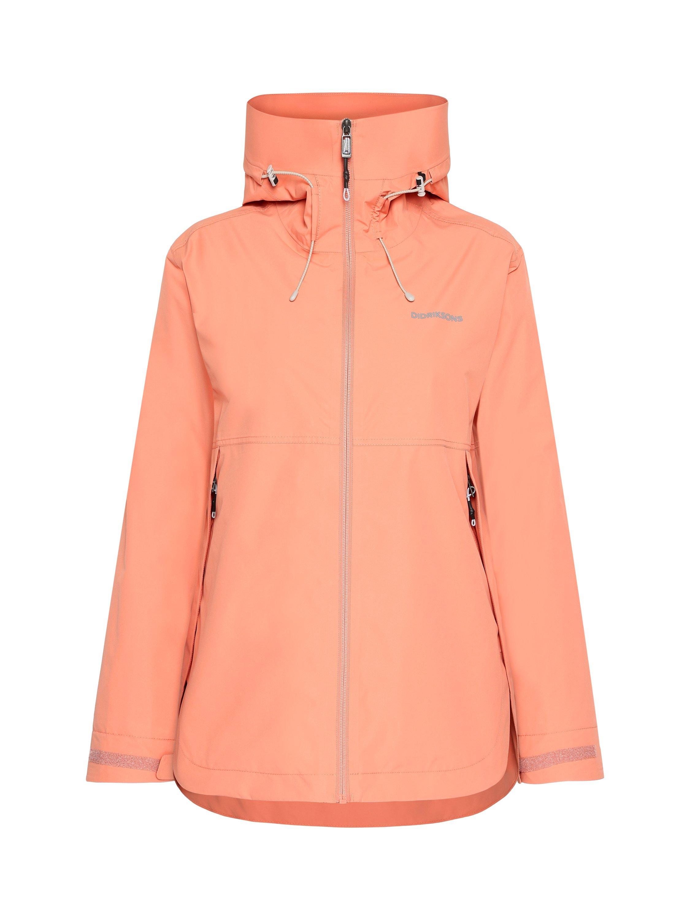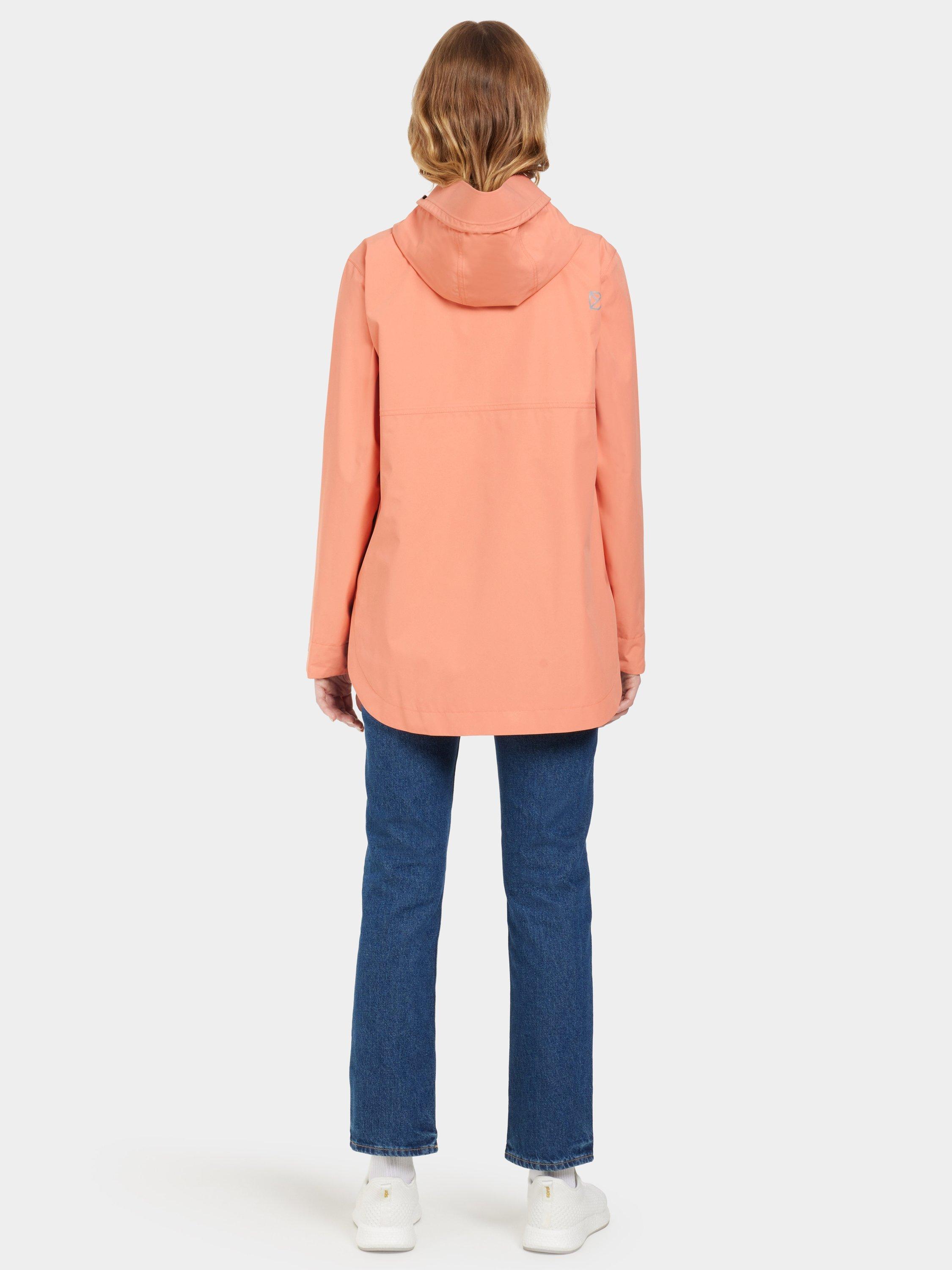 Tilde is a stylish and functional jacket. It has a rounded hem for a modern silhouette and is made from a material that is waterproof and windproof with taped seams. The jacket is made from a breathable fabric. The two-way adjustable hood with an extra protective visor provides optimal protection against the elements. The jacket has zippered side pockets and an inner pocket. The cuffs can be adjusted with hook-and-loop fasteners, and it has side slits. Tilde has a PFC-free water-repellent finish and a lining that is printed to save water. Reflective details.