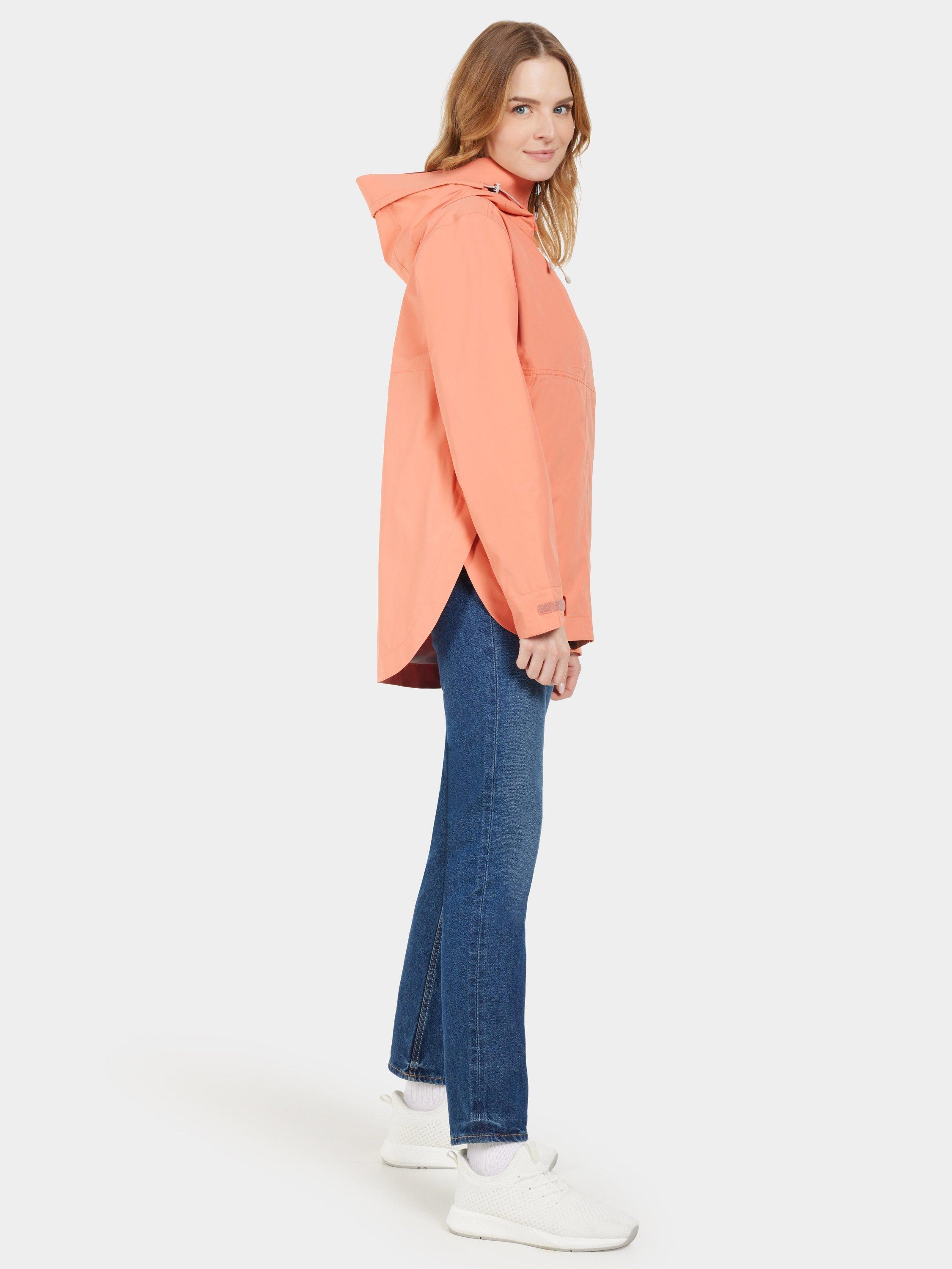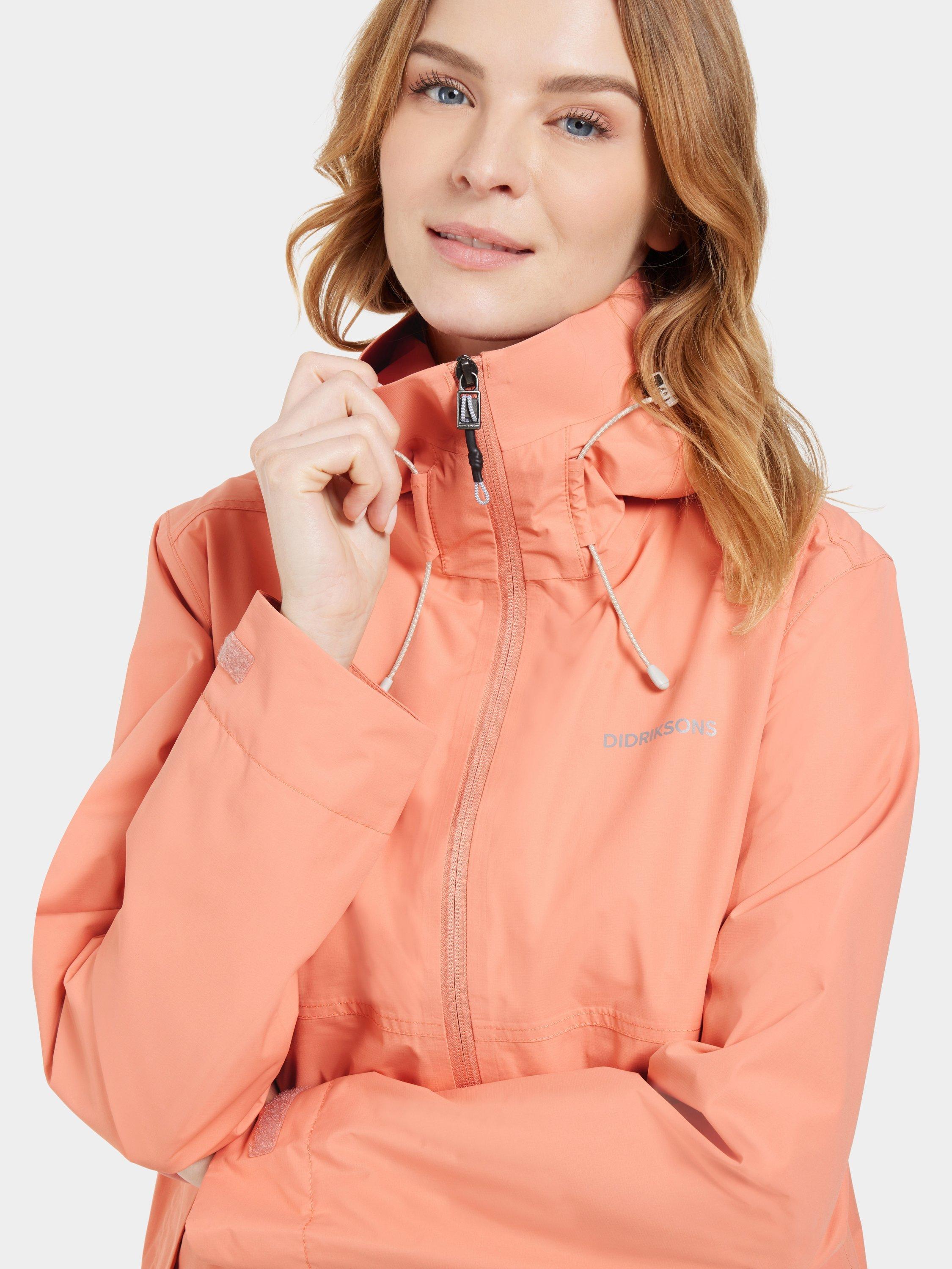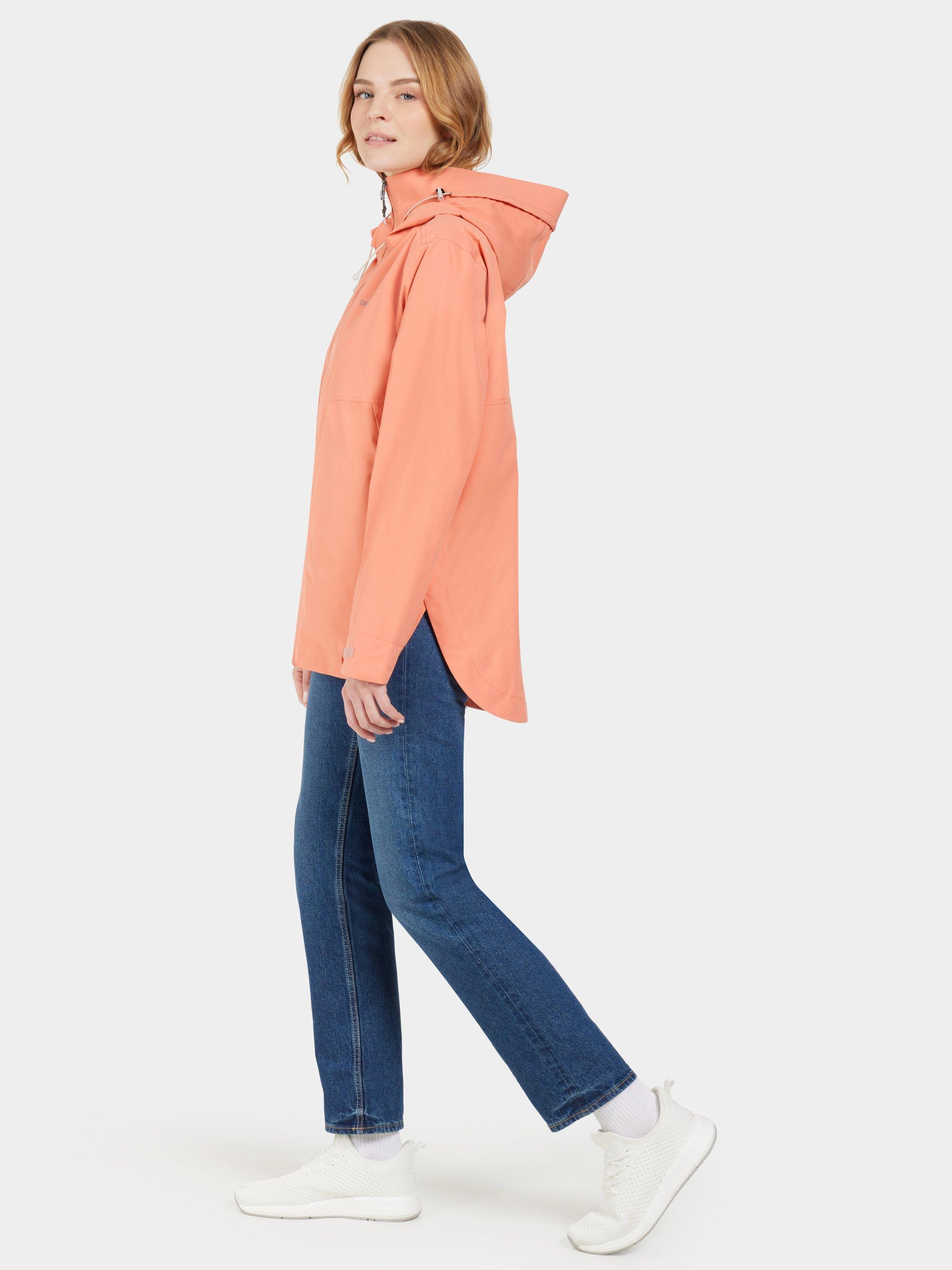 Tilde is a stylish and functional jacket. It has a rounded hem for a modern silhouette and is made from a material that is waterproof and windproof with taped seams. The jacket is made from a breathable fabric. The two-way adjustable hood with an extra protective visor provides optimal protection against the elements. The jacket has zippered side pockets and an inner pocket. The cuffs can be adjusted with hook-and-loop fasteners, and it has side slits. Tilde has a PFC-free water-repellent finish and a lining that is printed to save water. Reflective details.