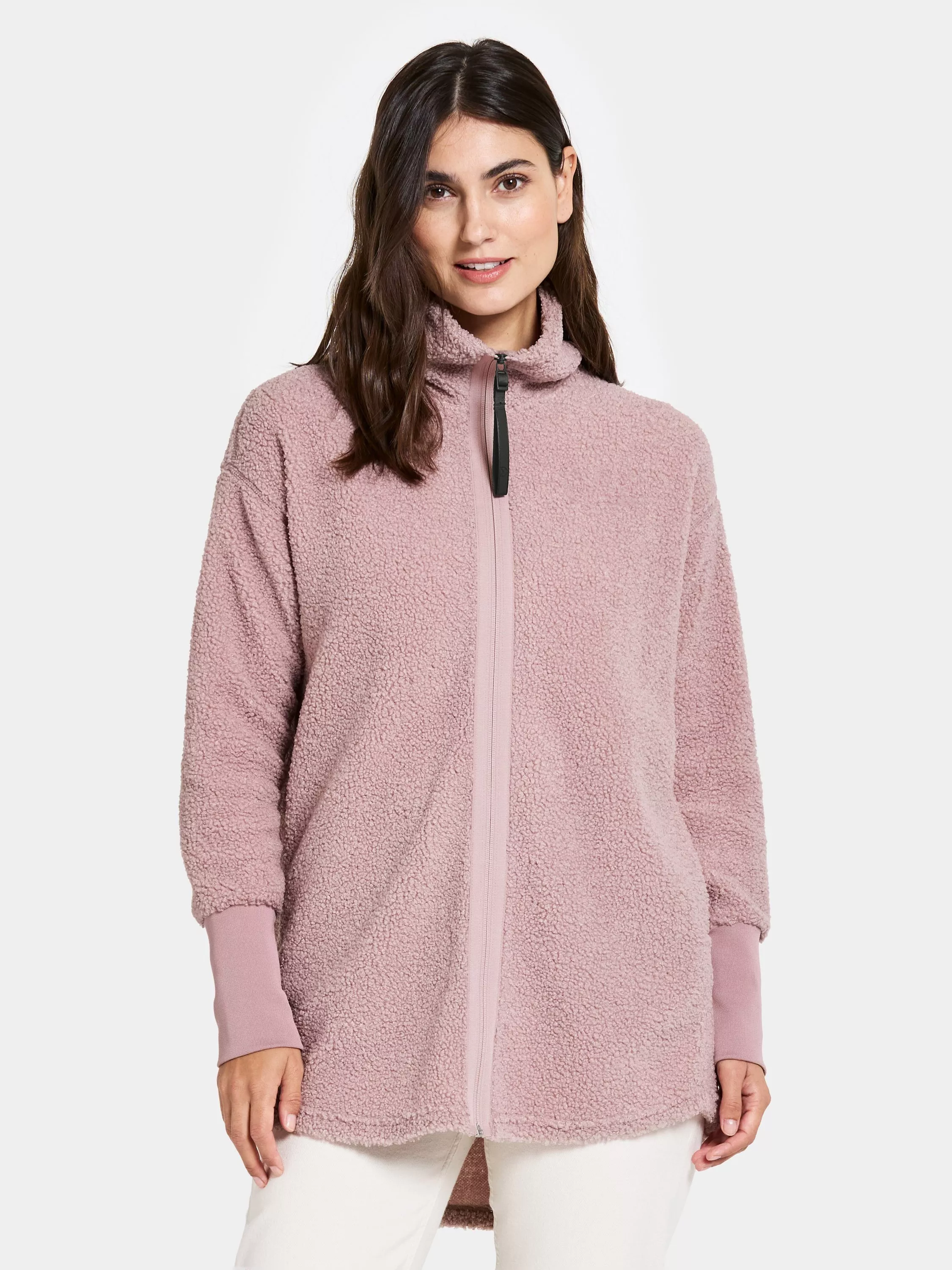 Tola is a warm and cosy fleece jacket in soft pile fabric, perfect for layering. The jacket has a shaped hem and a straight fit that gives a relaxed silhouette. With elasticated cuffs and a regular collar, it's both practical and comfortable. Side pockets and a front zip closure make it a functional addition to your wardrobe. Tola is a jacket that gives you both comfort and style in everyday life.