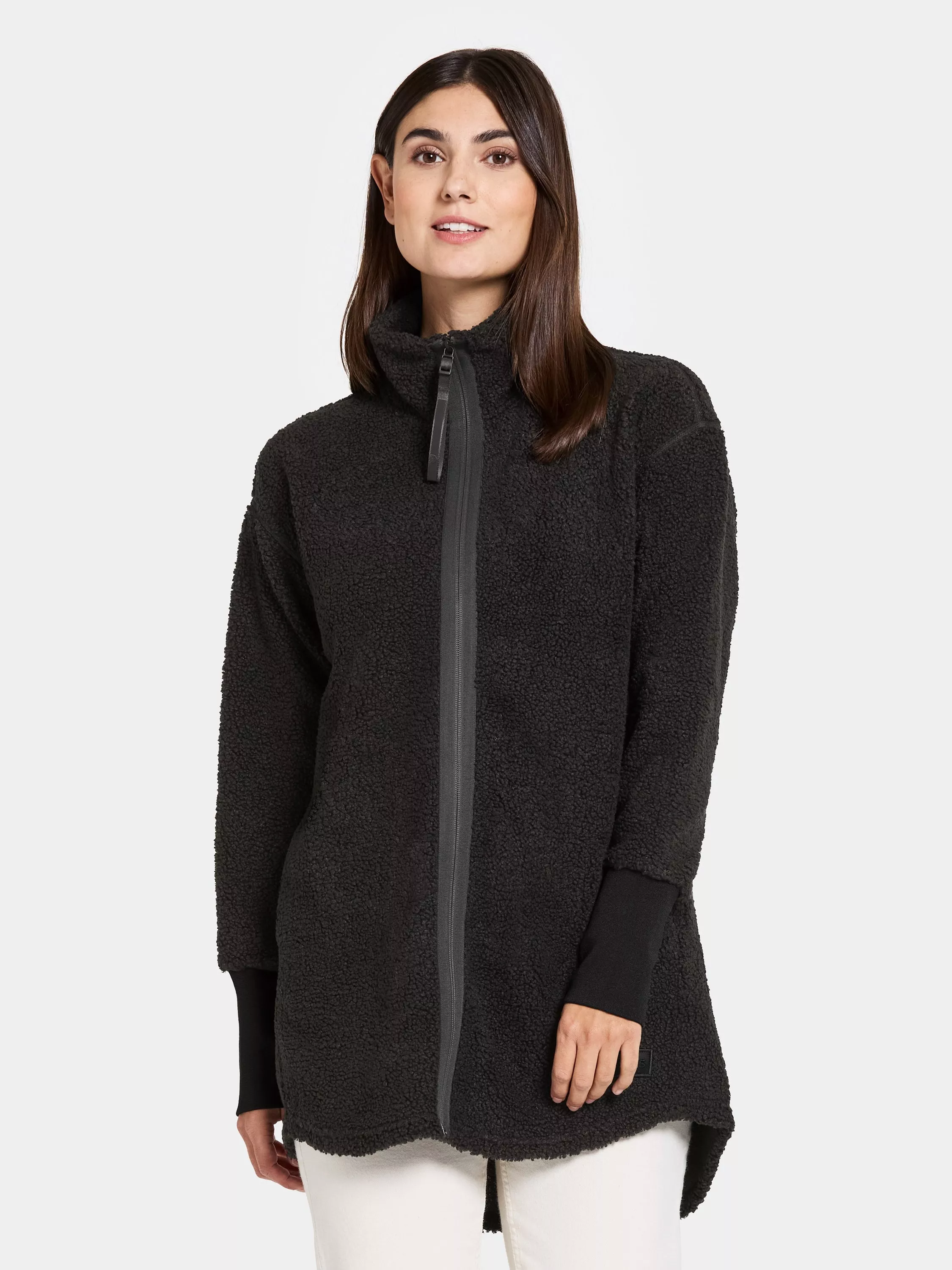 Tola is a warm and cosy fleece jacket in soft pile fabric, perfect for layering. The jacket has a shaped hem and a straight fit that gives a relaxed silhouette. With elasticated cuffs and a regular collar, it's both practical and comfortable. Side pockets and a front zip closure make it a functional addition to your wardrobe. Tola is a jacket that gives you both comfort and style in everyday life.