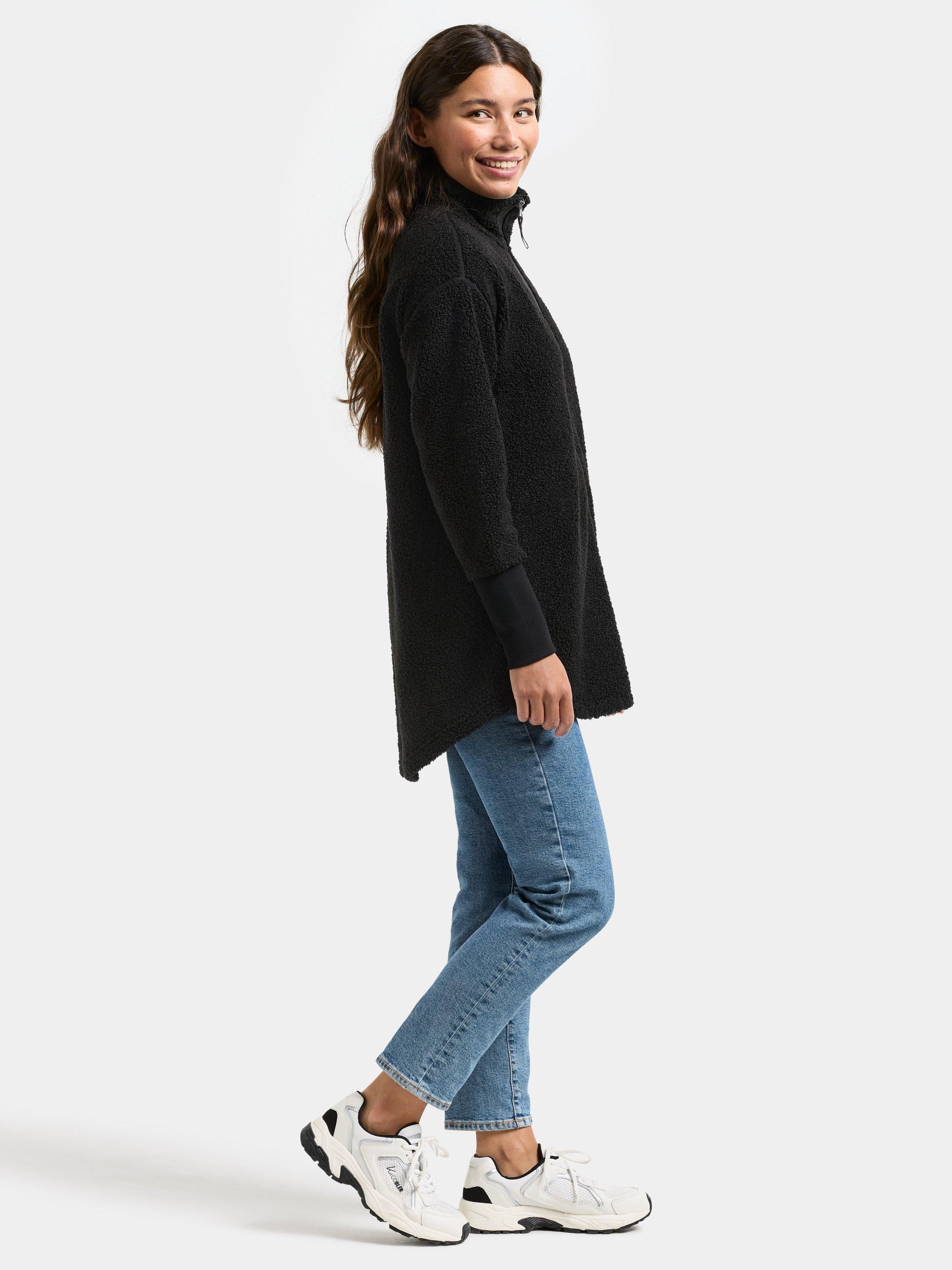 Tola is a comfortable teddy jacket with elastic cuffs, perfect for both everyday use and outdoor activities. It is made from a soft and cosy material that provides a pleasant feel against the skin. The jacket features a front zip closure and side pockets for practical storage. The straight fit and regular collar make it a versatile garment that fits in any wardrobe.