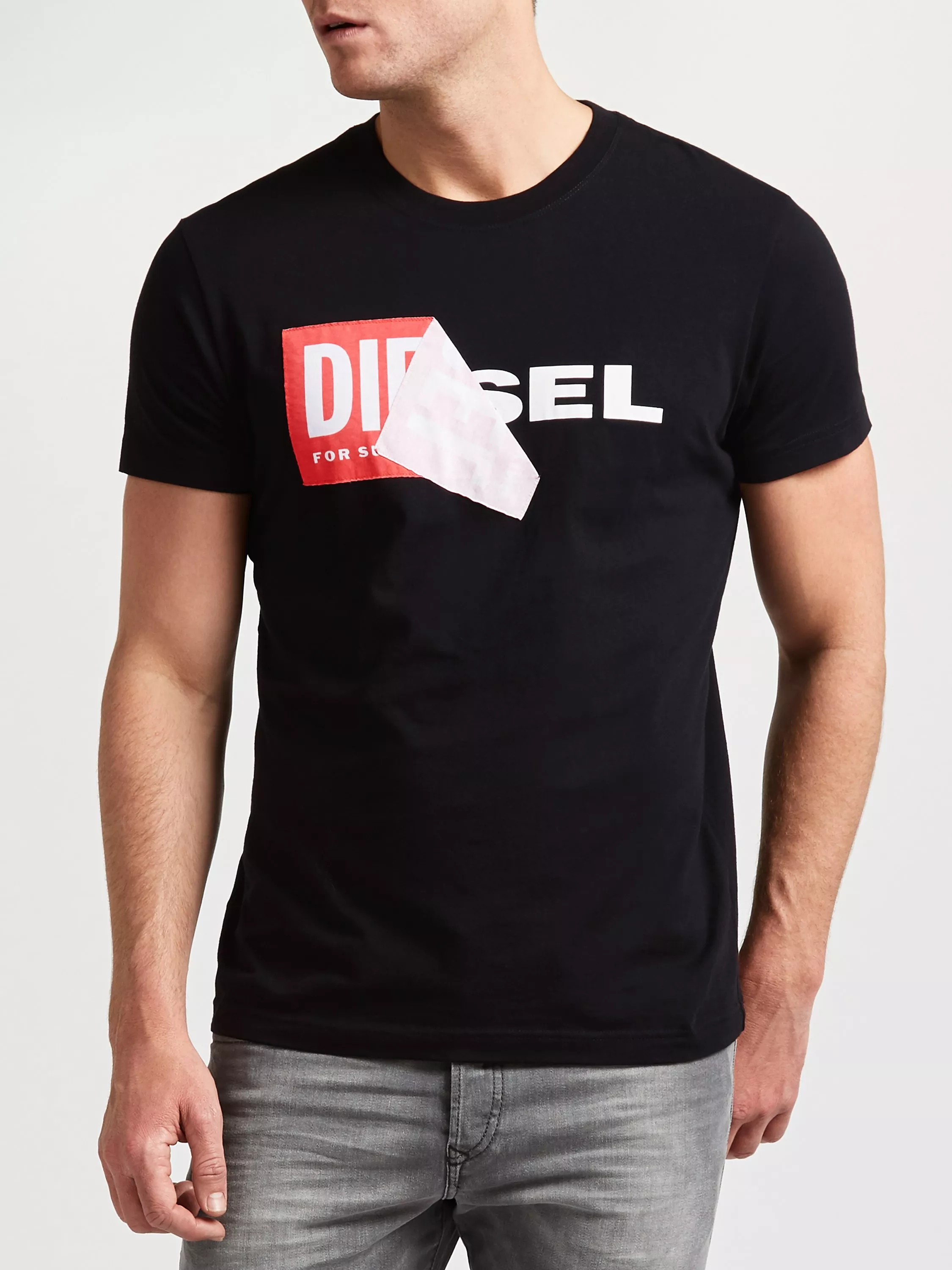 Plotting the evolution of the Diesel logo, this T-Diego T-shirt is emblazoned with the original version in red and and the brand new logo in black underneath.