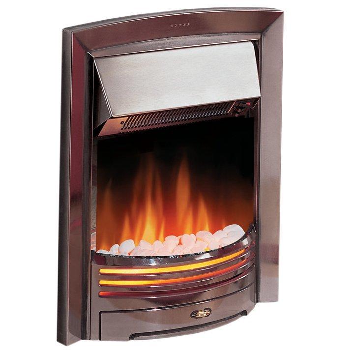 The Dimplex Adagio ADG20 is an inset fire with Optiflame® Plus effect with real coals and small white pebbles for that homely feel. It's made of one piece solid cast metal grate and front with a polished stainless steel finish with a contrasting brass effect knob. The Adagio fits standard 16" or 18" fireplaces and all conventional flues. There's a choice of fan heat settings, and you can run the flame effect independent of heat.