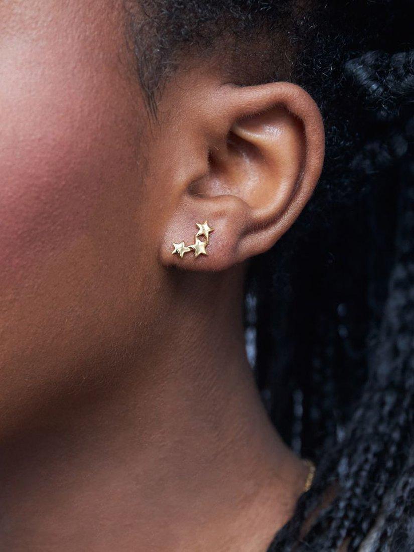 These trio star studs are handmade with a right and left side and a beautifully polished finish. Secured with post fittings that are for pierced ears only.