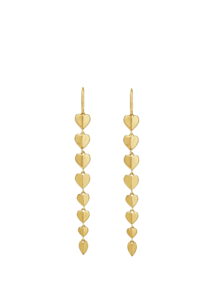 Hearts a-flutter! Make a statement with these head-turning Folded Heart Drop earrings from Dinny Hall. Crafted in 22k yellow gold vermeil, these earrings flow with every movement.