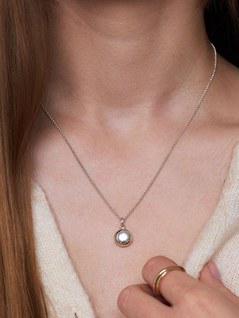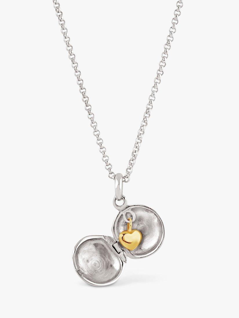 Elegant, heartfelt and meaningful no matter what you wear it with, this locket necklace from Dinny Hall is designed with a flattened button locket with a heart charm inside.