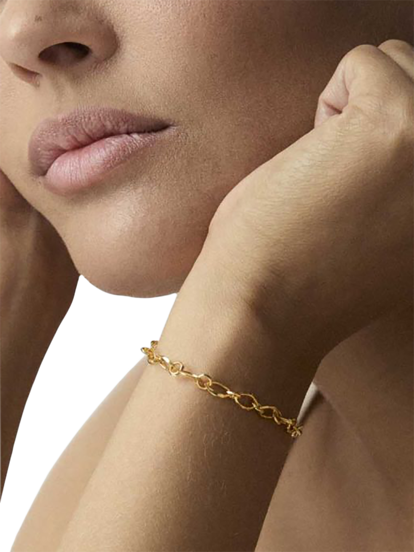 The Thalassa link bracelet is a modern classic, crafted in 18ct yellow gold vermeil, electroplated over 925 sterling silver, balances sculptural detail with refined simplicity. Perfect for layering or wearing solo.