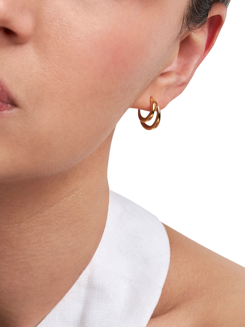 The Toro Double Hoops by Dinny Hall, crafted in recycled 22ct gold vermeil, will be your new favourite style staple. Inspired by the bull's horn and its symbolism of power and protection, these timeless gold-plated hoops are the ideal complement to any of your outfits.