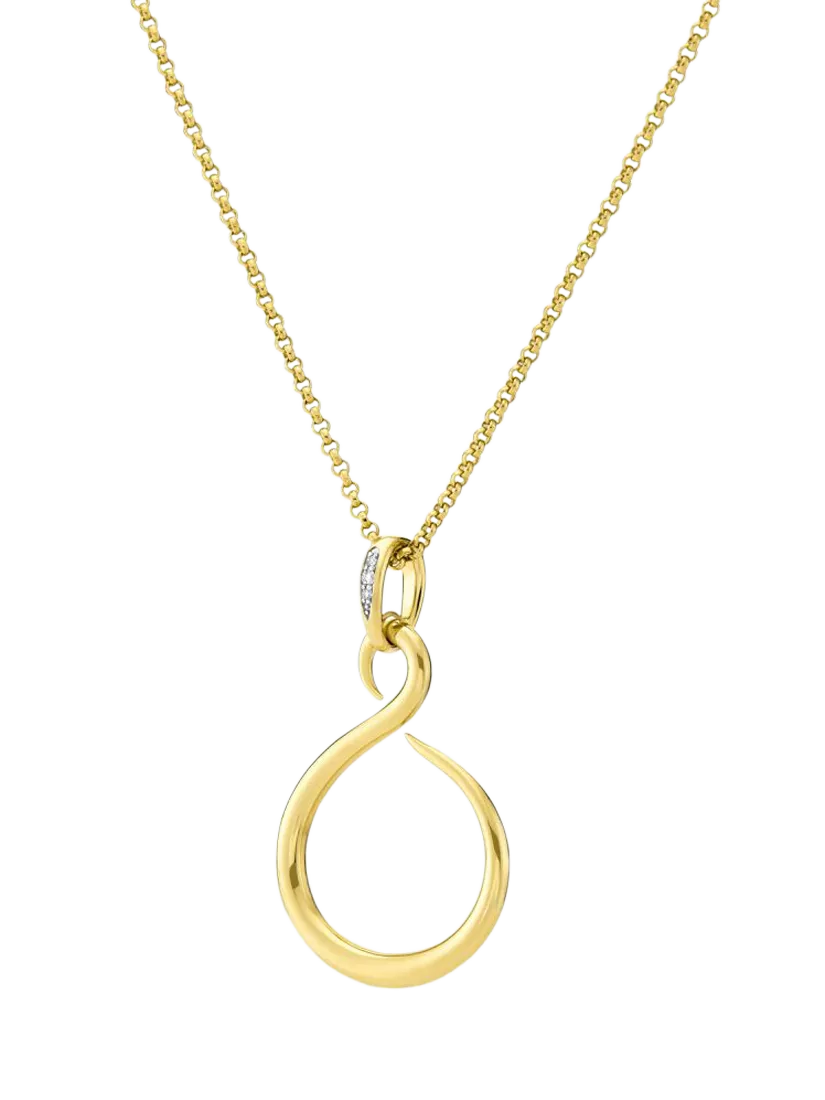 The Toro Lasso Pendant necklace showcases a sculptural silhouette in 18ct gold vermeil, with twinkling lab-grown diamond accents. Bold yet refined, this necklace is designed to make a sophisticated statement, blending contemporary artistry with timeless elegance.