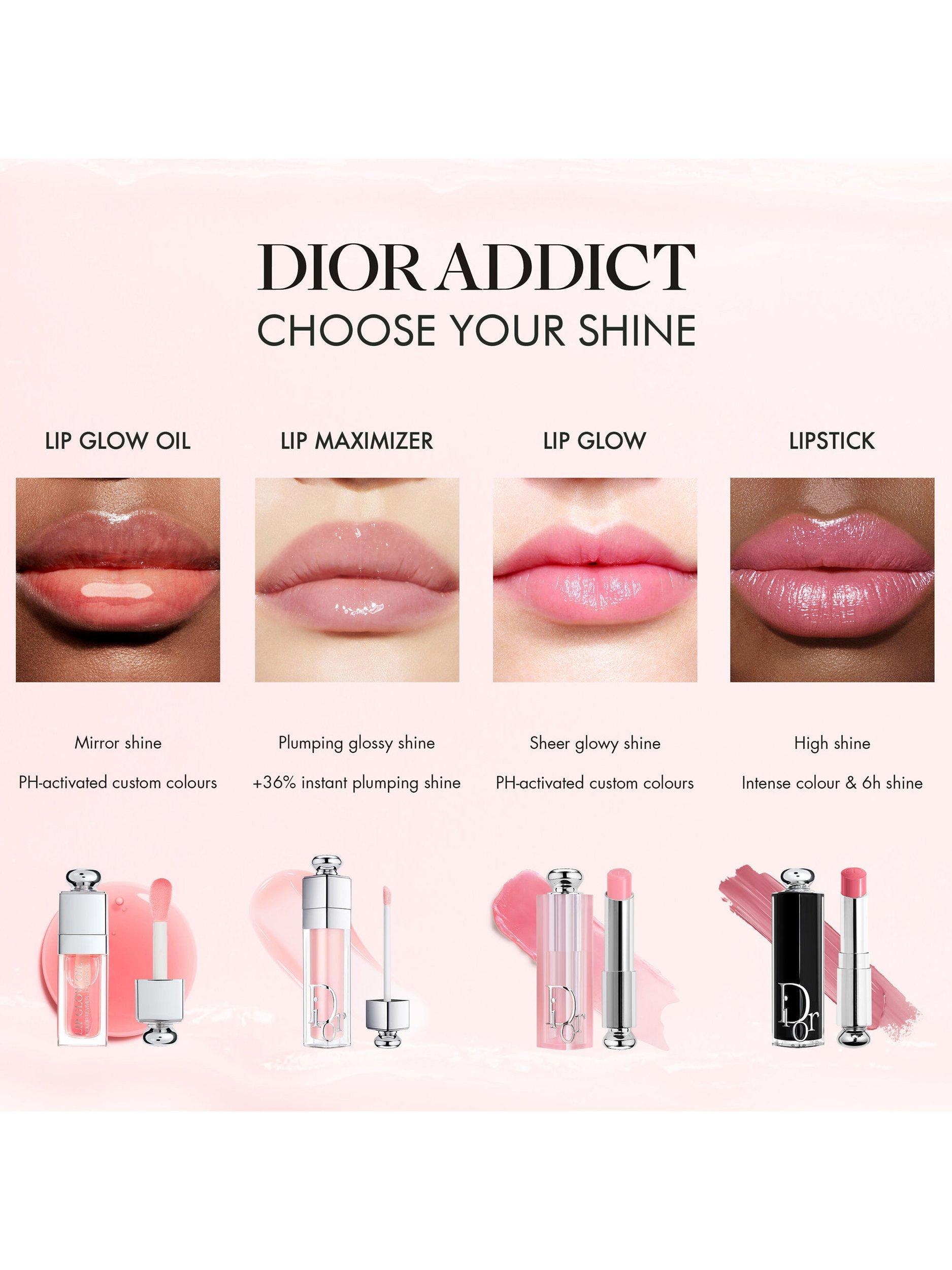 Shades: Dior Addict Lip Glow is available in a wide range of 15 shades and 2 undertones. Its initial colour palette is enriched with complementary war undertones. From fresh, vibrant pinks to bold raspberries, bright corals to luminous nudes, Dior Addict Lip Glow brings out the natural colour of various lip shades and boosts their radiance.
