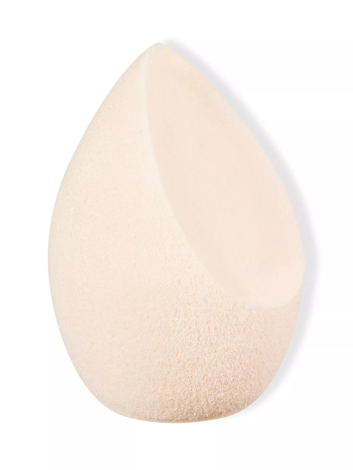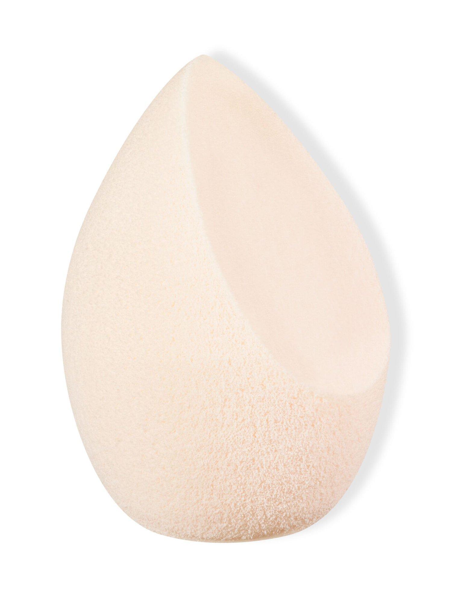 Fluid foundation sponge, buildable coverage. Egg-shaped with a beveled side, the fluid foundation sponge applicator has a high-density, soft-touch material that deposits just the right amount of product, allowing for precision application and perfectly even coverage.