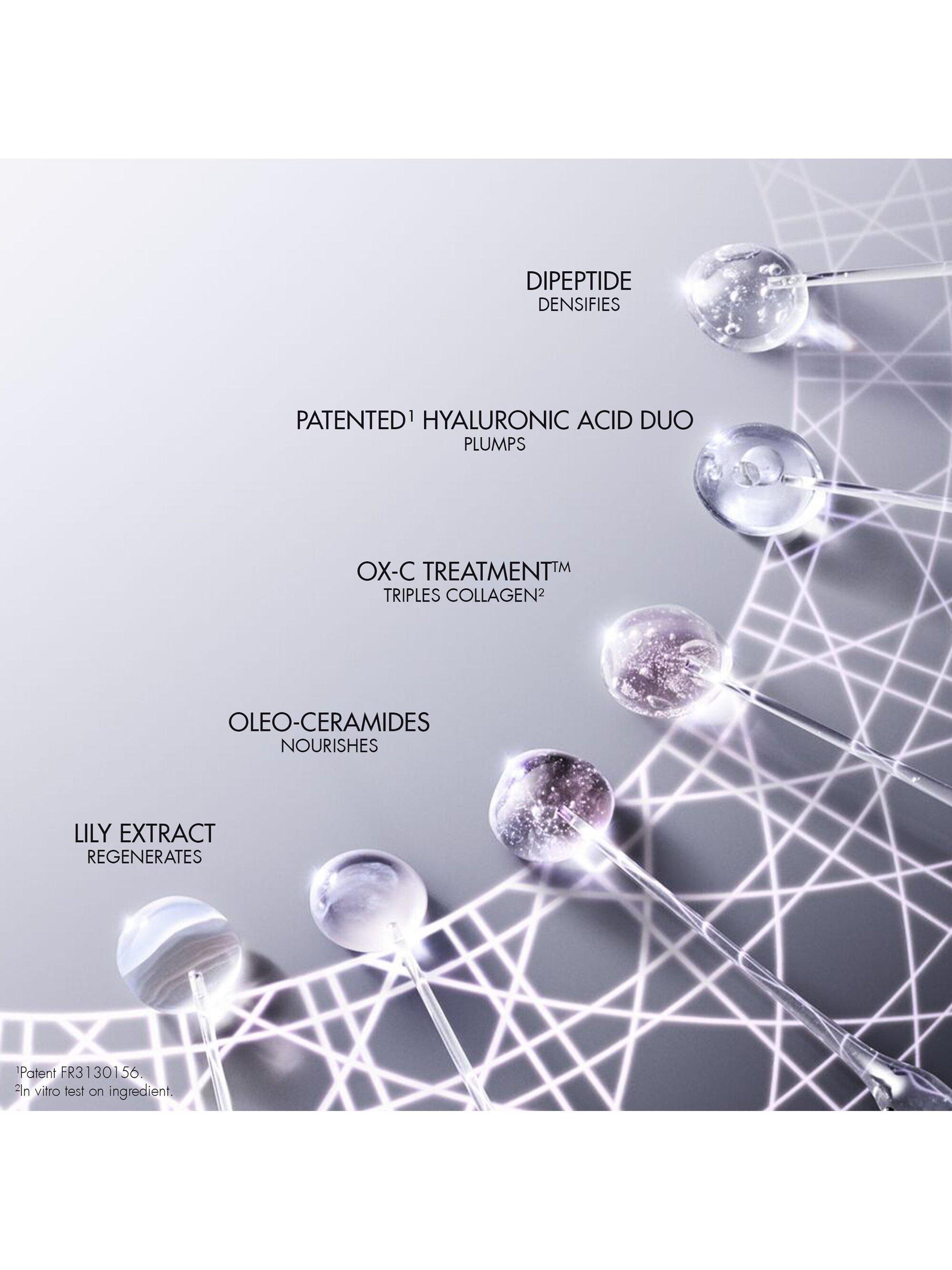 This cream features the signature OX-C Treatment™ technology for skin lacking collagen¹. Rich in oleo-ceramides and a patented² duo of hyaluronic acids for a plumping effect.