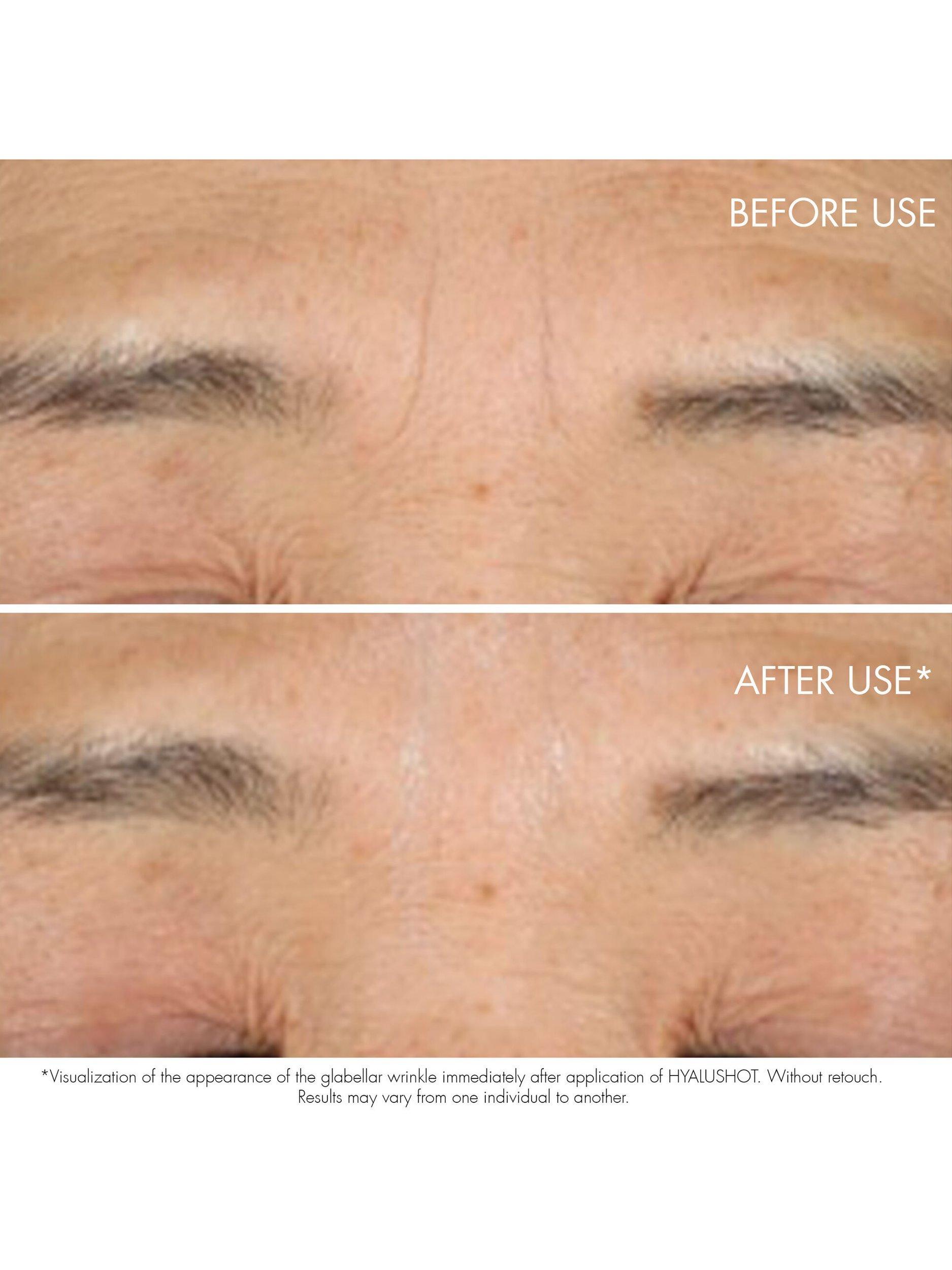 1 Instrumental test on 30 people after application of Hyalushot. 2 30 subjects reported improvement on fine lines severity/appearance after application of Hyalushot.