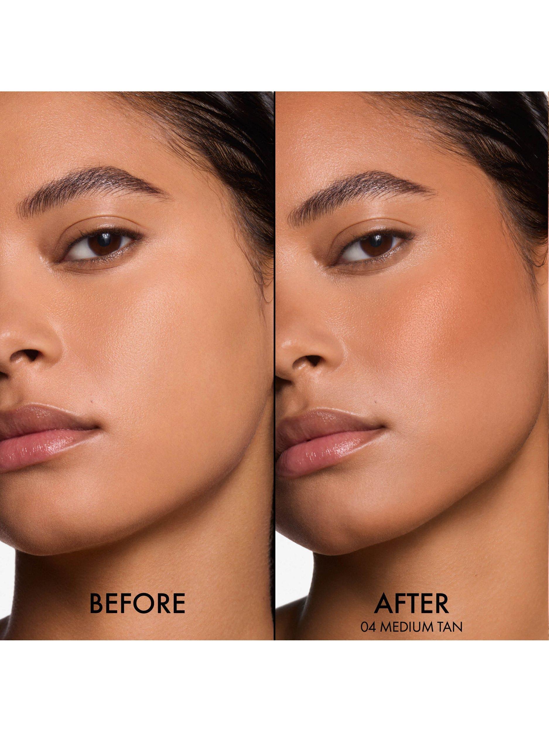 Its ultra-melting texture glides effortlessly, blending seamlessly for a barely-there effect that mimics a natural tan. The complexion is luminous, the skin feels smooth, and the tan is enhanced.