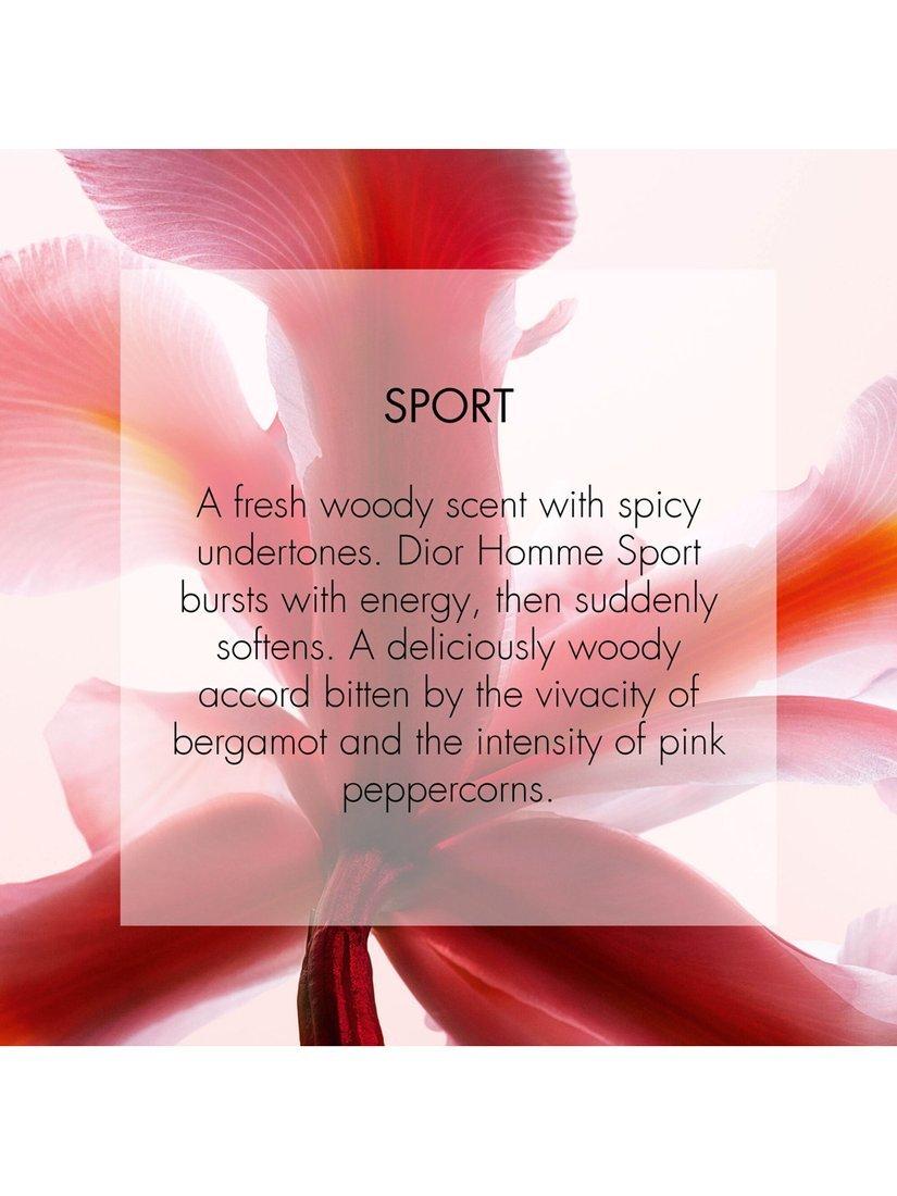 DIOR creates DIOR Homme Sport, the new lively and sensual eau de toilette, the explosive combination of fresh and enveloping notes, the fragrance of a man with a tender and magnetic virility.