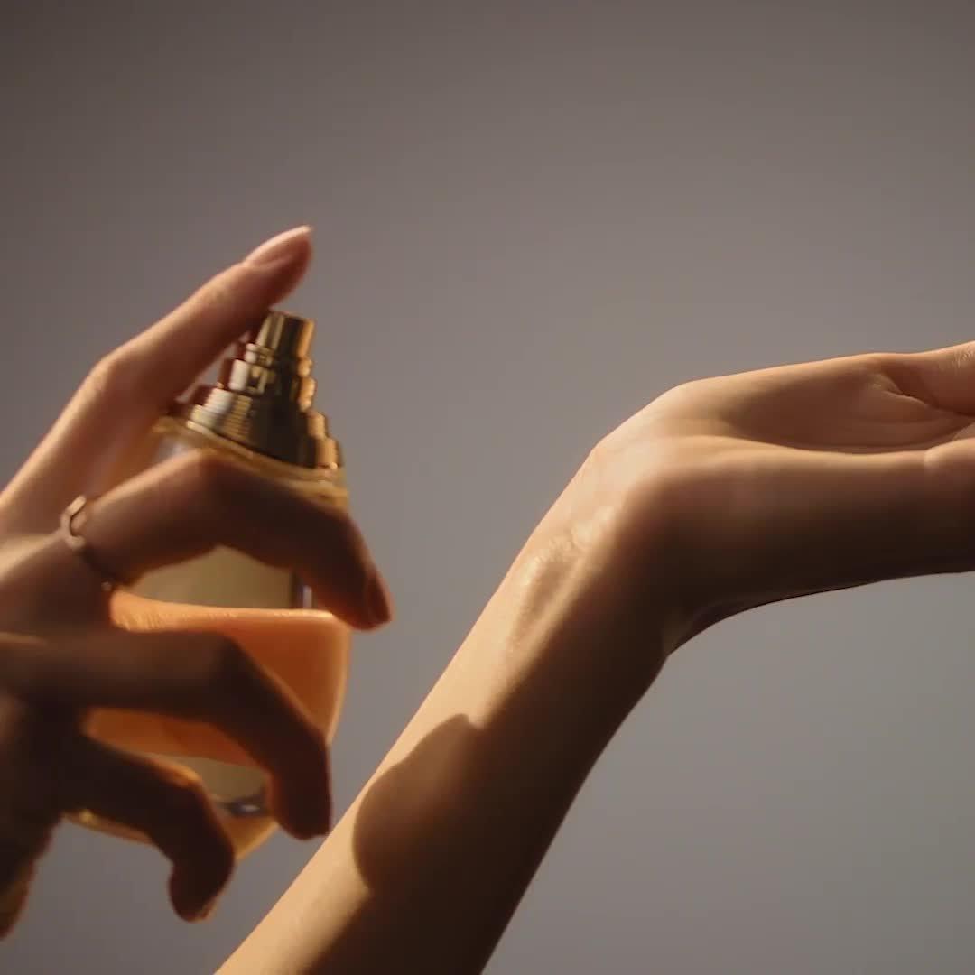 The iconic J'adore bottle has been reinvented: one by one, the golden threads slide infinitely on the glass, like a precious jewel necklace on the skin.