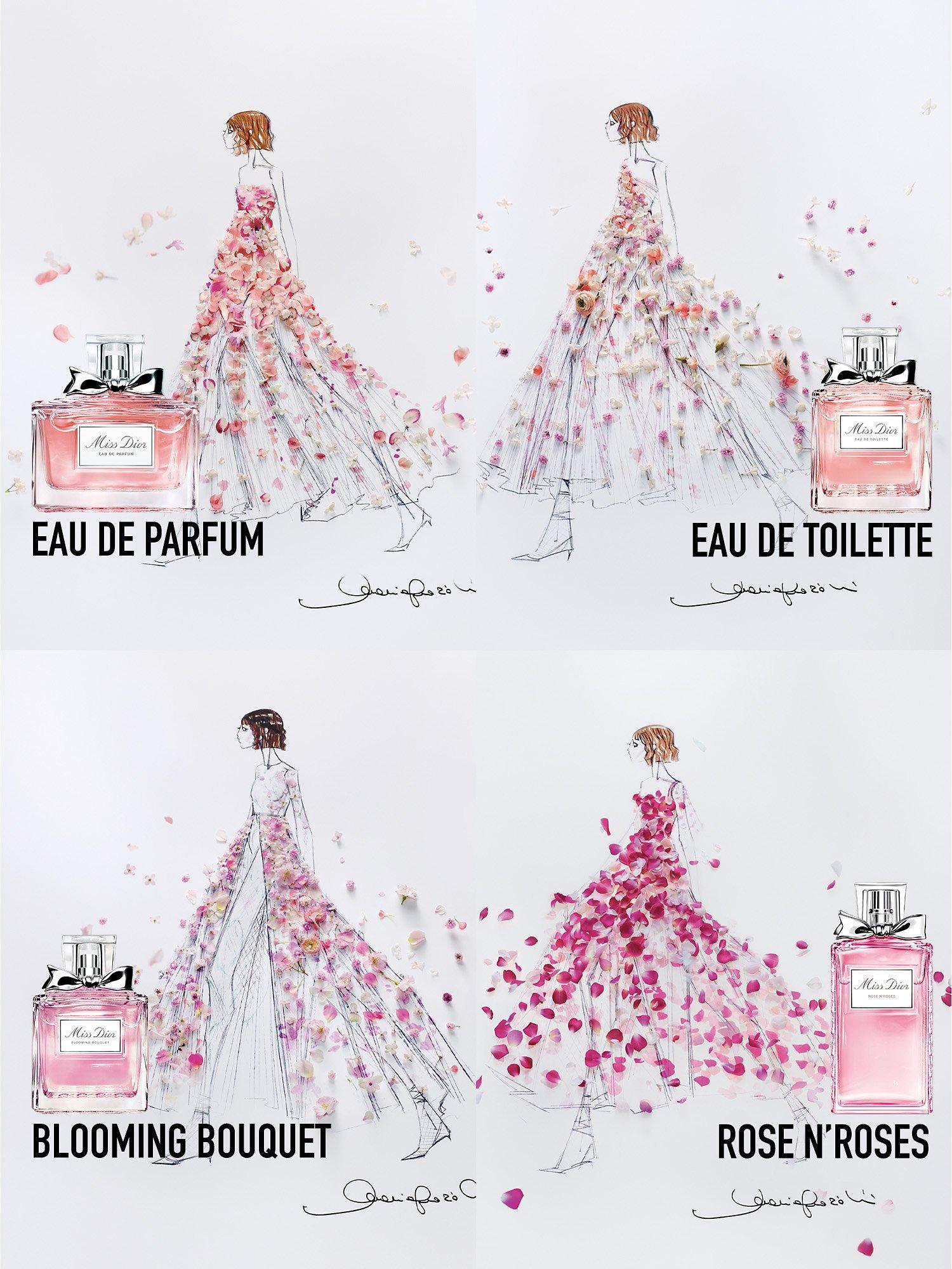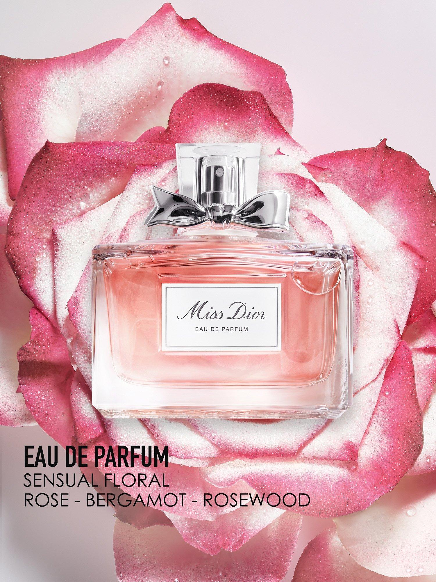 The new Miss DIOR Eau de Parfum reveals the femininity of a sensual floral. Its heart is a floral declaration that combines the beauty of Grasse rose with the boldness of Damascus rose, both wrapped in a ribbon of fresh notes of Calabrian bergamot.