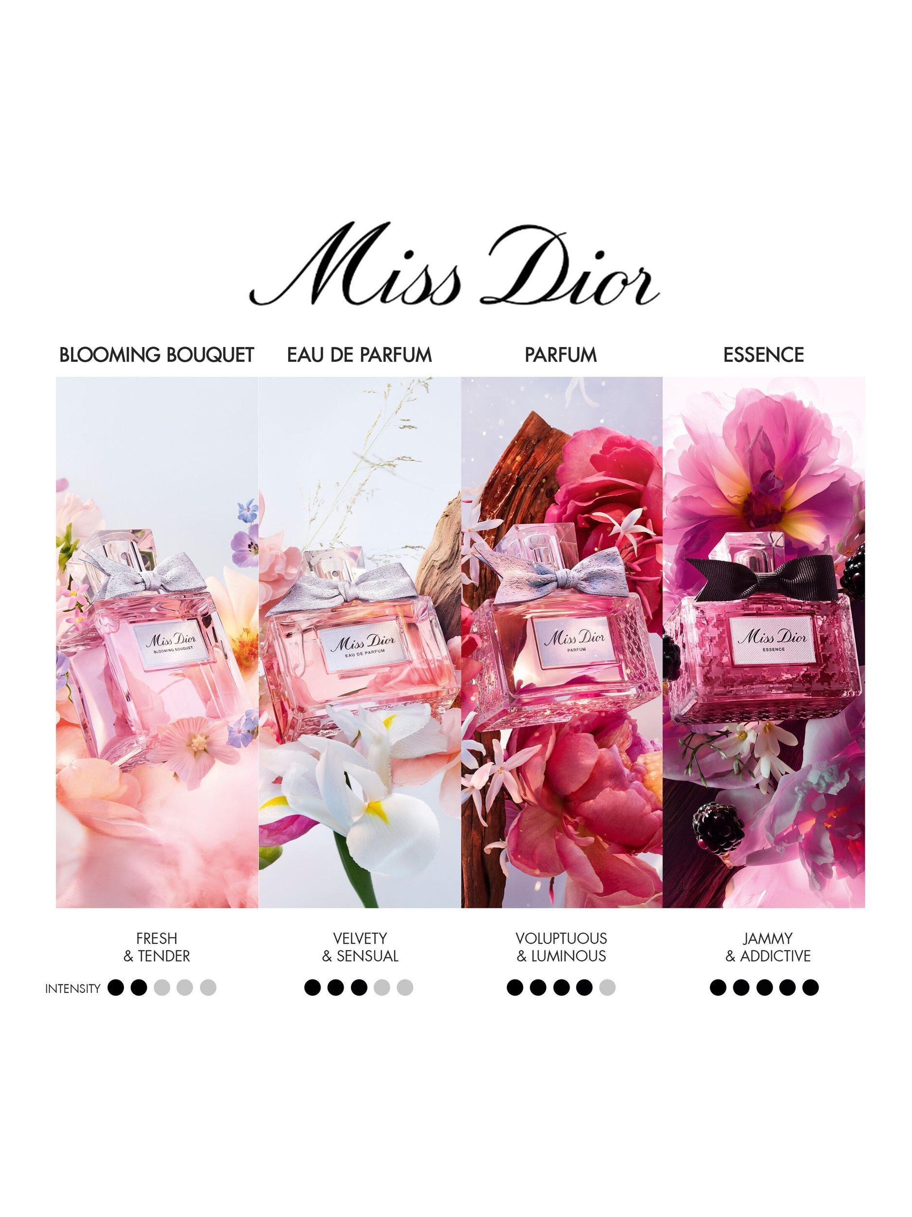 Miss Dior Essence is both the perfect gift and an ode to femininity. Its intense trail features a floral heart of luminous jasmine accompanied by striking succulent accords enveloped in dense, sensual notes of oak.