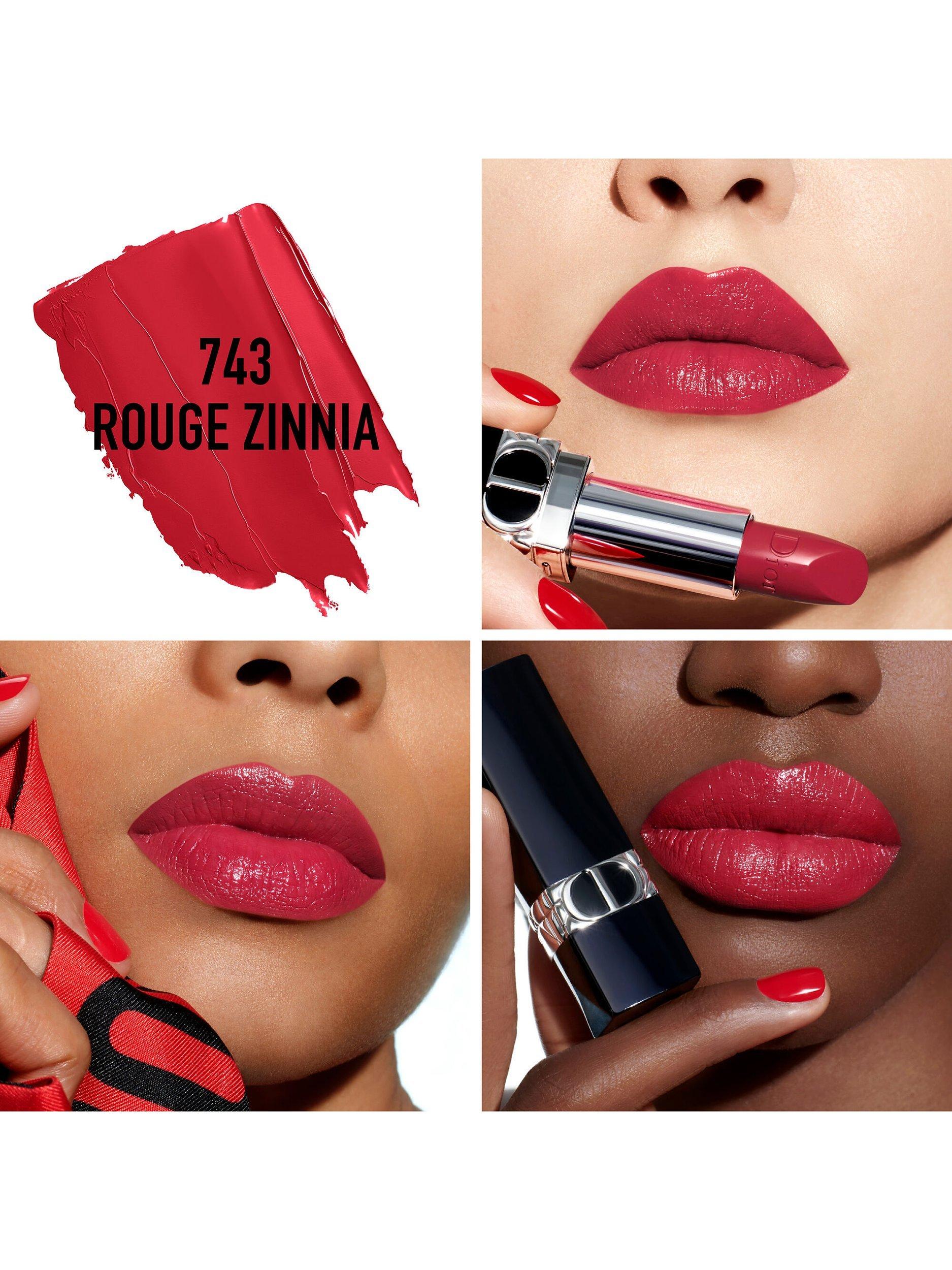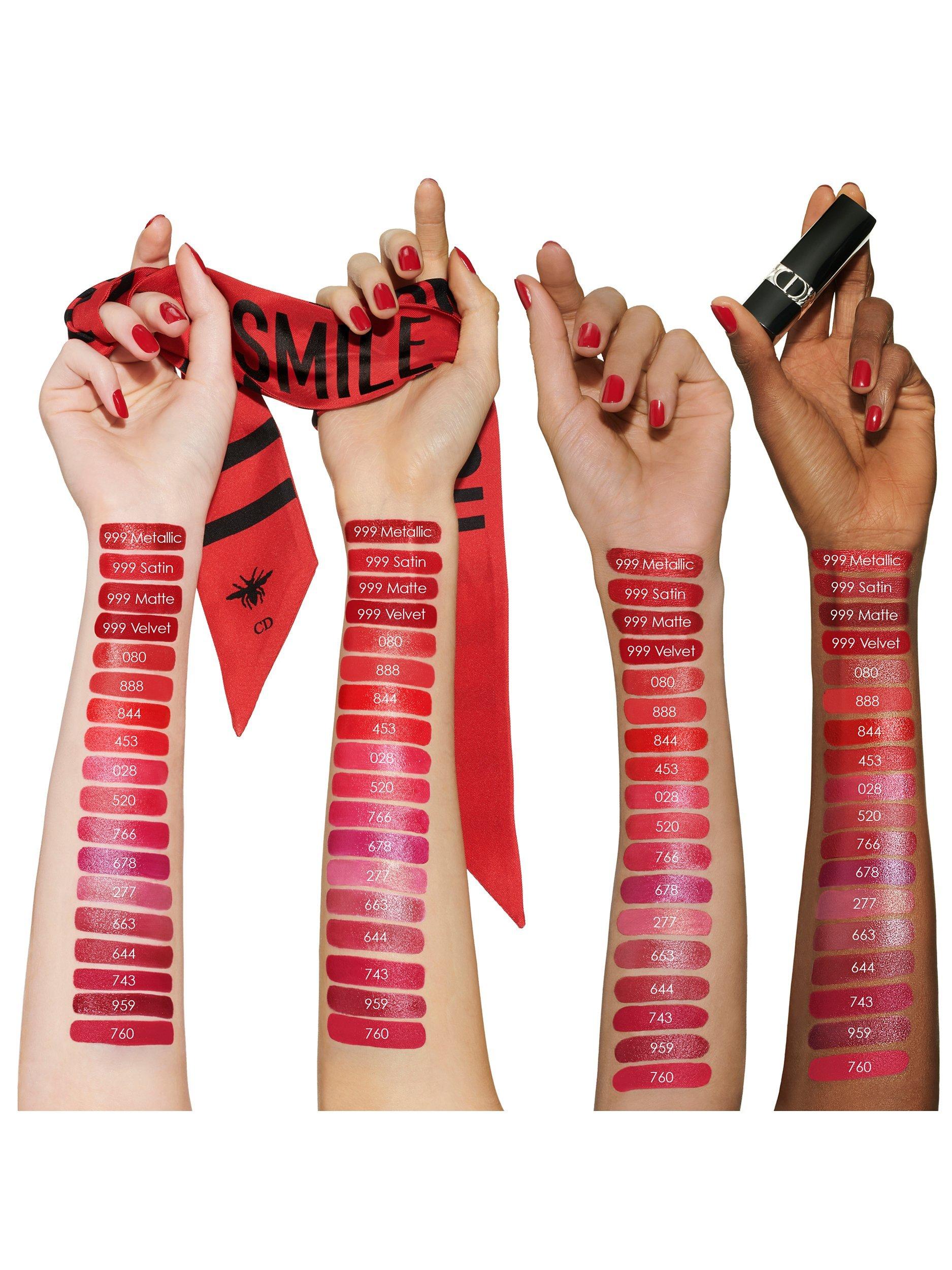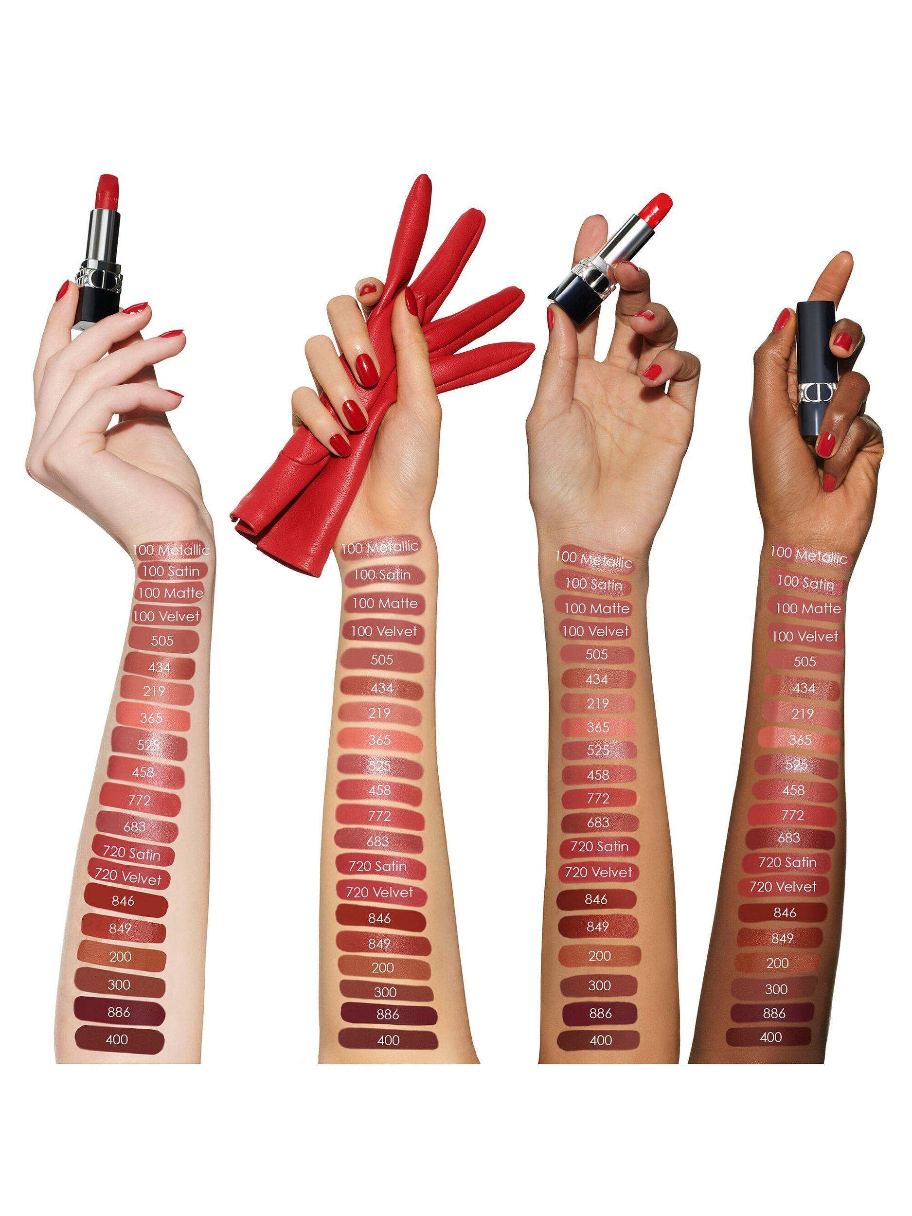 Enriched with natural-origin red peony and pomegranate flowers, it combines floral lip care with high pigment colour. Rouge DIOR dresses the lips in 35 shades, ranging from nudes to pinks to bold reds in satin, matte, metallic or velvet finishes.