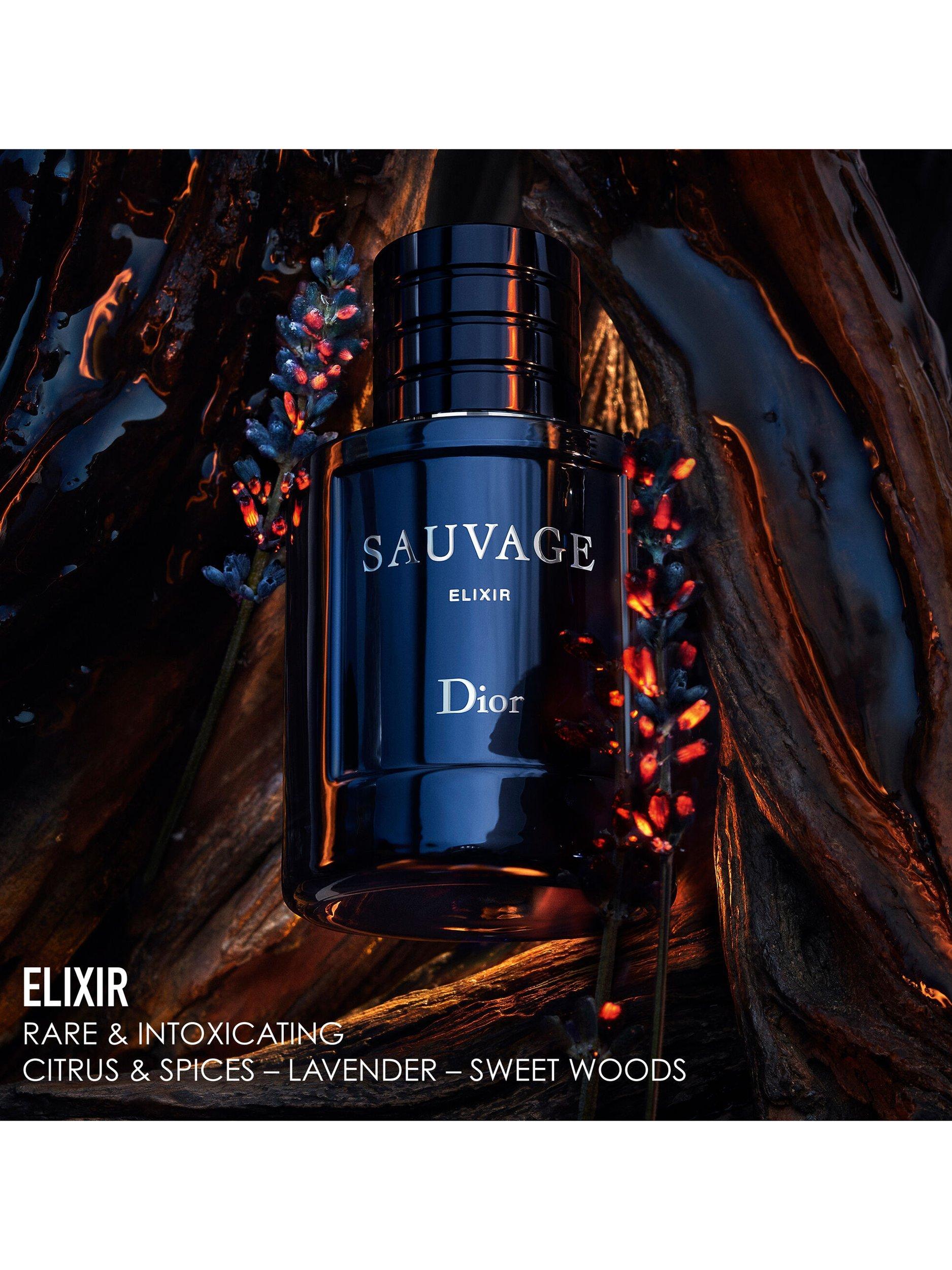 The most intense creation in the Sauvage line, the fragrance elixir concentrates the essentials of the Sauvage notes brought to a density never before seen at Dior. The emblematic freshness of Sauvage is thus enriched with lively, persistent grapefruit notes, a heart of spices, the essence of AOP lavender from Nyons and sweet, smooth woods.
