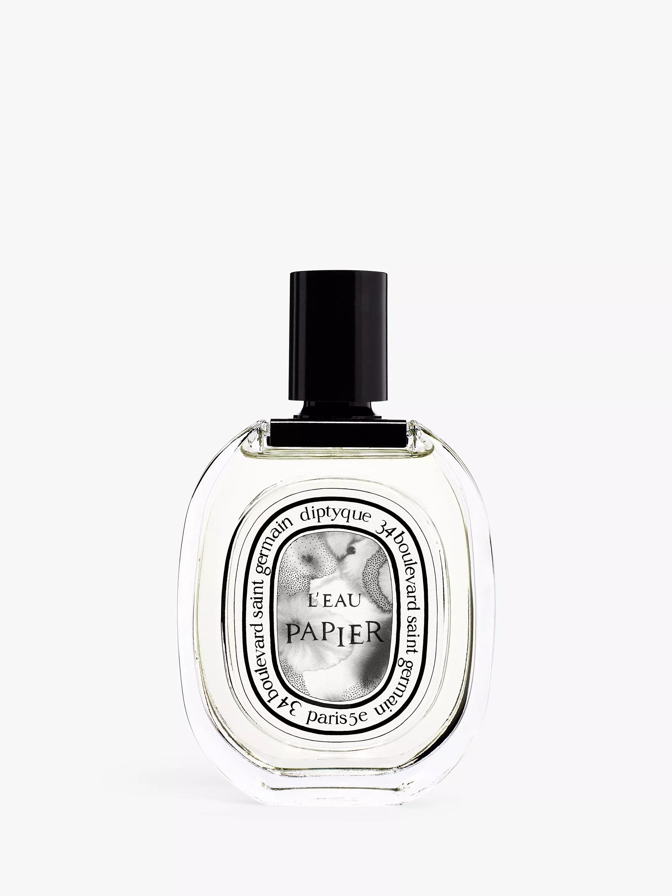In L'Eau Papier, white musks are delicately faceted by an accord of rice steam, evoking the grain of the paper. To these are added luminous notes of mimosa, while a backdrop of blonde wood tones grounds L'Eau Papier in the material itself.