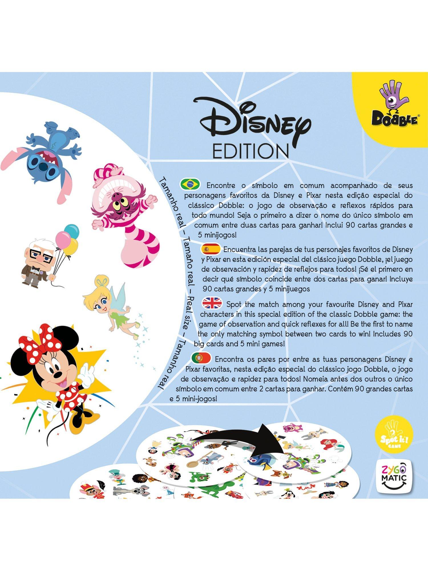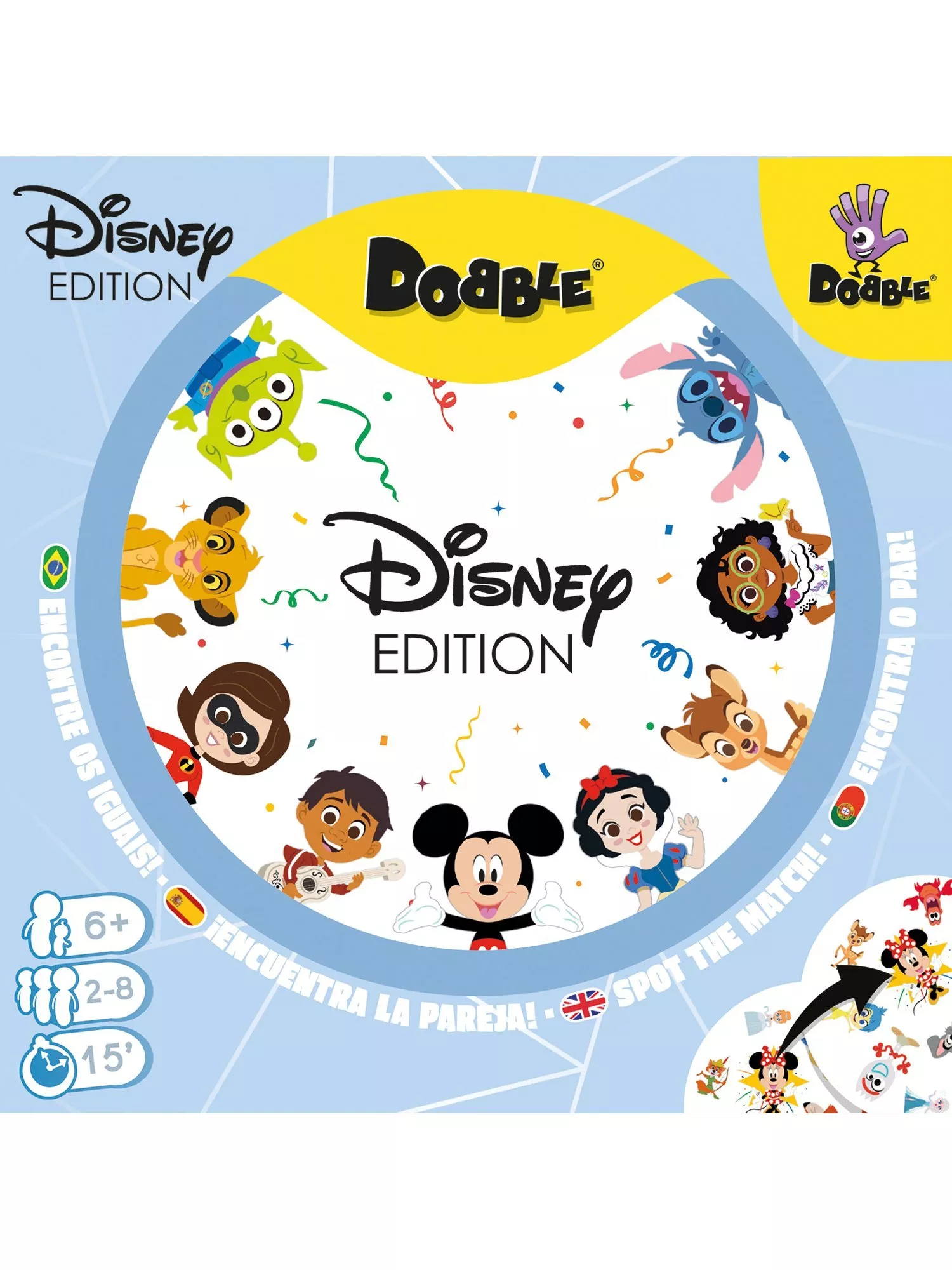 Spot the match among your favourite Disney characters in this special Disney Dobble edition! In this game of observation and reflexes for everyone, be the fastest to name the matching symbol between 2 cards to win! This game contains 90 extra large cards and 5 game variations.