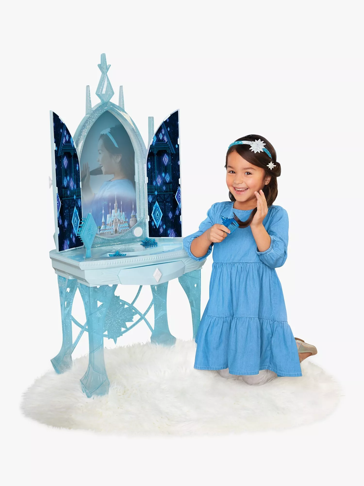 Inspired by Elsa's ice powers in Frozen II, this beautiful vanity unit is ideal for any budding young member of ice royalty.
