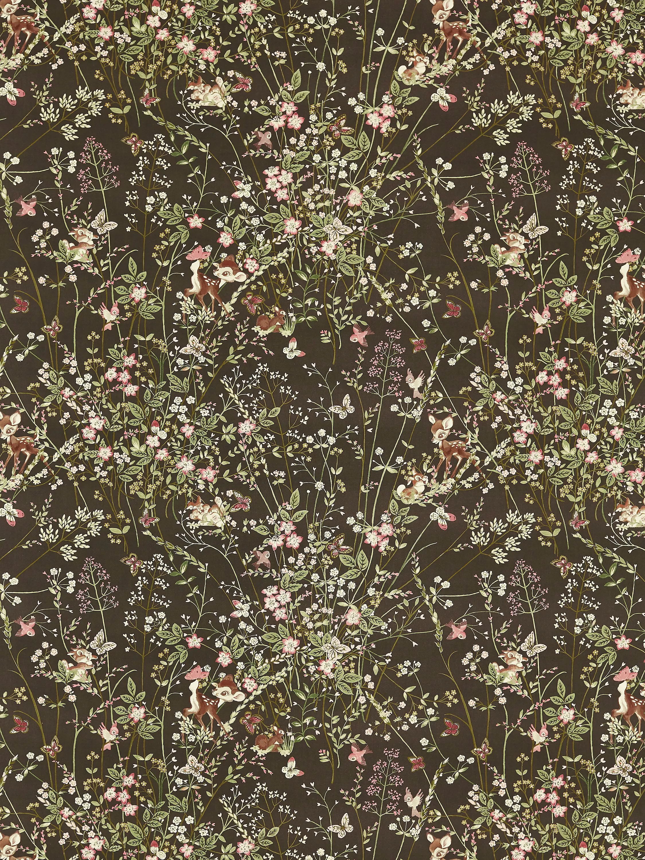 A host of woodland friends join Disney's Bambi in this charming springtime scene of archival Sanderson florals for a whimsical, quintessentially English feel.