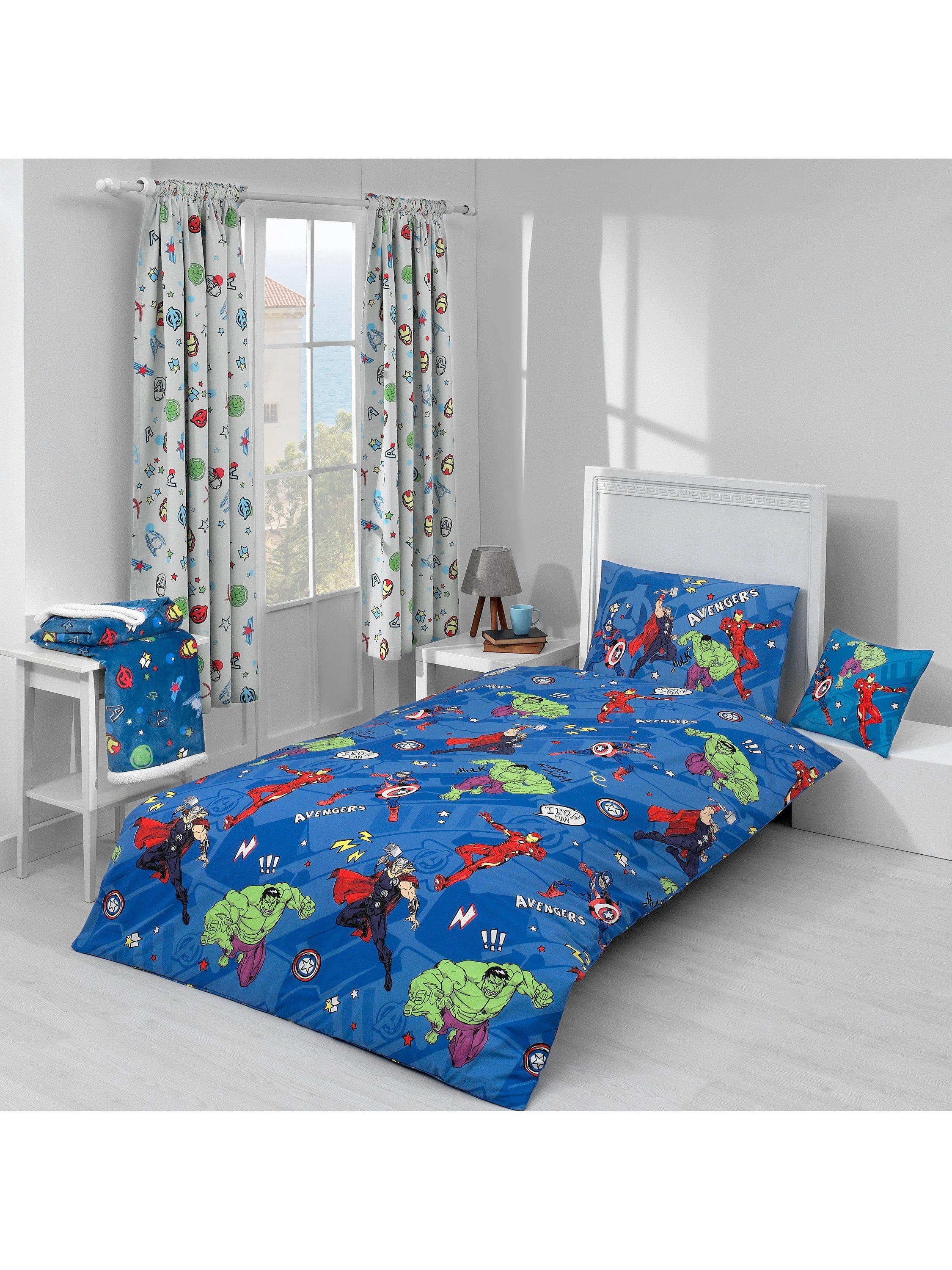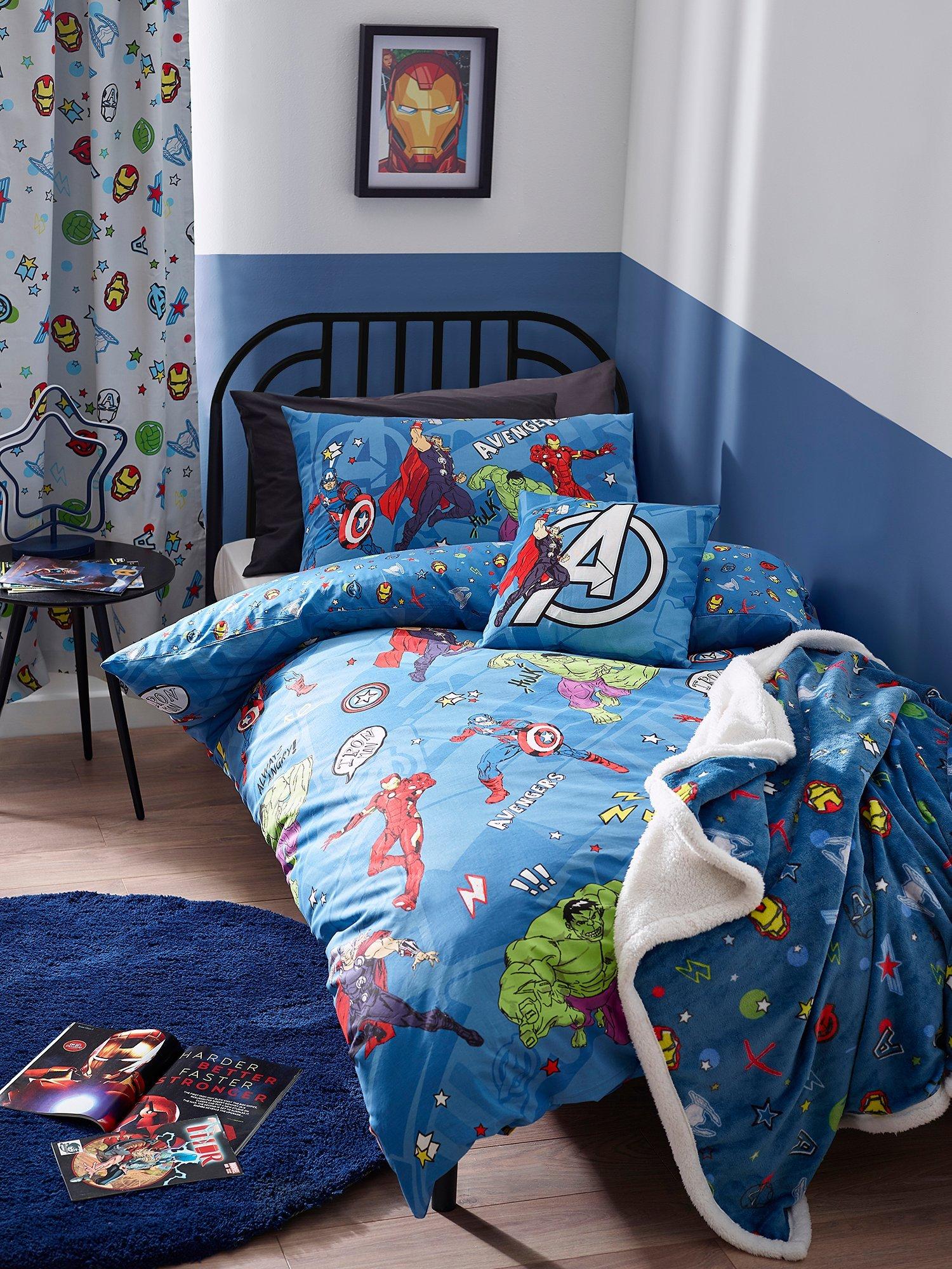 This playful Avengers design uses symbols to make up a colourful allover pattern. Bringing action-packed snuggles with the plush sherpa reverse, it is irresistibly cosy and perfect for chilly evenings.