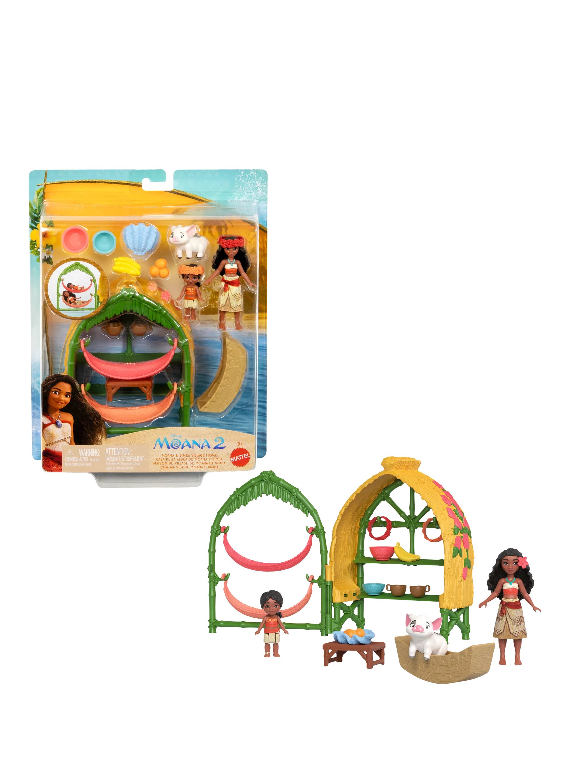 Inspired by Disney's Moana 2, the theatrical sequel to the original film, kids can help Moana and Simea small dolls spend sisterly time together with this Village Home Playset.