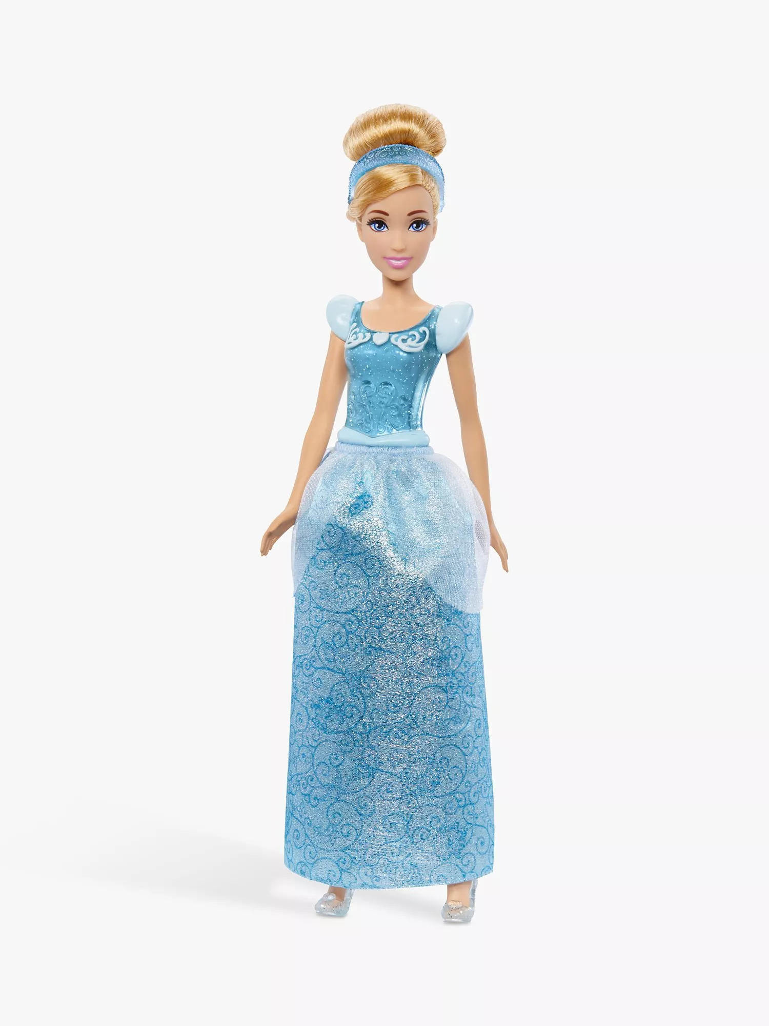 Meet the Cinderella doll, inspired by the kind and courageous princess from the classic Disney movie! This posable fashion doll is shown in a sparkling outfit and accessories that include shoes and a tiara. In her signature look from the movie, this Cinderella doll is ready for any adventure! Doll cannot stand alone. Colours and decorations may vary.