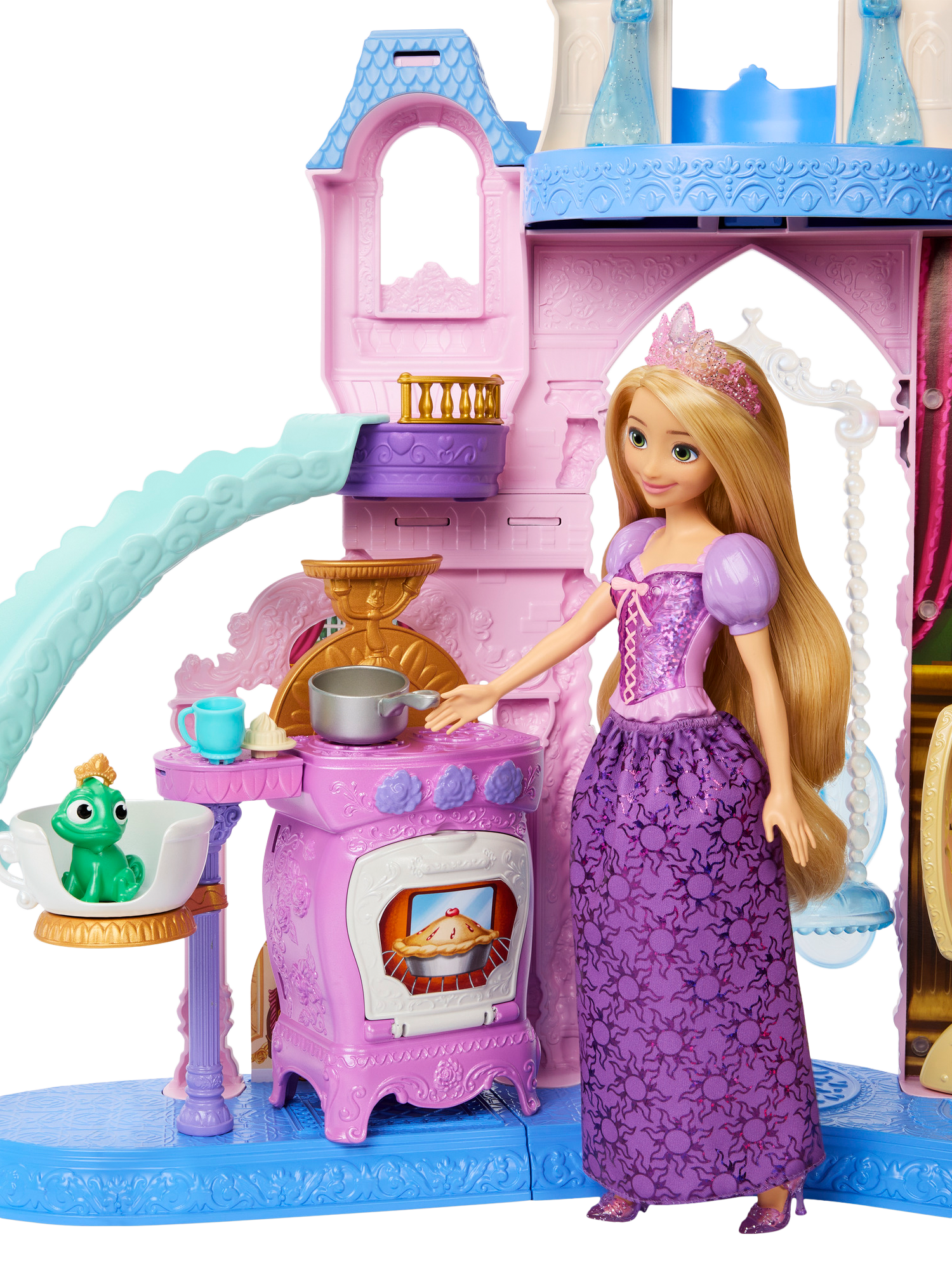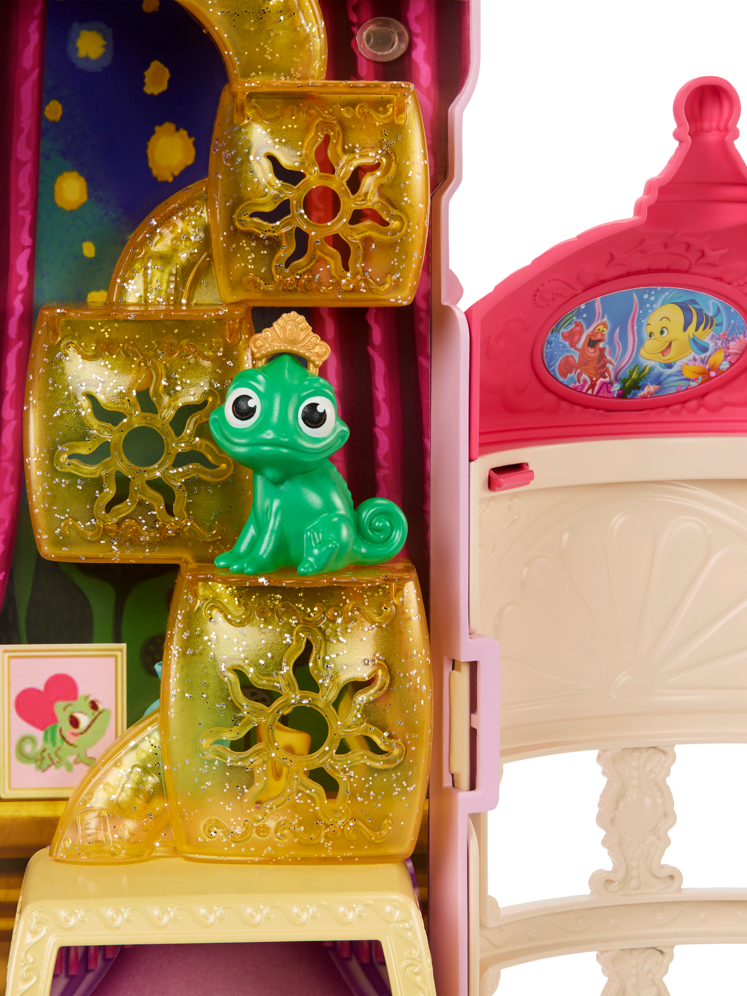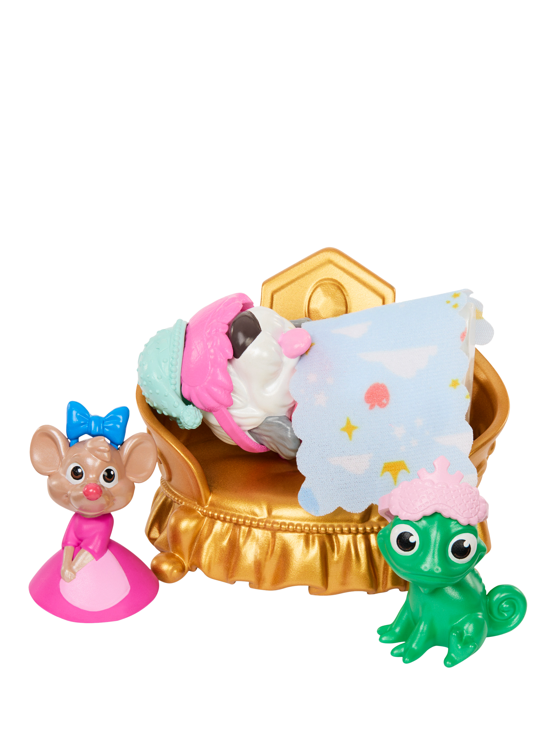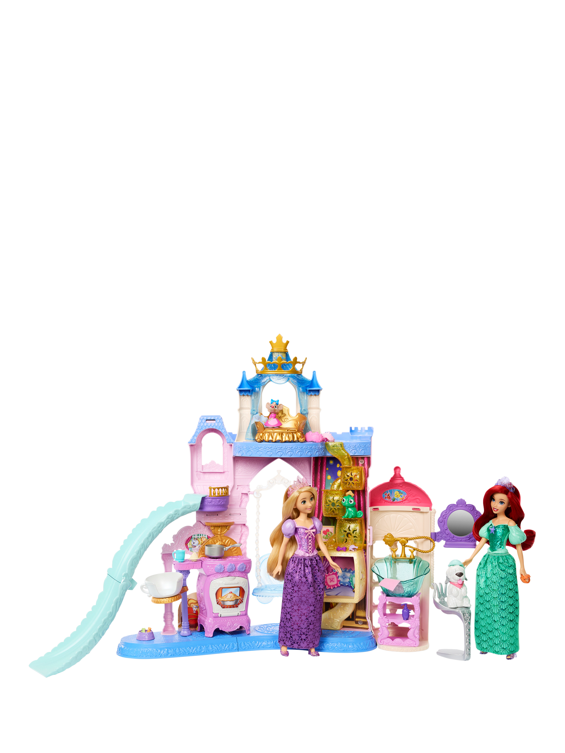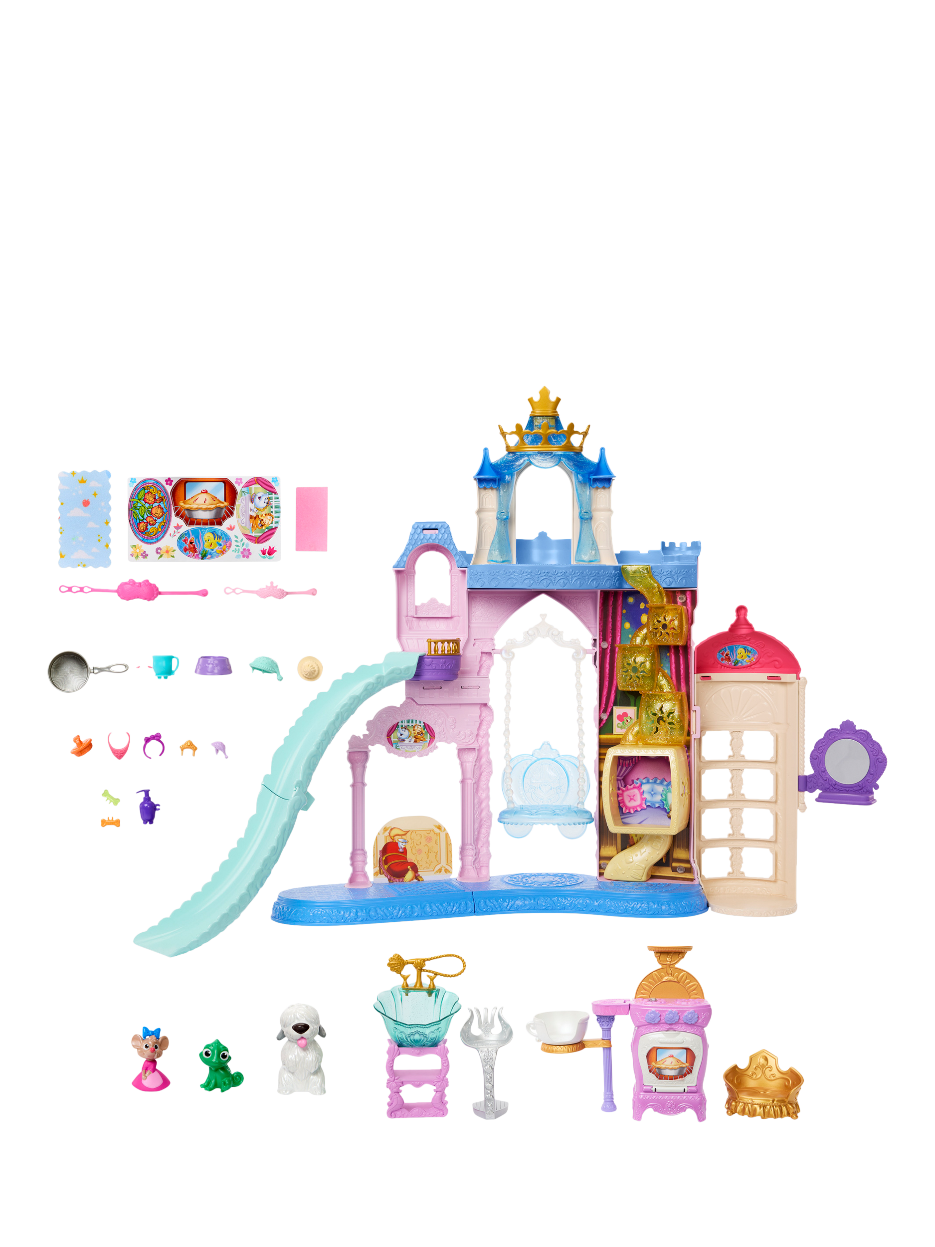 The set includes three animal figures: Perla the mouse from Disney's Cinderella, Max the dog from Disney's The Little Mermaid, and Pascal the chameleon from Disney's Tangled. With more than 20 furniture and accessory pieces, kids can imagine endless tales of Disney Princess friendship and fun.