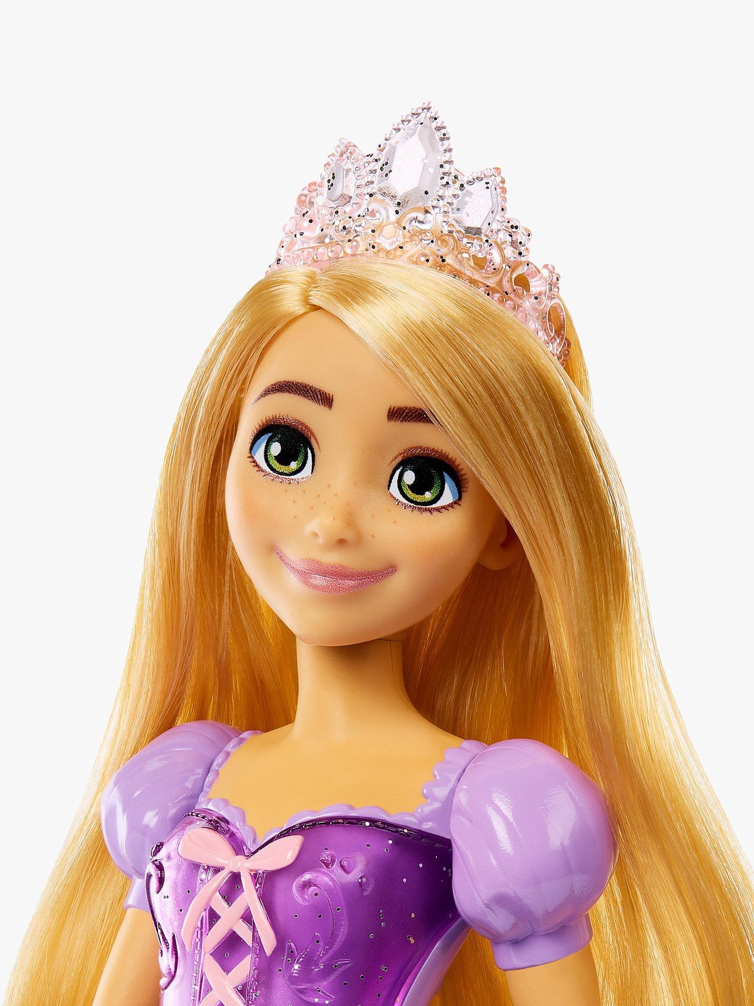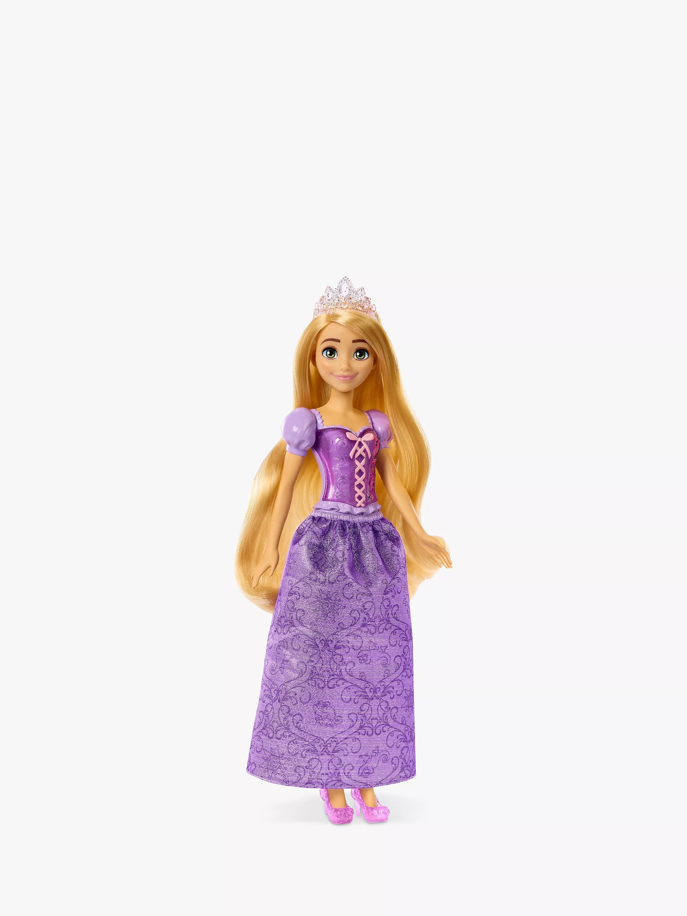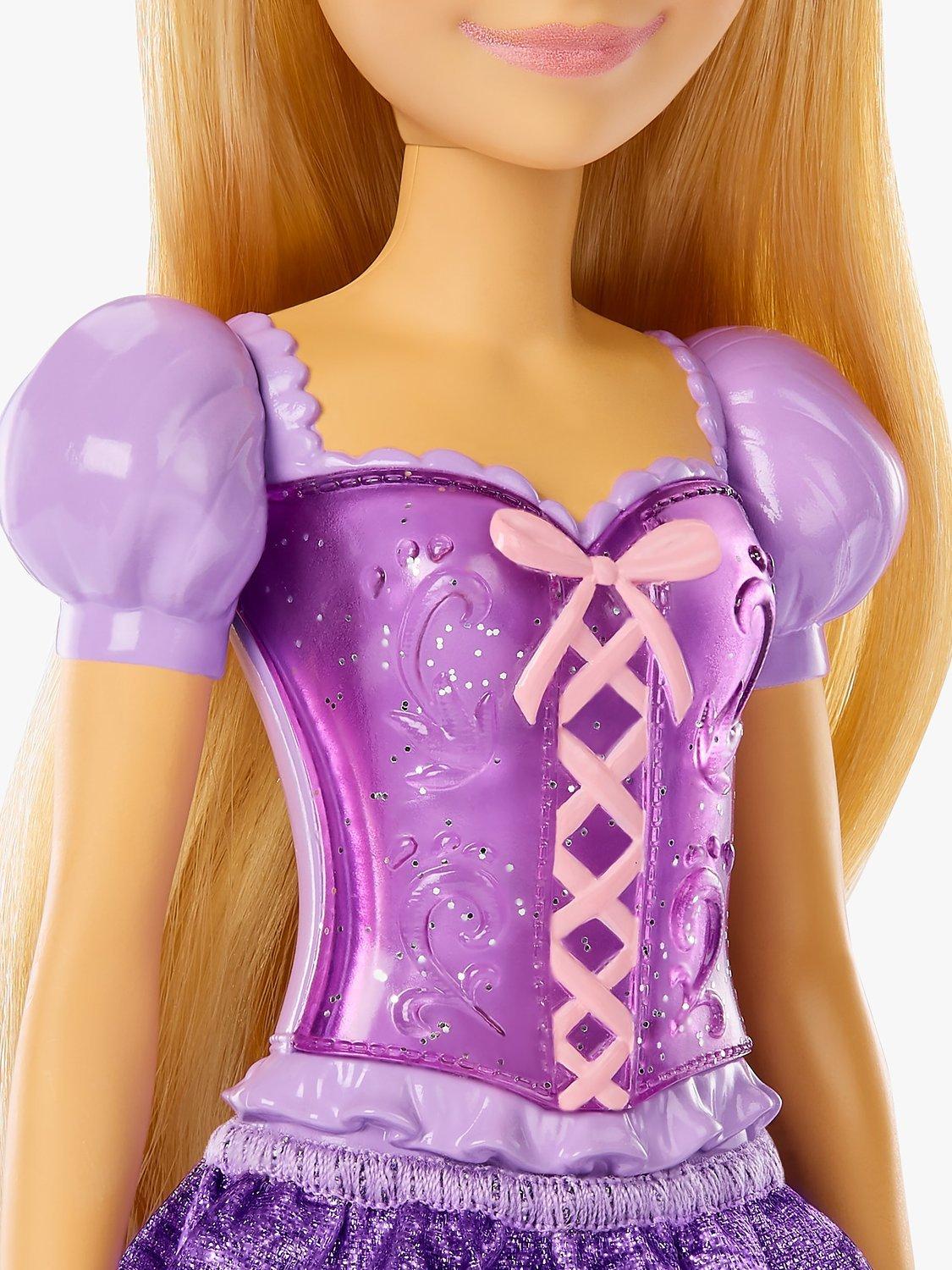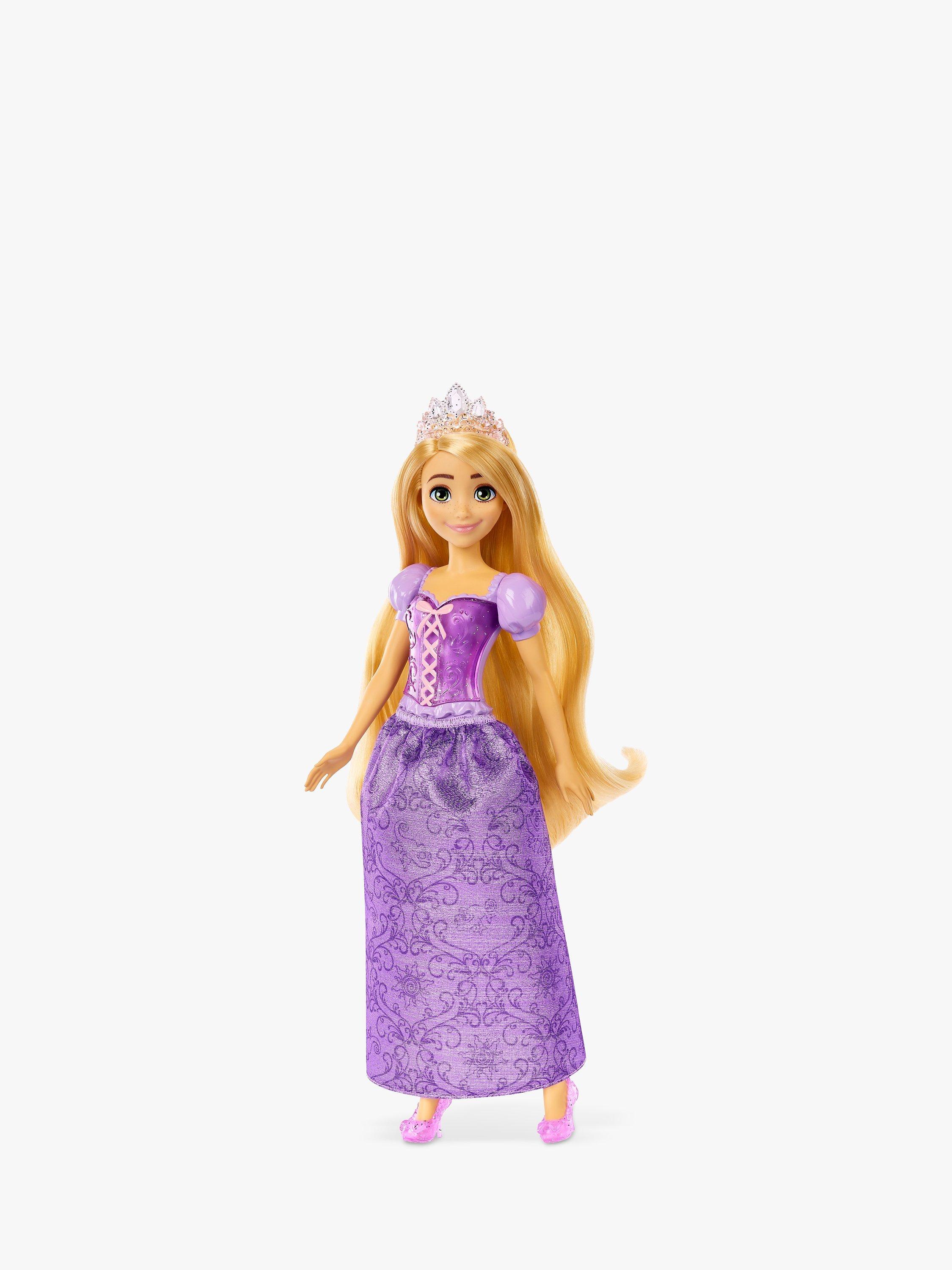 This posable fashion doll is shown in a sparkling outfit and accessories that include shoes and a tiara. In her signature look from the movie, Rapunzel is ready for any adventure!