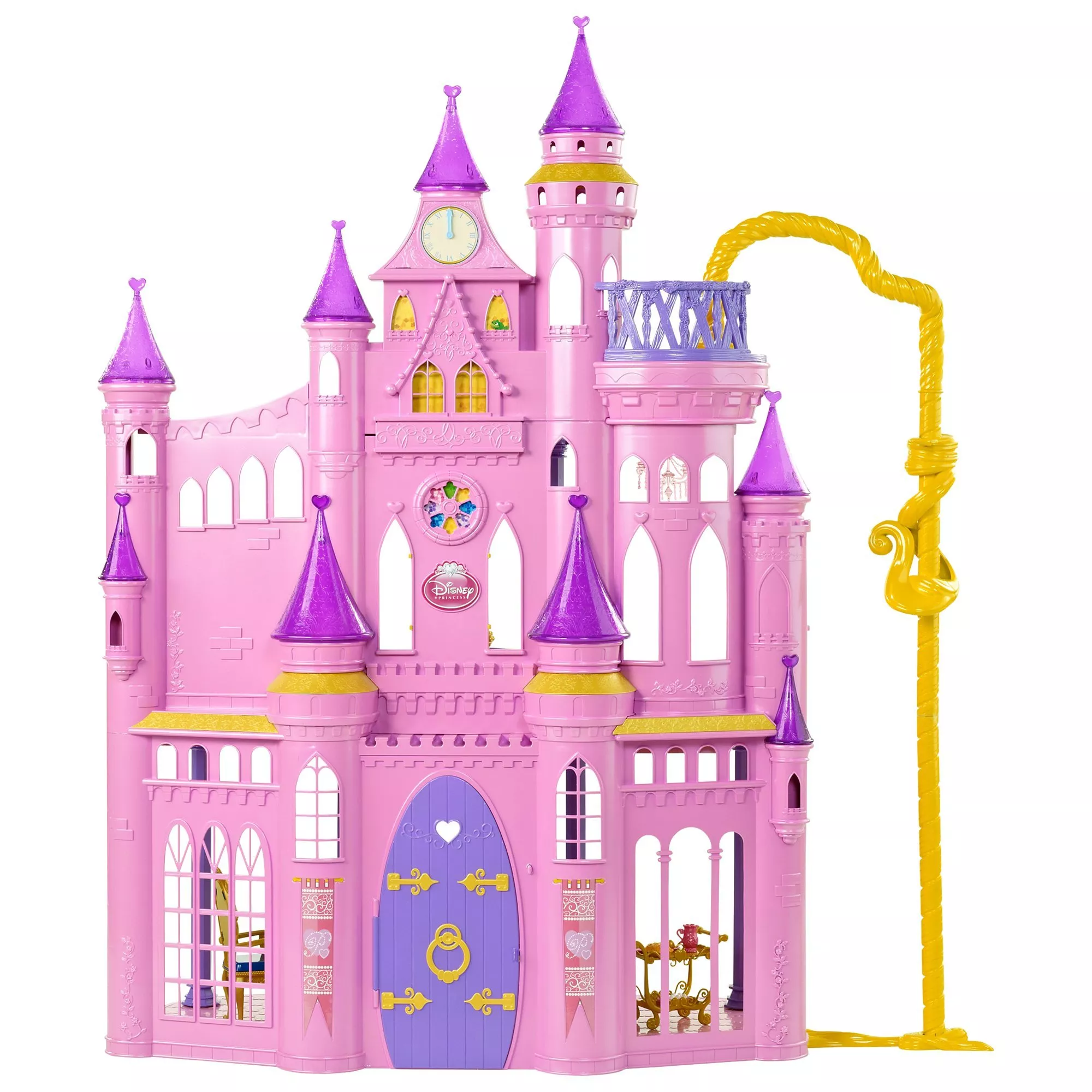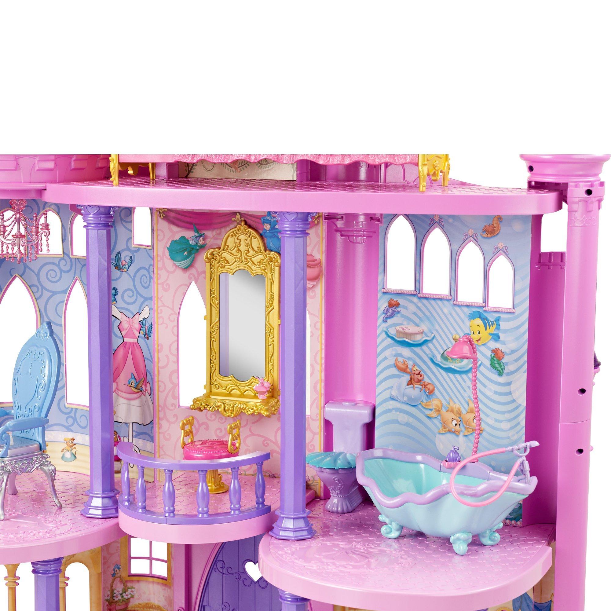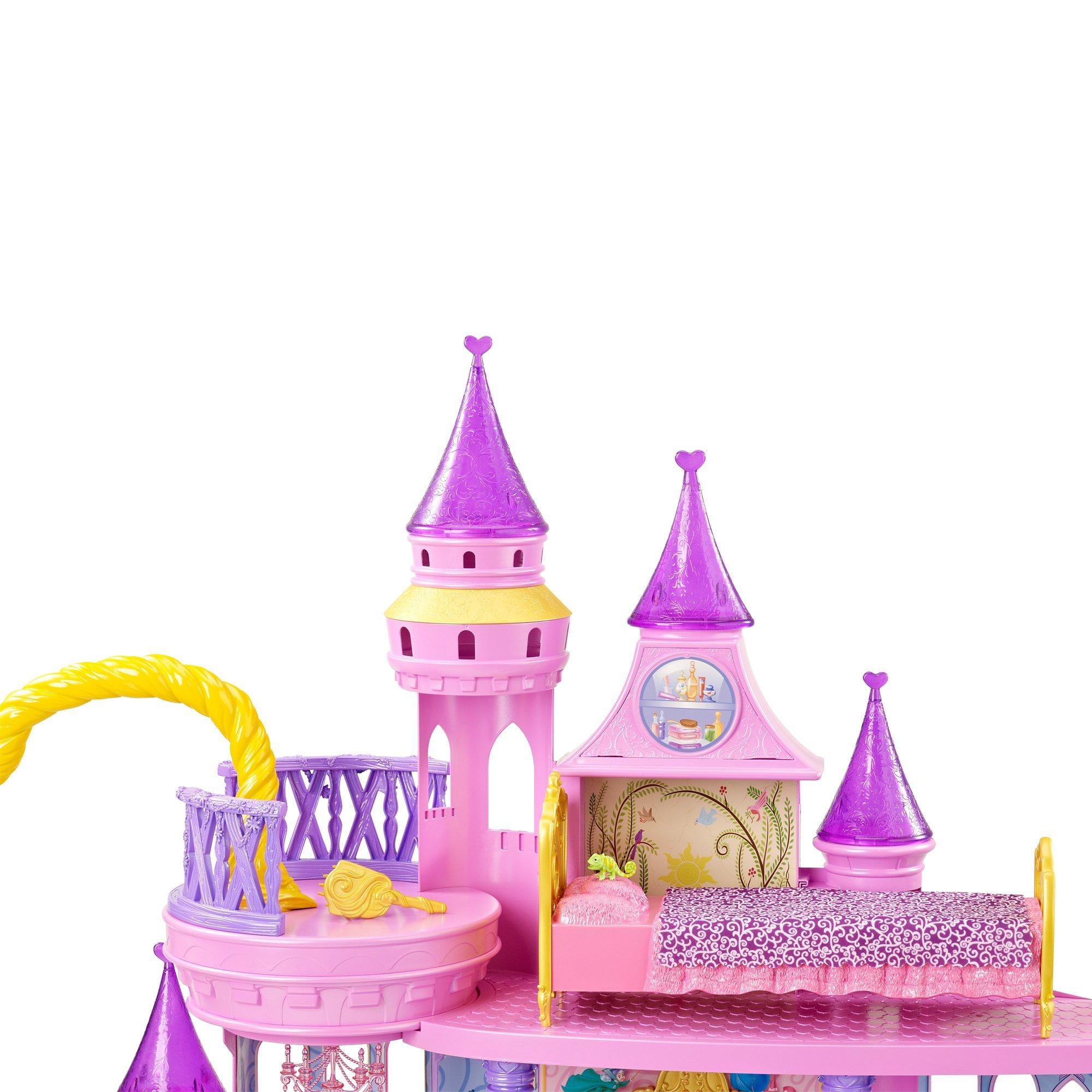 Rapunzel and her friends can go up to her room and back down using the magical spiralling hair elevator. Snow White can bake in the charming kitchen and Belle can serve her dinner guests in the fancy dining room. Meanwhile, Ariel can relax in the bath tub, Cinderella can make a beautiful dinner gown in the sewing room and Sleeping Beauty can get ready in the royal vanity room.