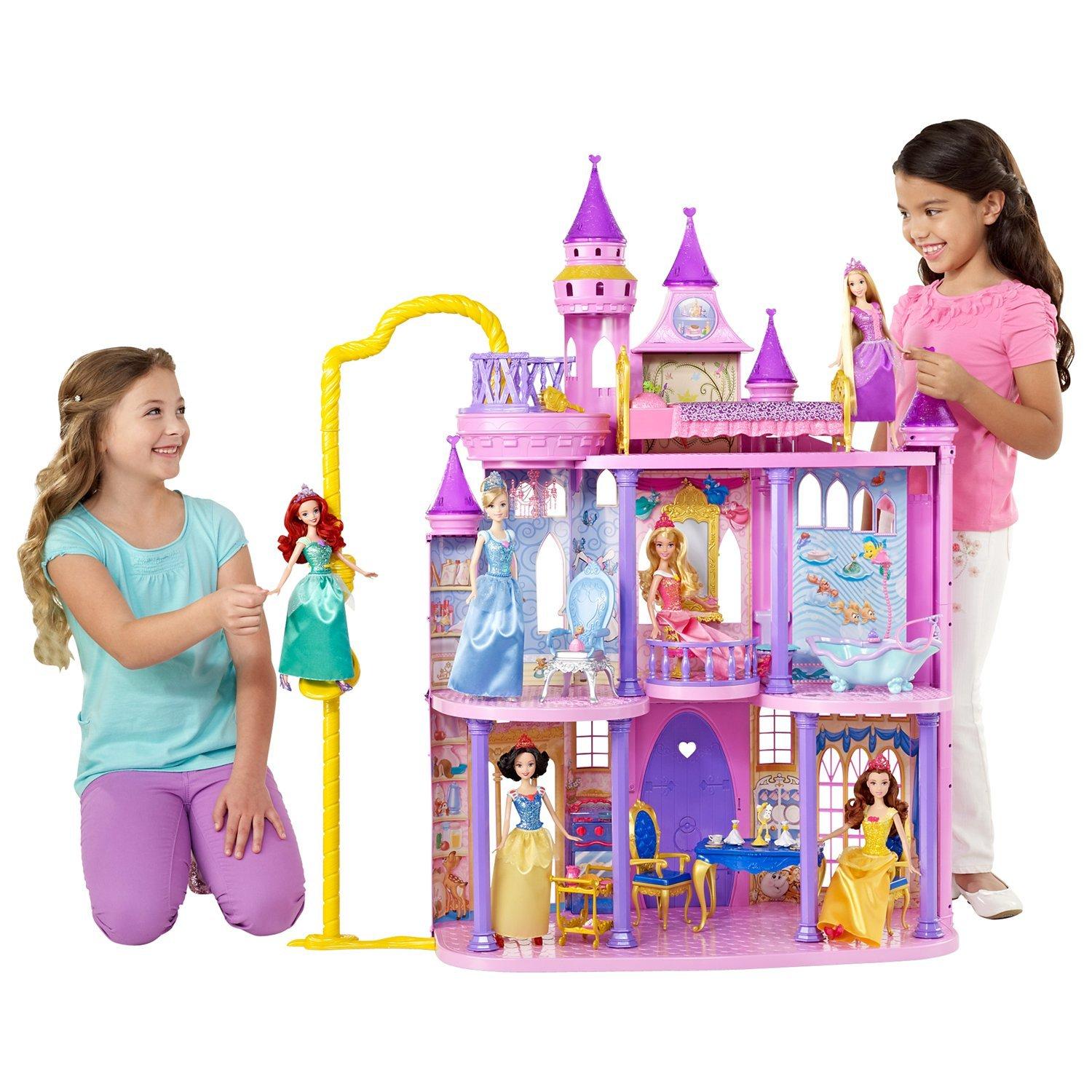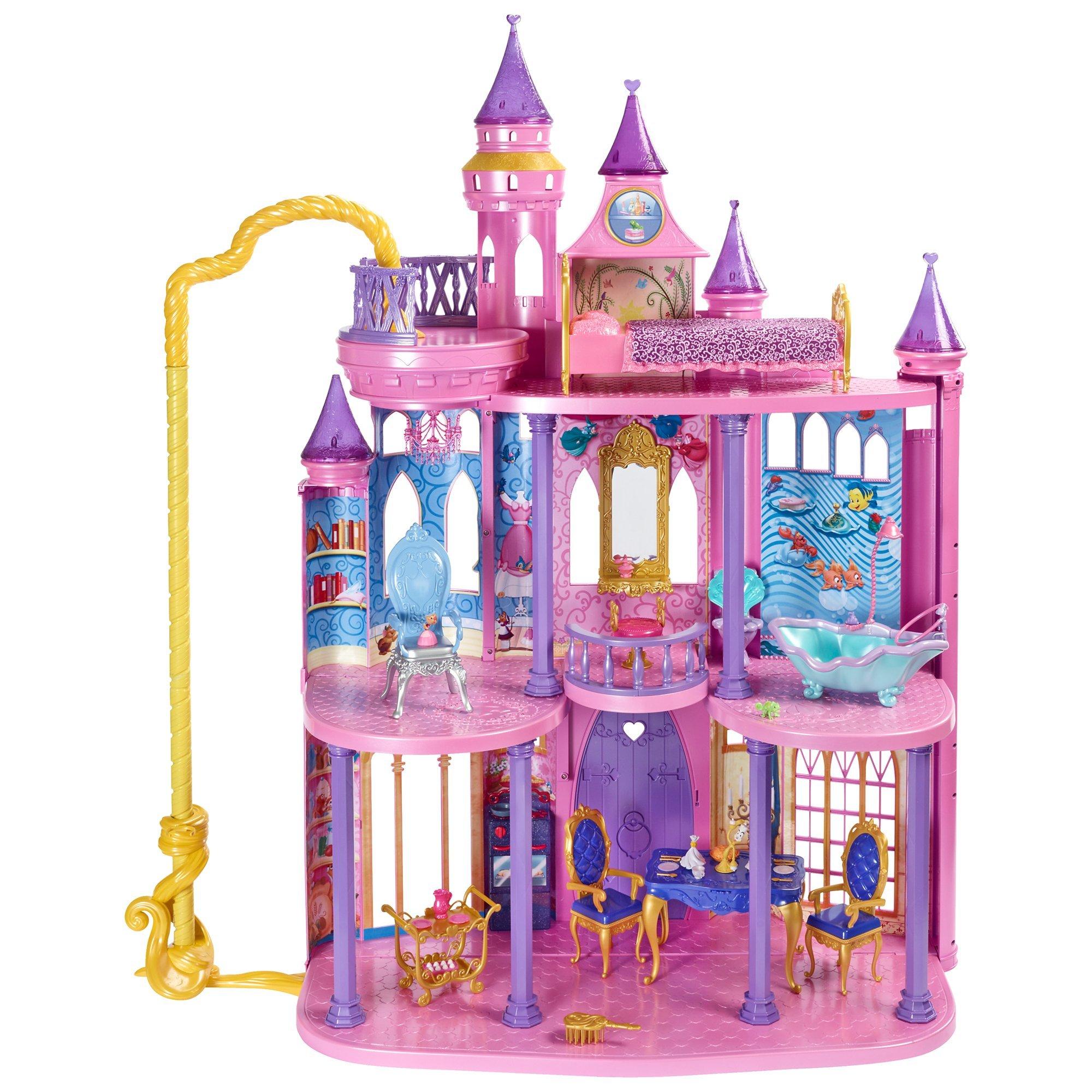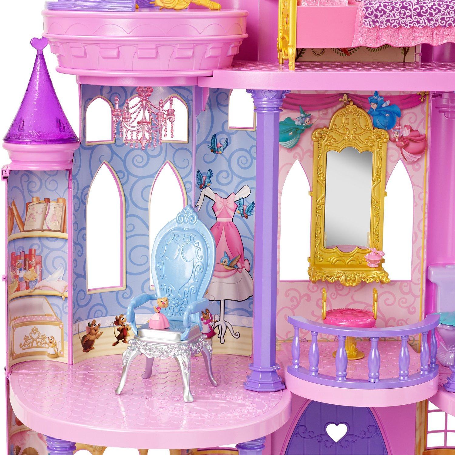 Rapunzel and her friends can go up to her room and back down using the magical spiralling hair elevator. Snow White can bake in the charming kitchen and Belle can serve her dinner guests in the fancy dining room. Meanwhile, Ariel can relax in the bath tub, Cinderella can make a beautiful dinner gown in the sewing room and Sleeping Beauty can get ready in the royal vanity room.