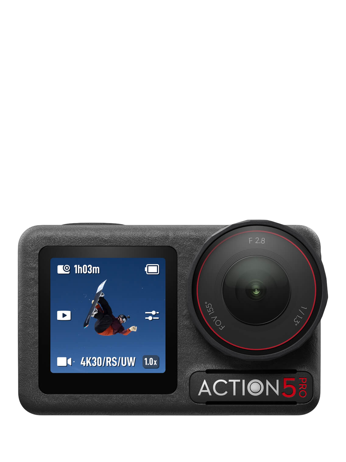 The DJI Osmo Action 5 Pro camera offers stunning image quality with a 1/1.3" CMOS sensor, 40MP resolution, and 13.5 stops of dynamic range. It captures 4K/120fps video with an ultra-wide 155 degree FOV, and dual OLED touchscreens for ease of use. With 4 hours of battery life and advanced 360 degree HorizonSteady stabilisation, the Action 5 Pro delivers smooth footage and precise subject tracking for any adventure.