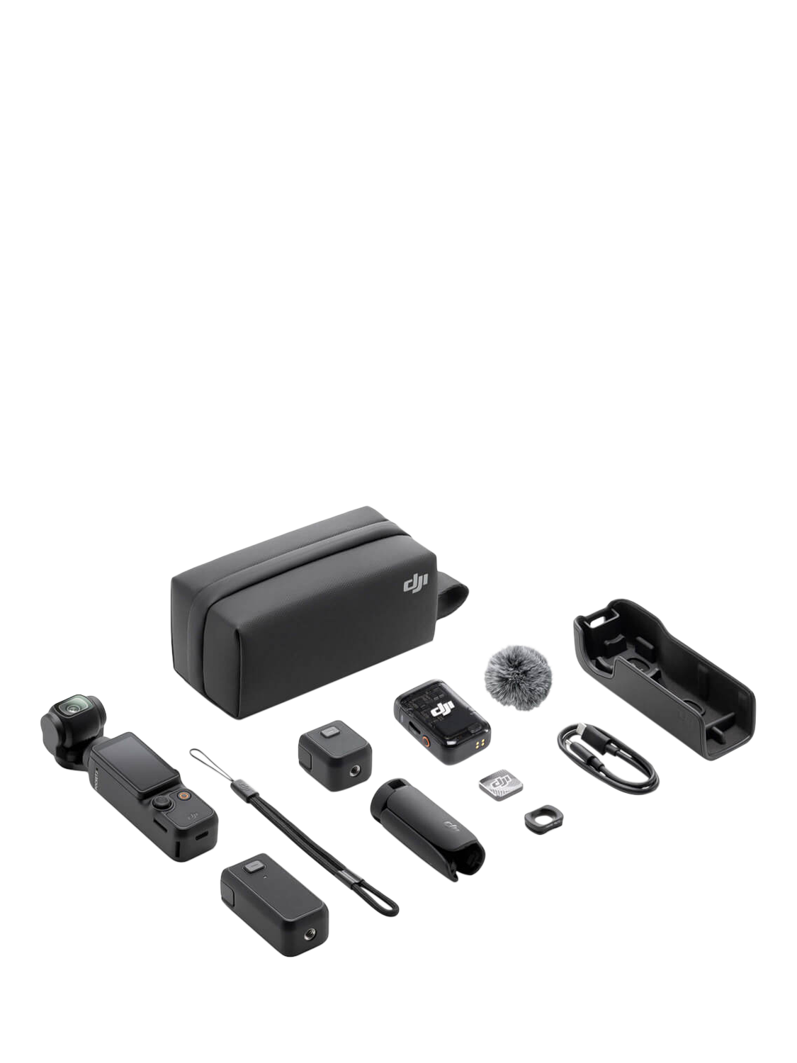 - DJI Osmo Pocket 3 Camera1 × Battery Handle1 × Wide-Angle Lens1 × Wireless Microphone Transmitter1 × TripodUSB-C CableWrist StrapCarrying CaseUser Manual