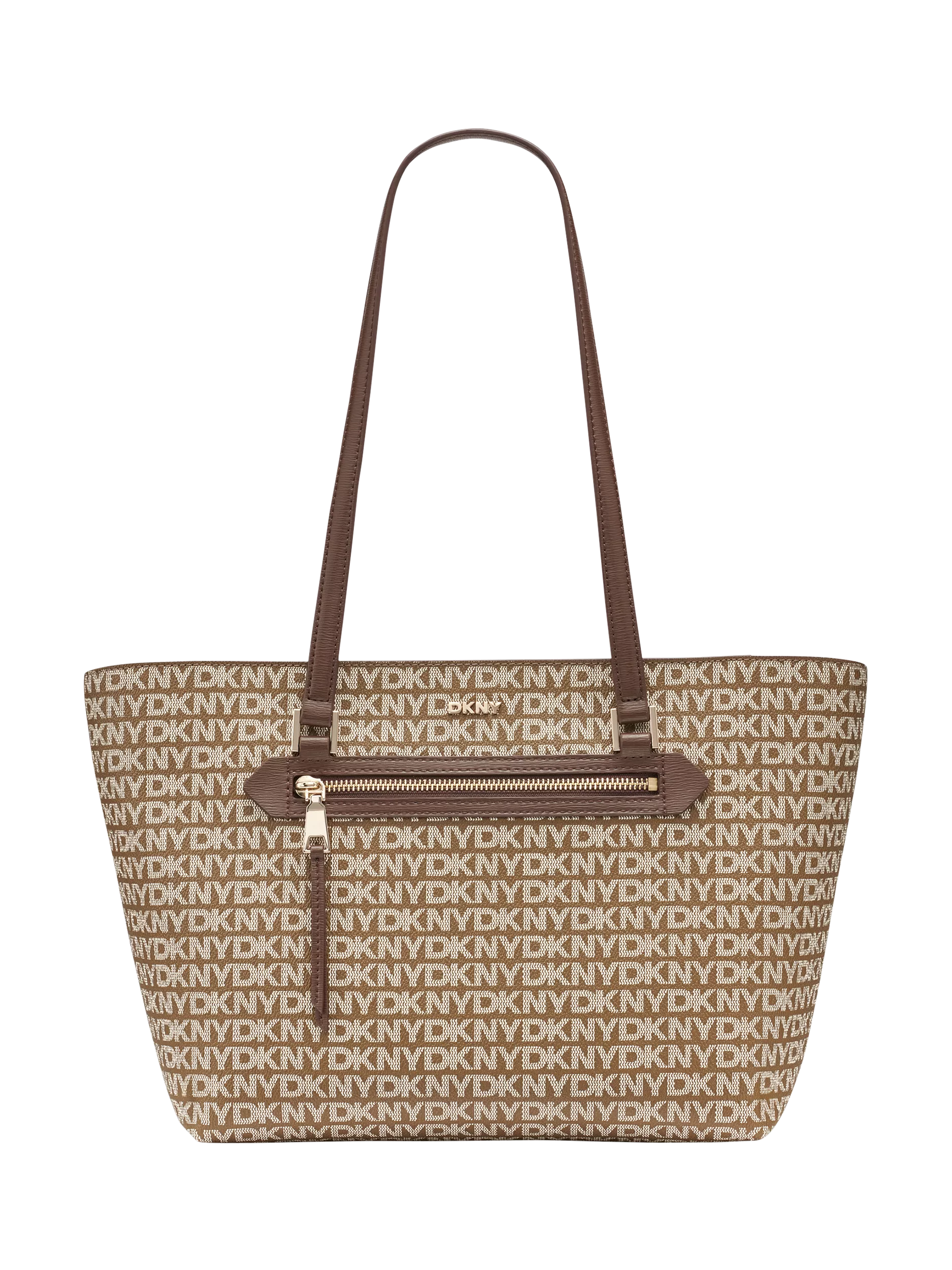 Carry what matters in a DKNY tote that keeps essentials organised and close at hand. With a bold logo pattern, the open top lets you access what you need quickly throughout your day.