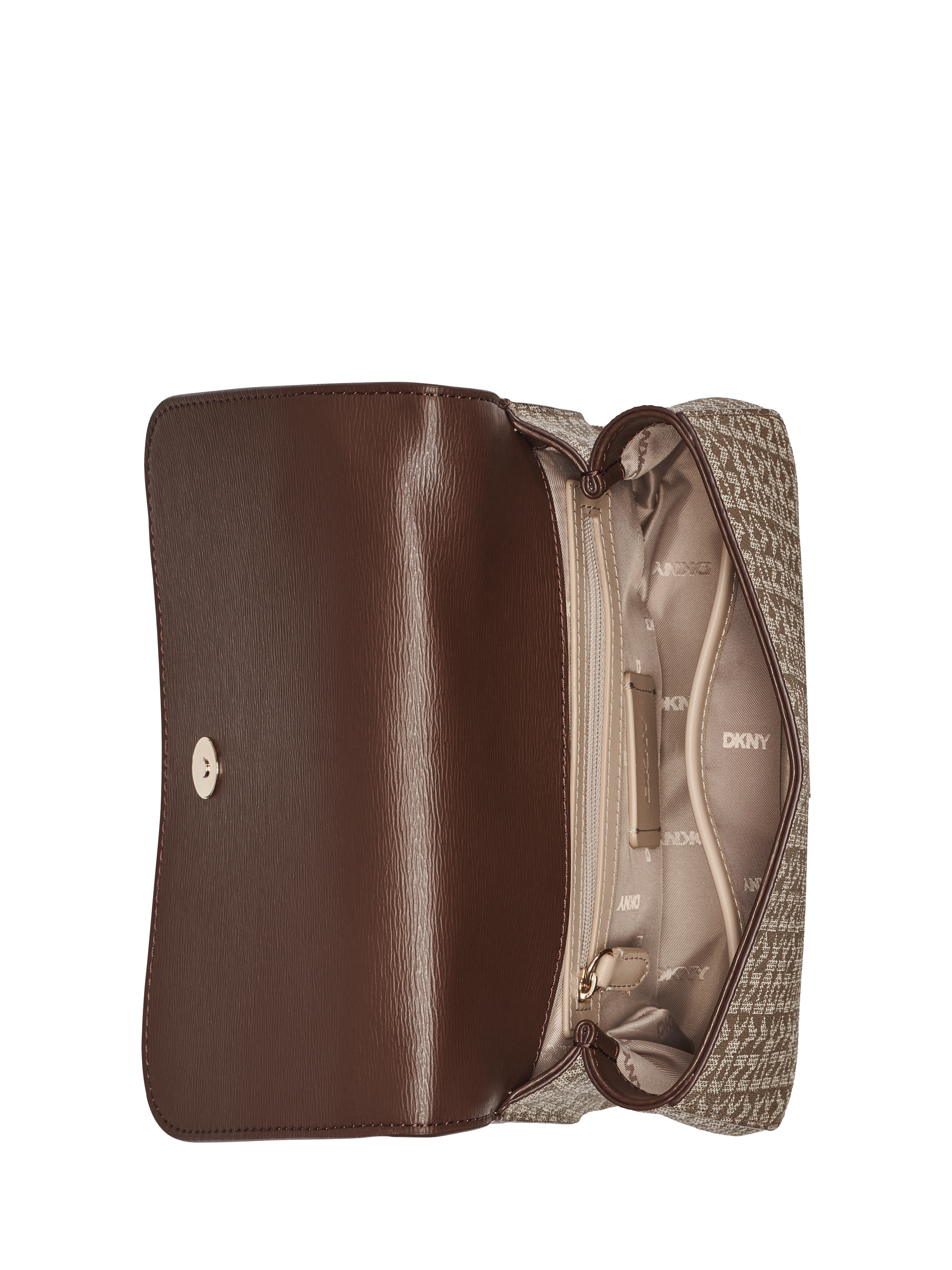 Cleverly designed for your daily pace, this DKNY leather shoulder bag keeps essentials close with its monogram logo pattern and magnetic closure. Effortless to carry, the adjustable strap lets you choose how you wear it for any occasion.