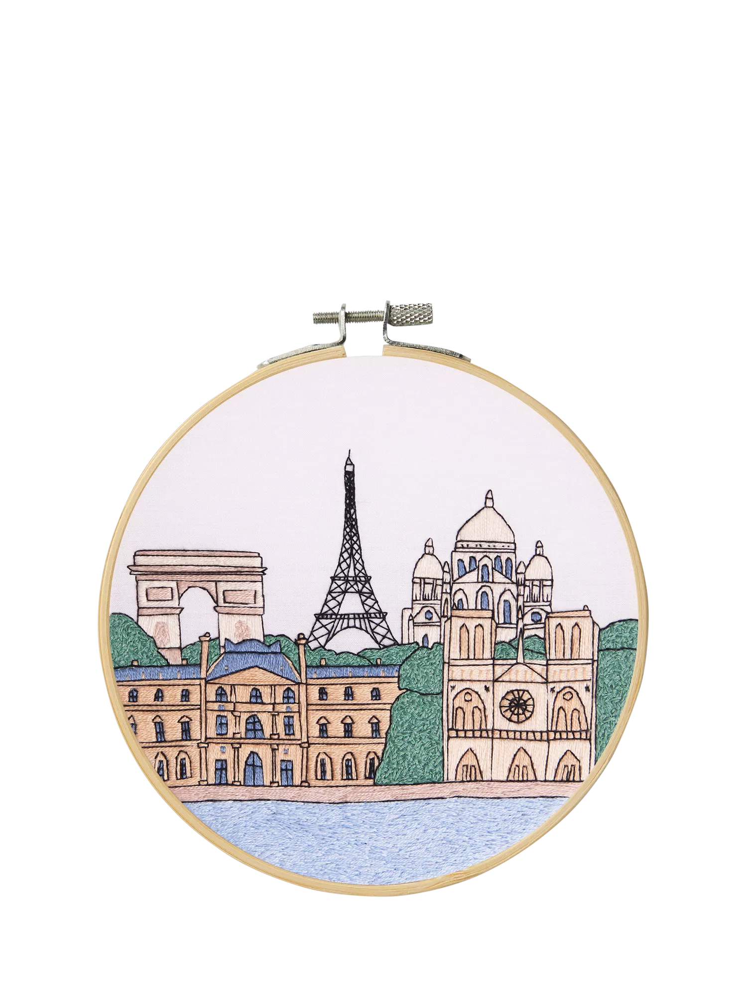 Use eight skeins of DMC's iconic Mouliné Spécial stranded embroidery thread to stitch this Paris design from Kseniia Guseva. The kit includes everything you need to get stitching.