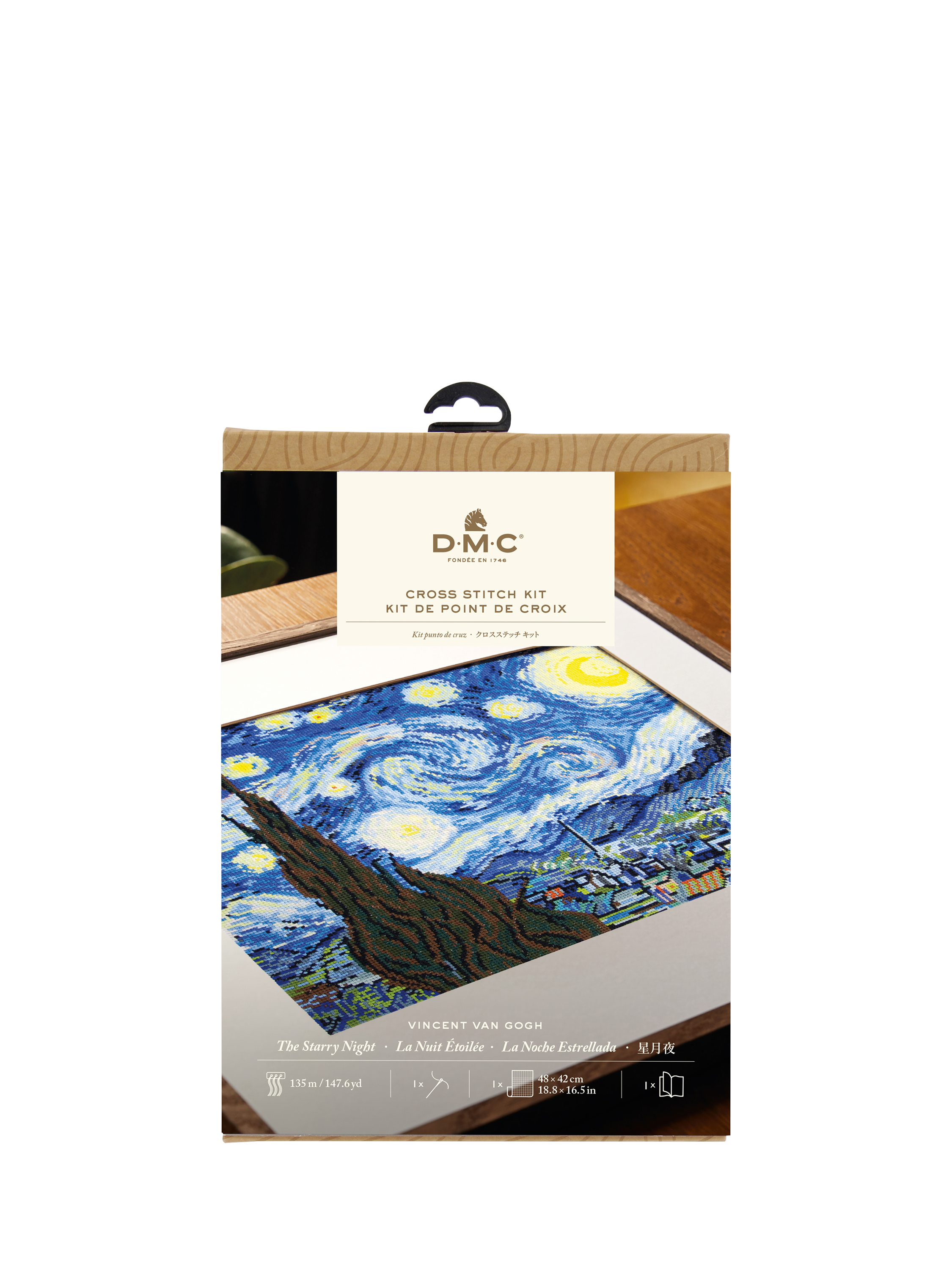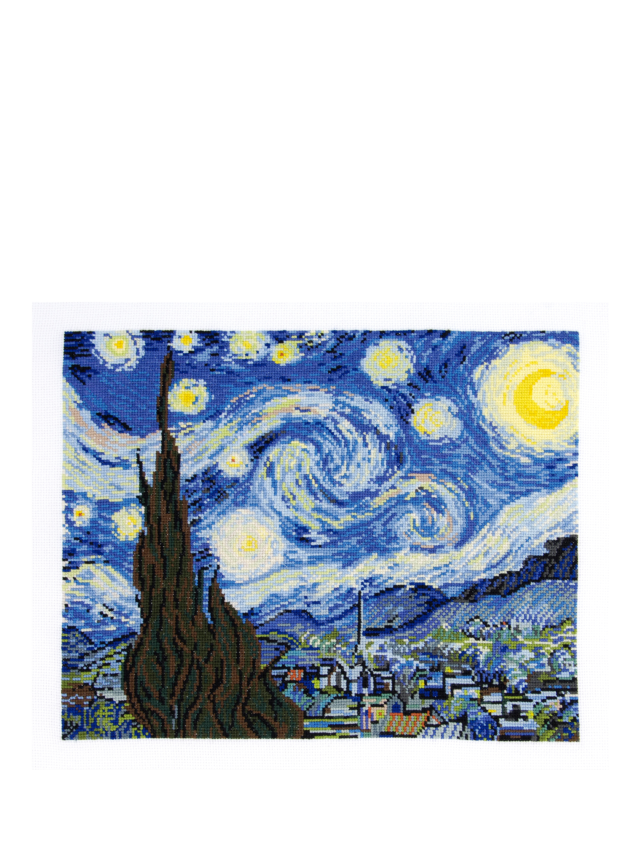 Discover Vincent Van Gogh's iconic "Starry Night", recreated as a beautiful cross stitched work of art to frame and hang in your home with this kit from DMC.