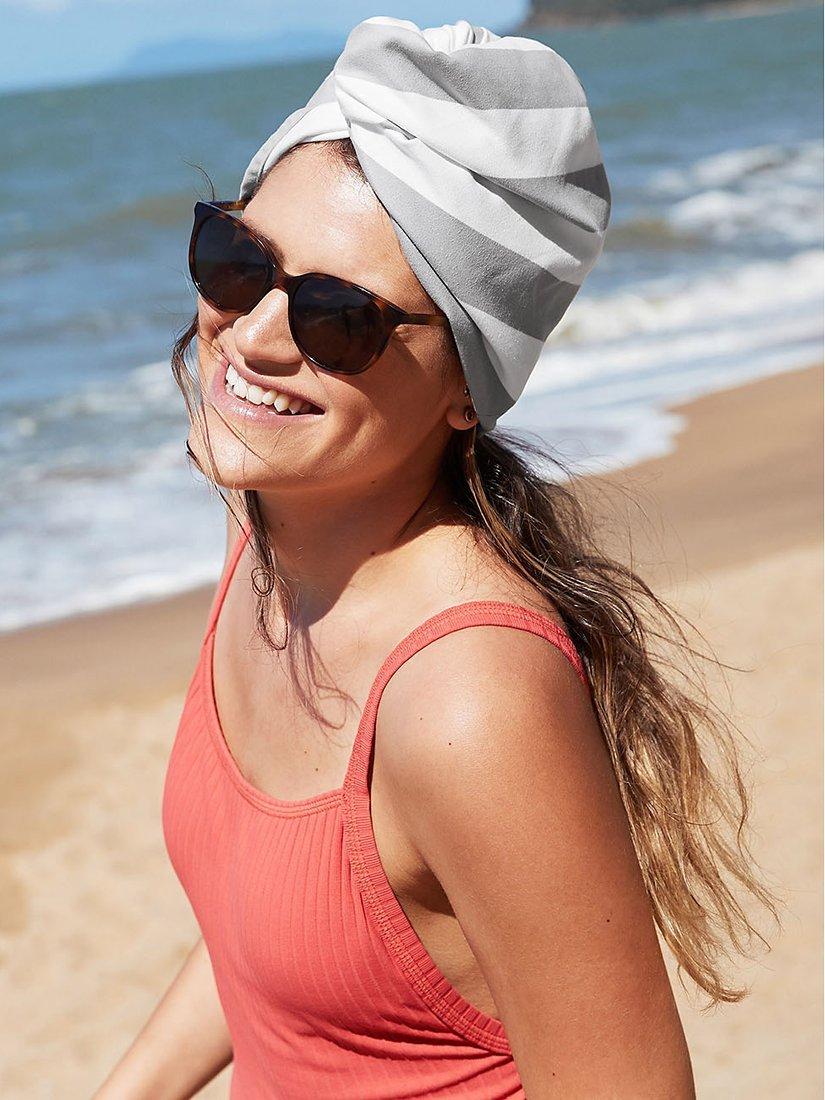 Super absorbent and lightweight microfibres in this cute Dock & Bay hair turban help dry your hair quickly and frizz-free. Not just for post-shower, the turban can be worn to keep hair dry whilst enjoying a relaxing bath, to keep hair out of your face when it's time for a face mask, or as a fashion piece at the beach or poolside.